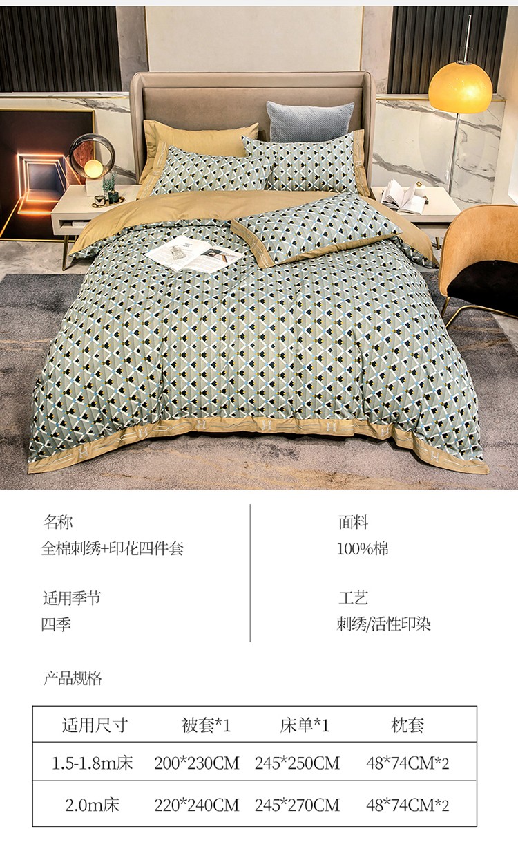 商品名称:帅露家纺家纺 2021新款全棉轻奢复古印加绣四件套 爱丁堡