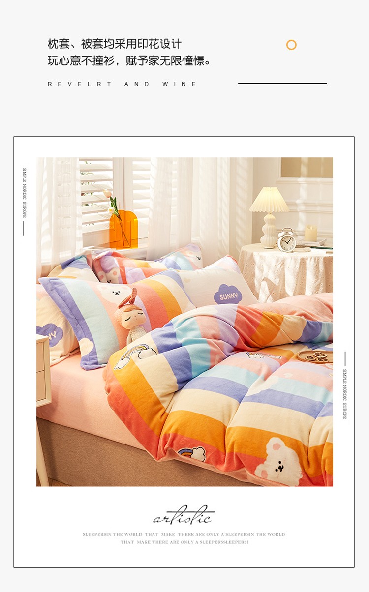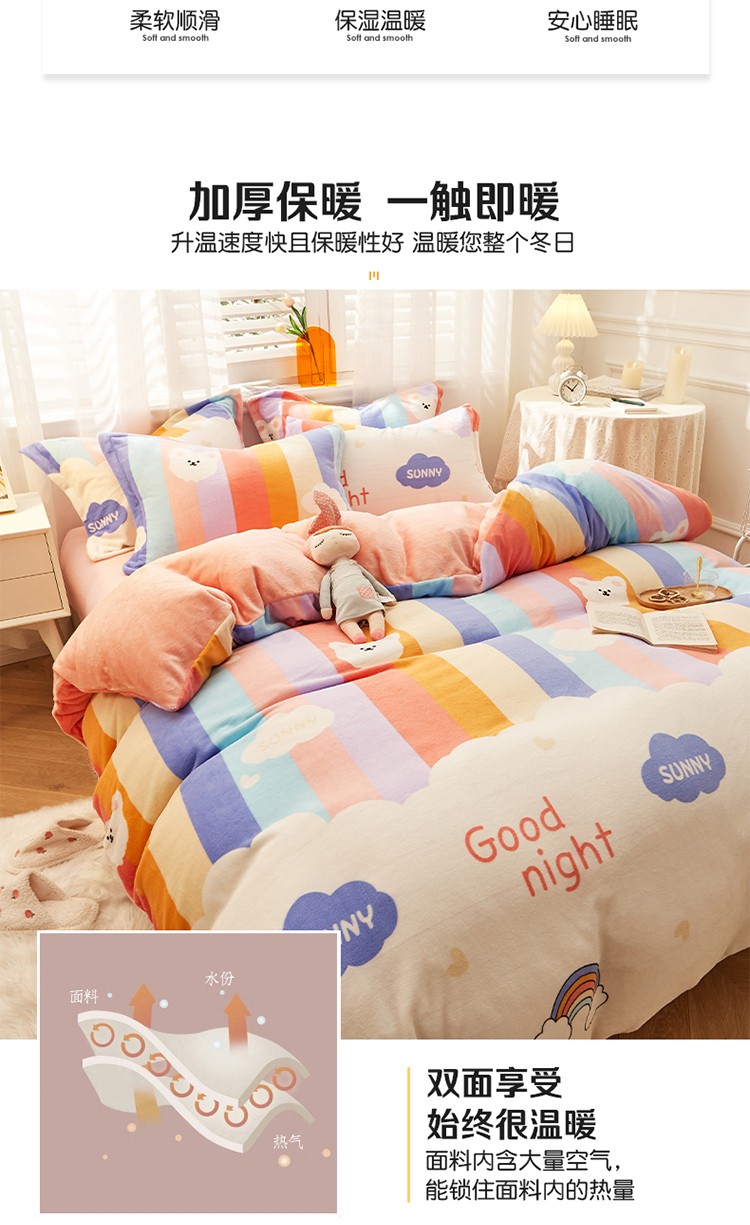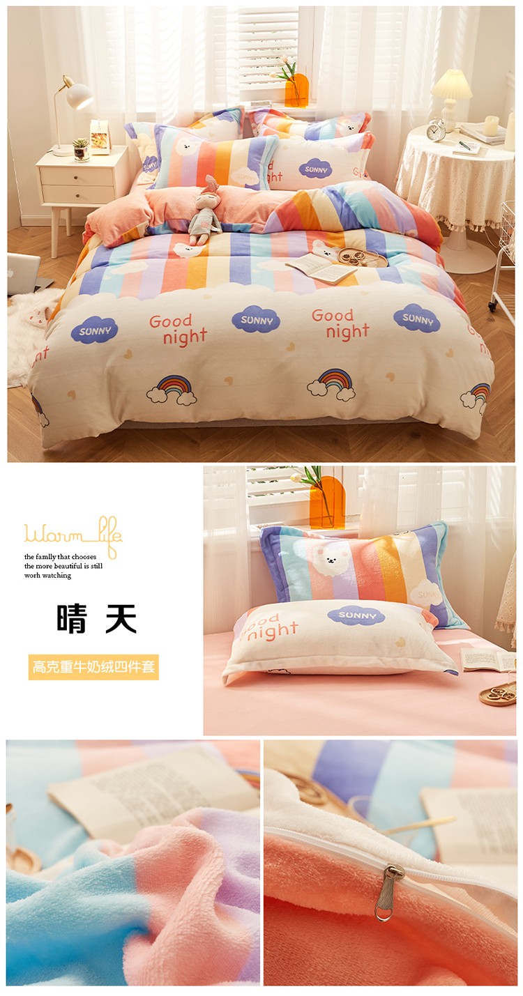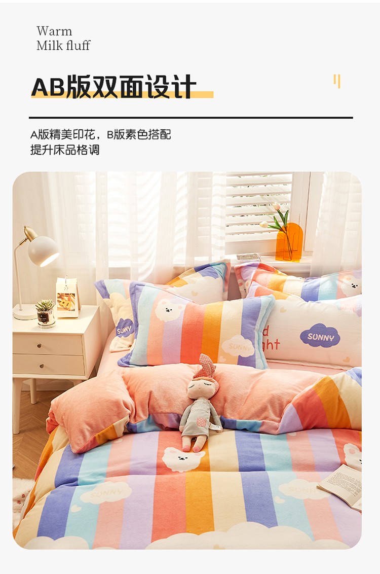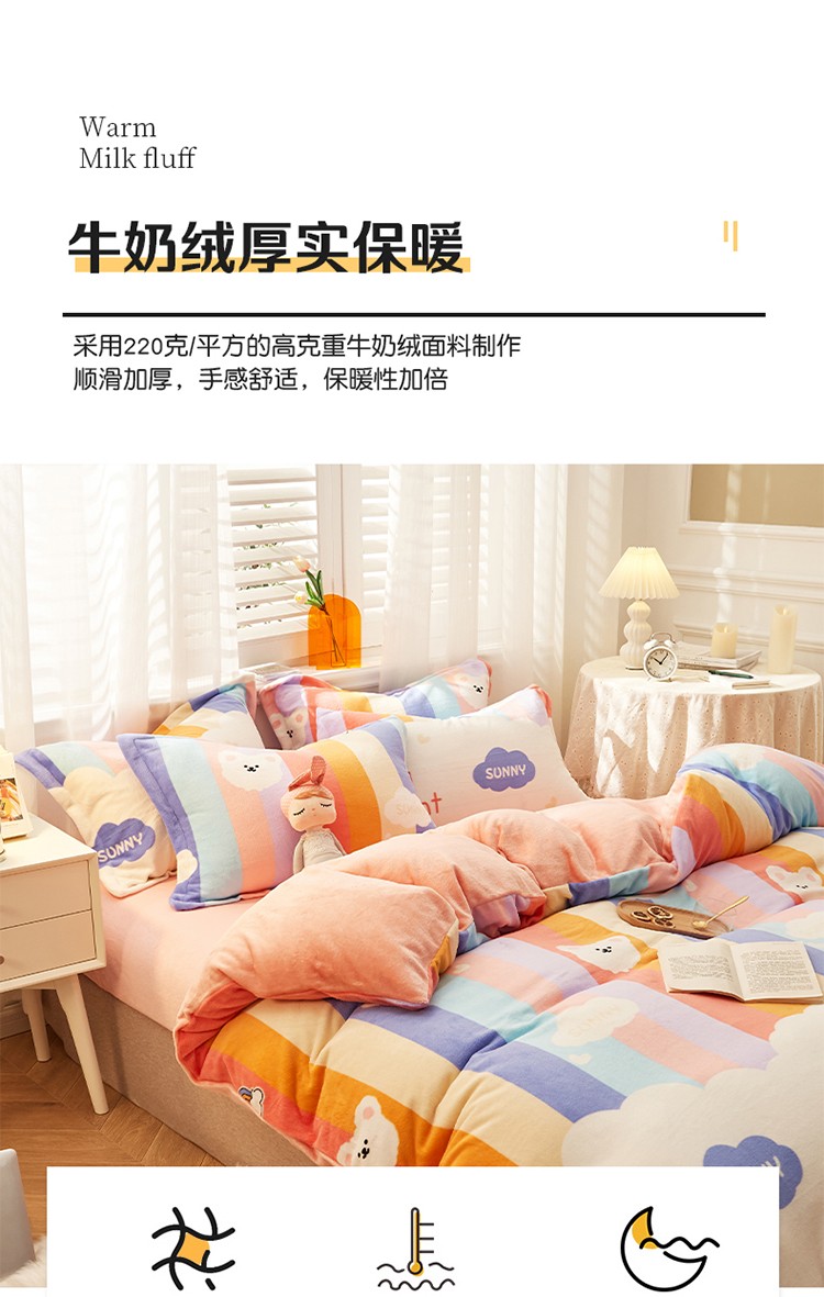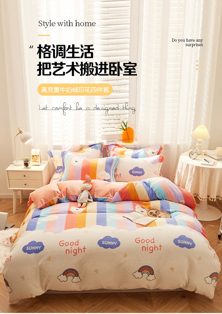 佰亿莱 2024新款高克重牛奶绒印花四件套 晴天