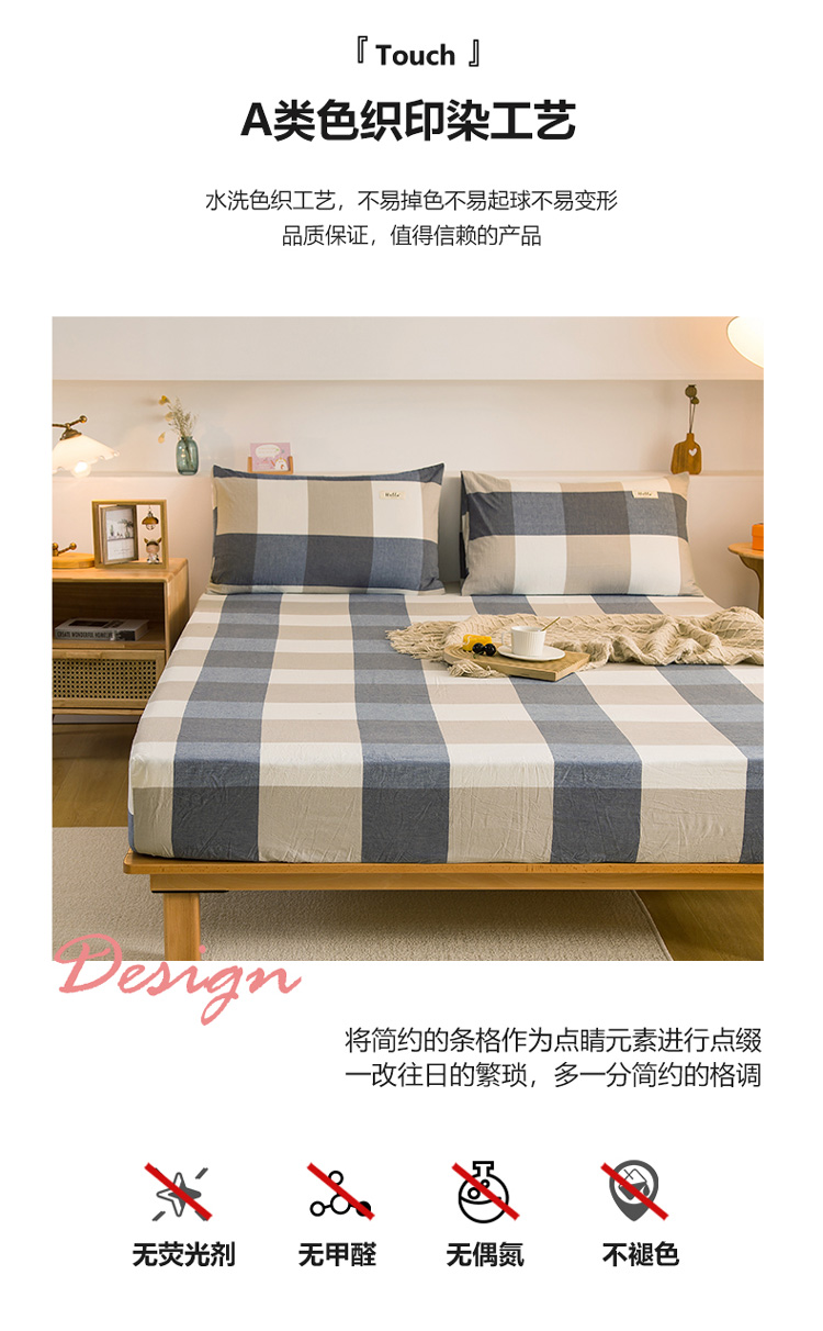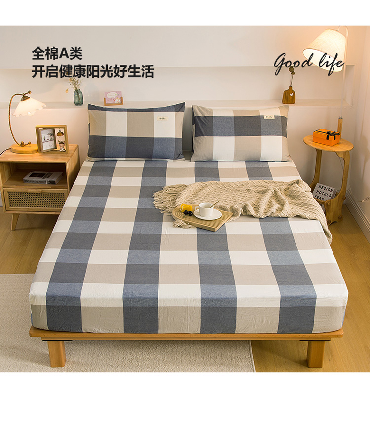 • 91家纺网 家纺一手货源 找家纺 柠萌2021新款全棉色织水洗棉单床笠 蓝大格