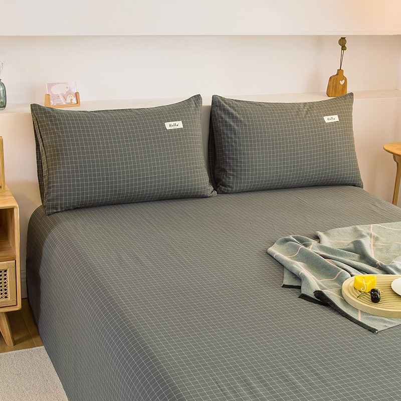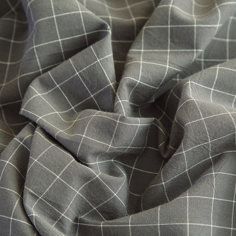 商品名称:柠萌2021新款全棉色织水洗棉枕套 灰小格(一对)