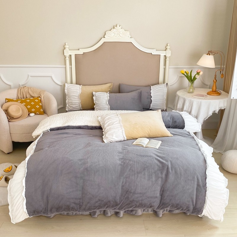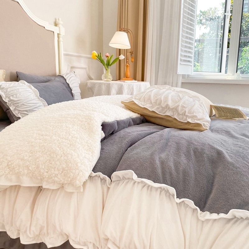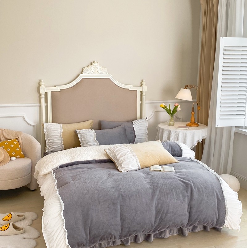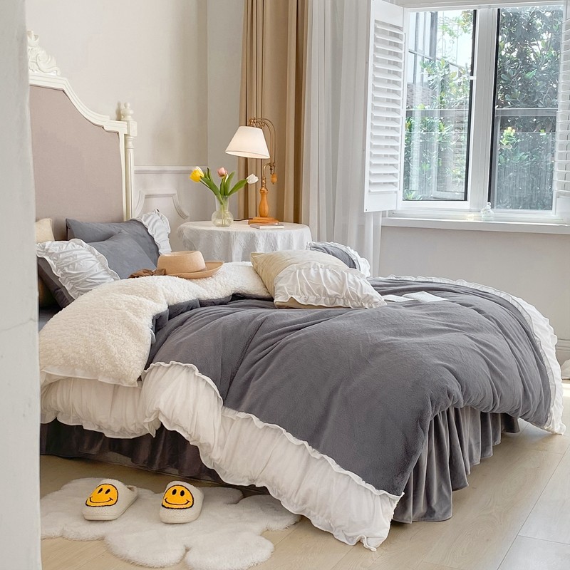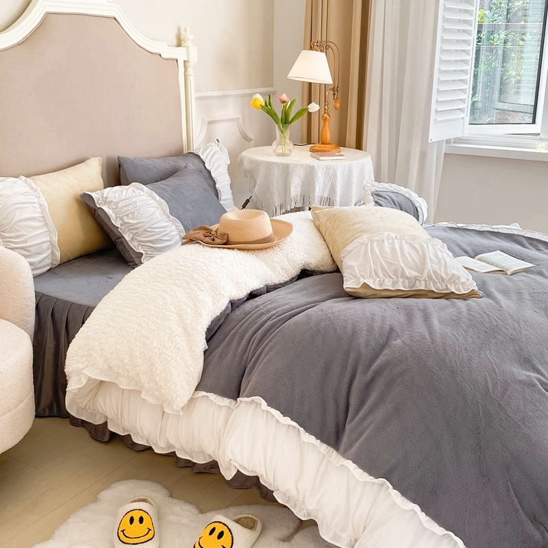 漫调 2021新款荷叶边兔兔绒韩版四件套 绅士灰