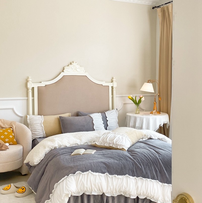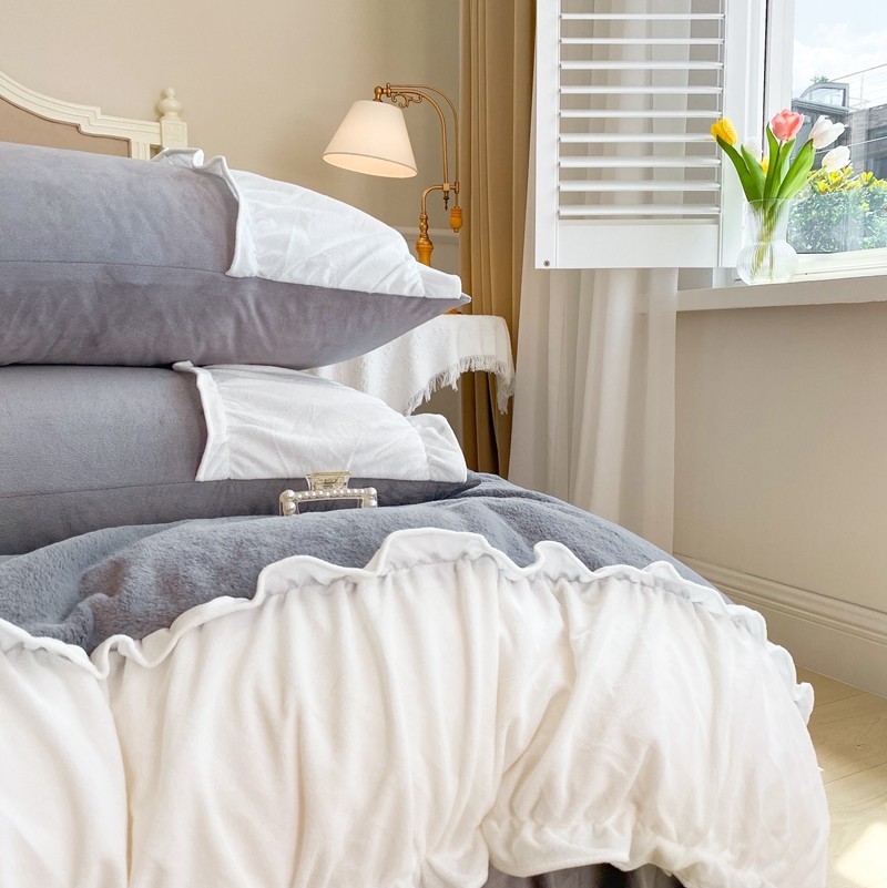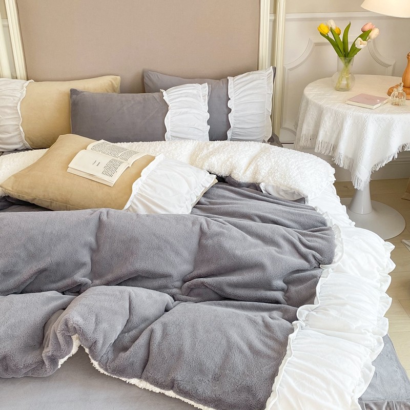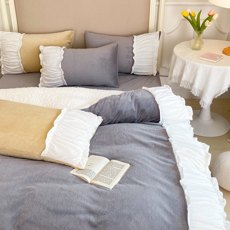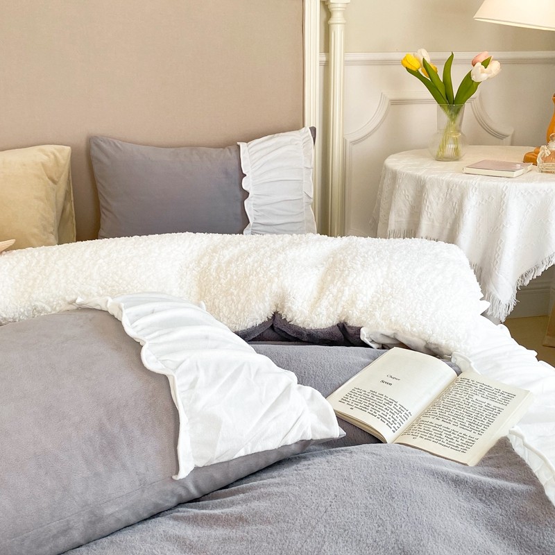 漫调 2021新款荷叶边兔兔绒韩版四件套 绅士灰