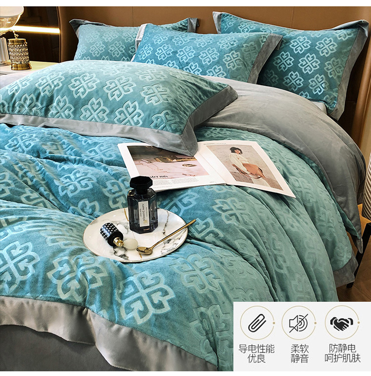 商品名称:爱缦2021格调系列实拍230克婴儿绒四件套 浅石蓝