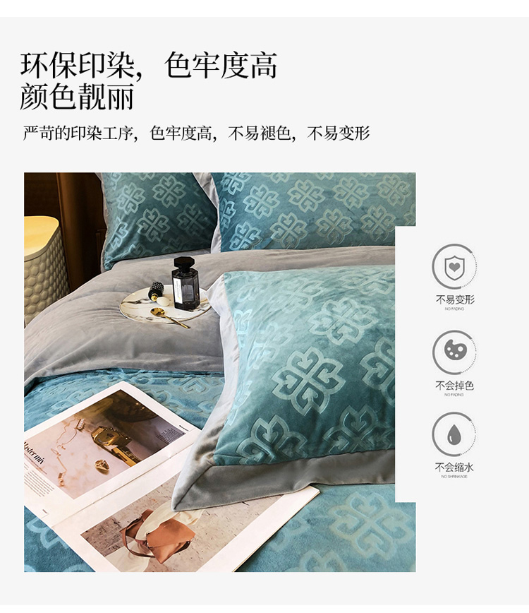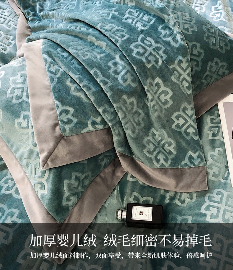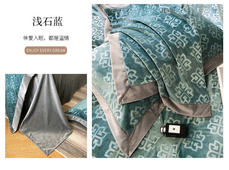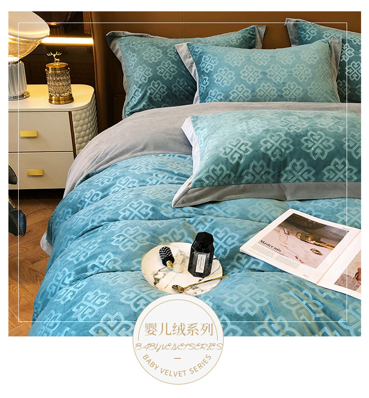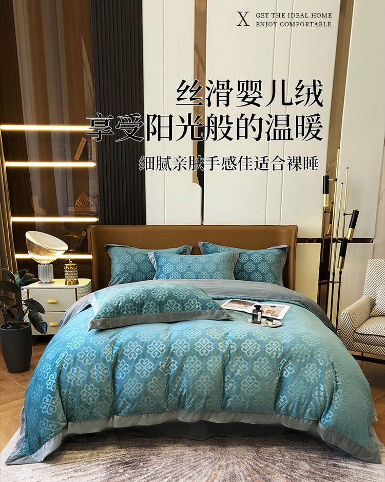 爱缦2021格调系列实拍230克婴儿绒四件套 浅石蓝