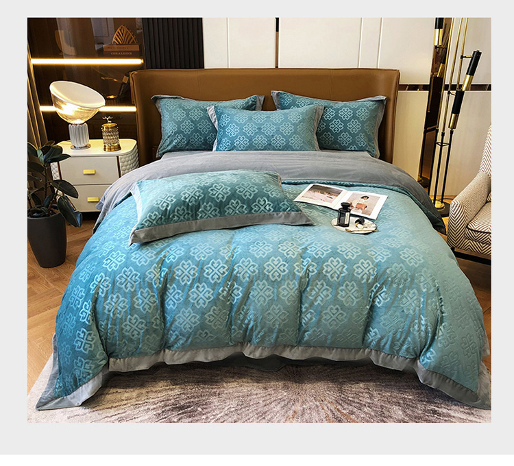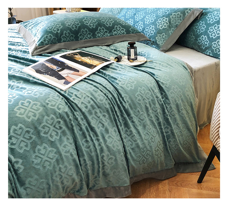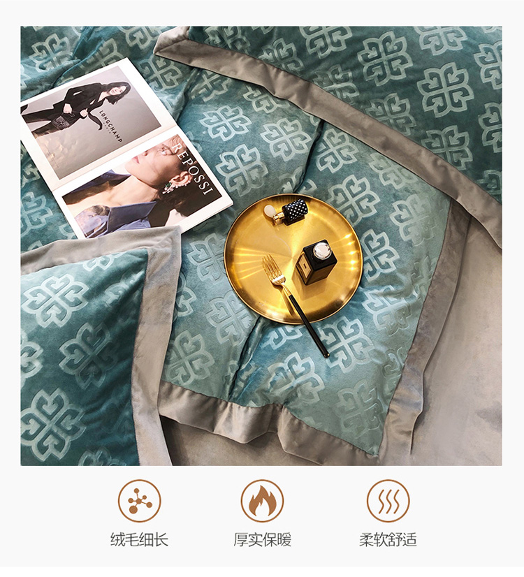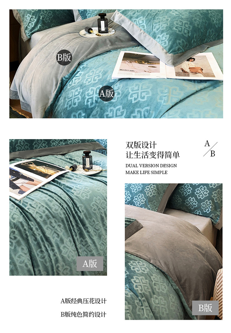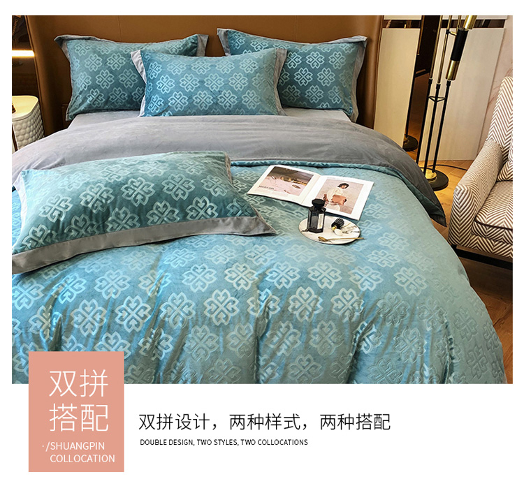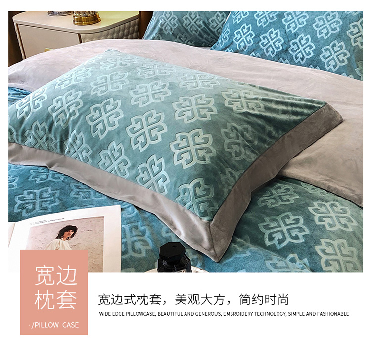 爱缦2021格调系列实拍230克婴儿绒四件套 浅石蓝