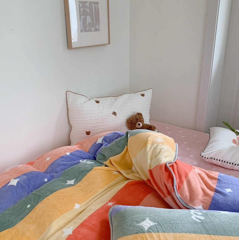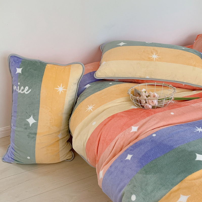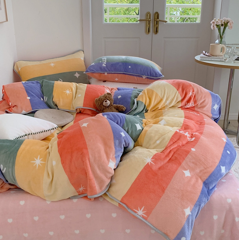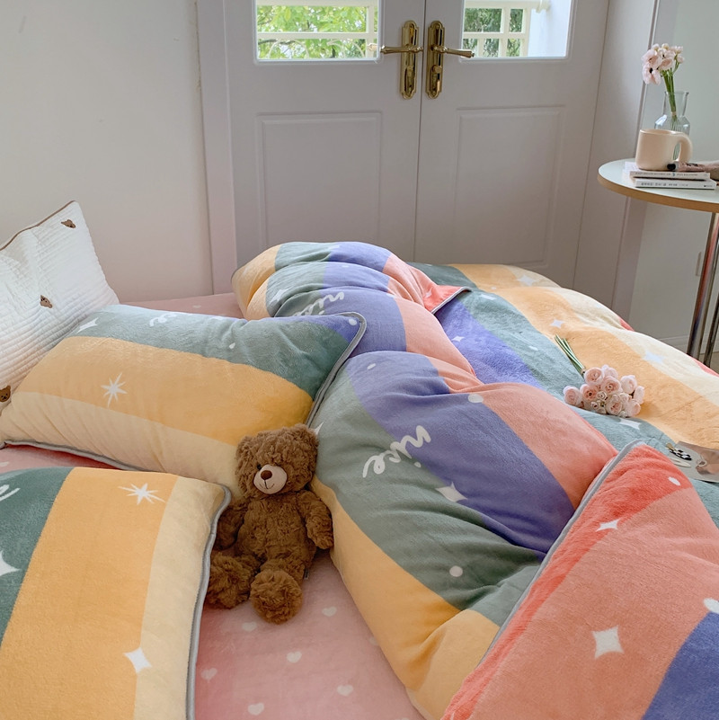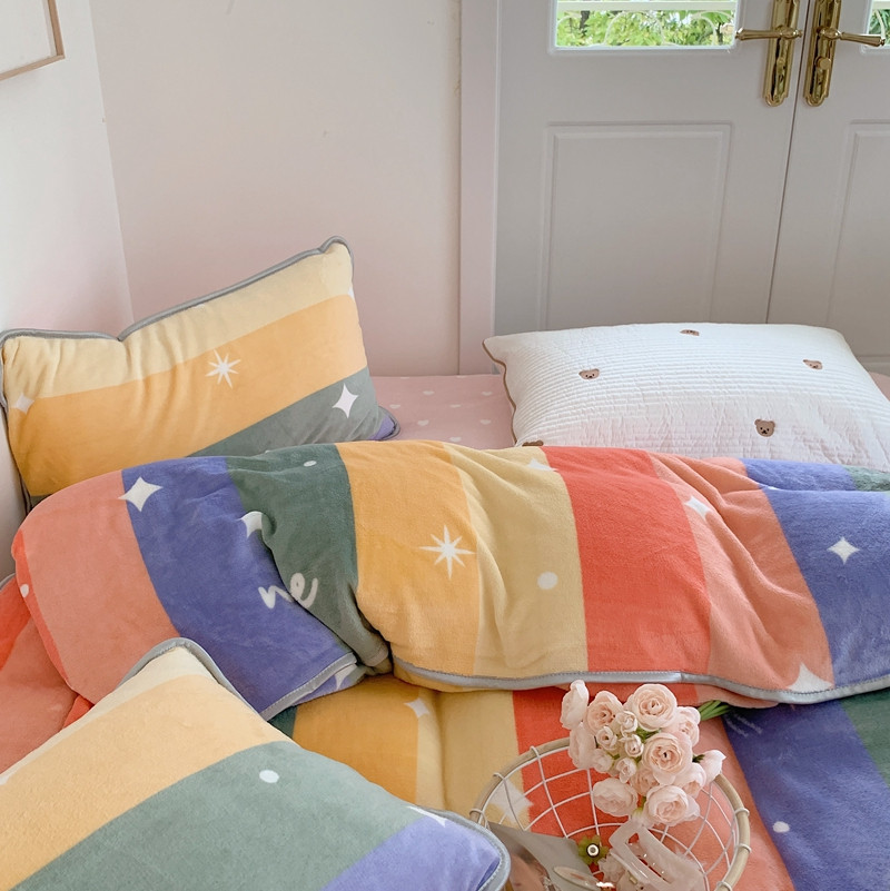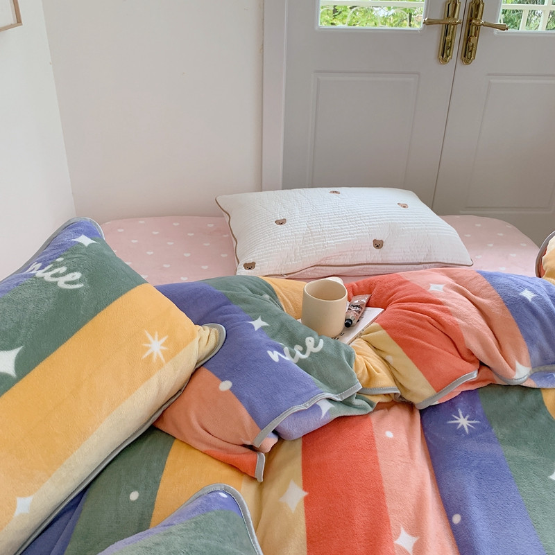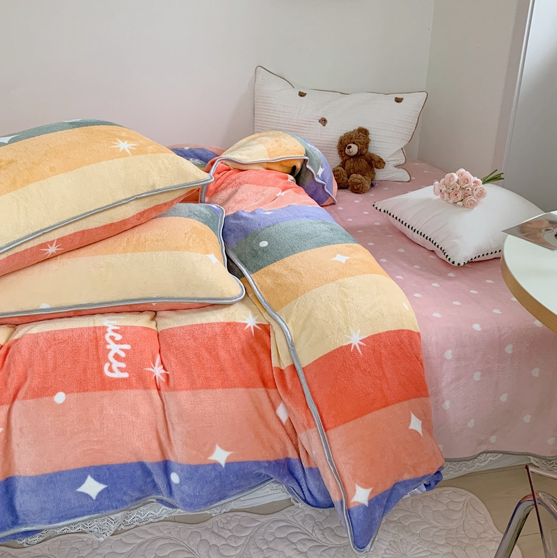 顾里2021新款ins韩国高端保暖牛奶绒四件套 点点彩虹