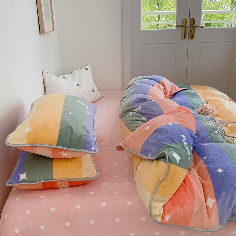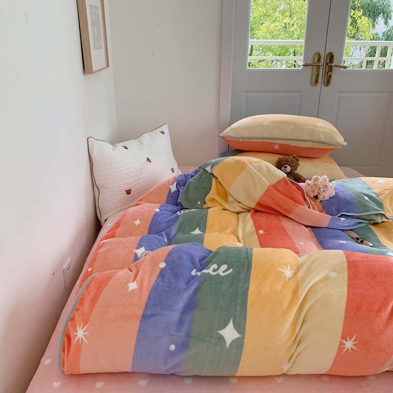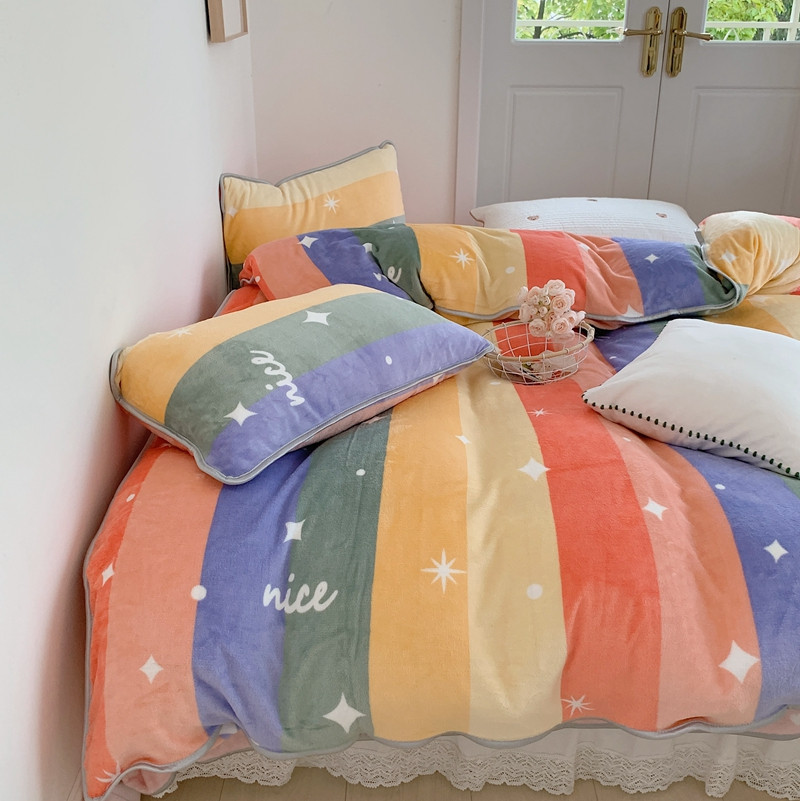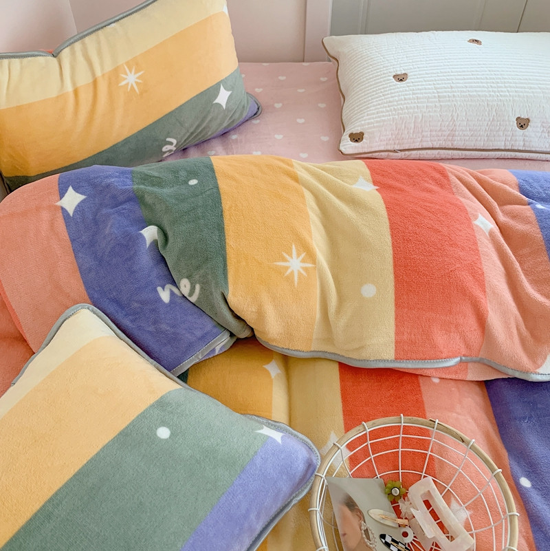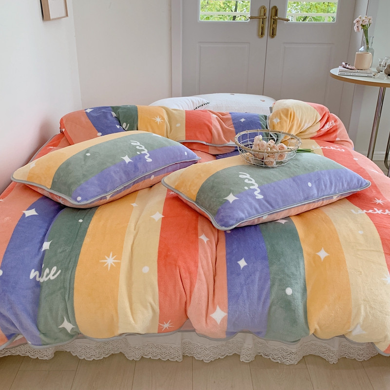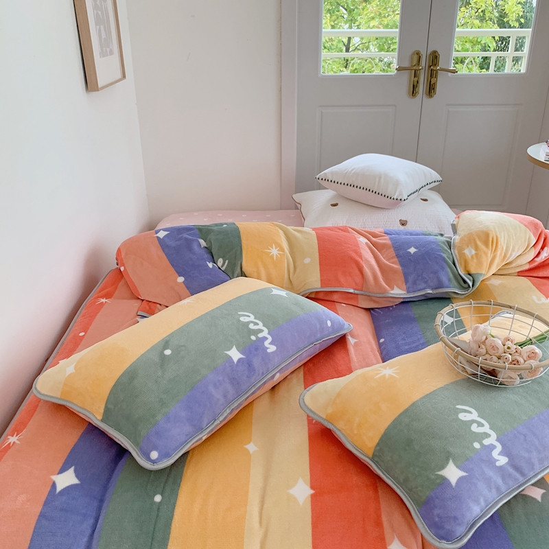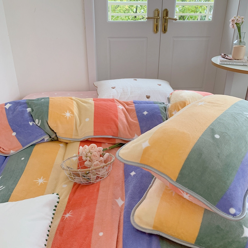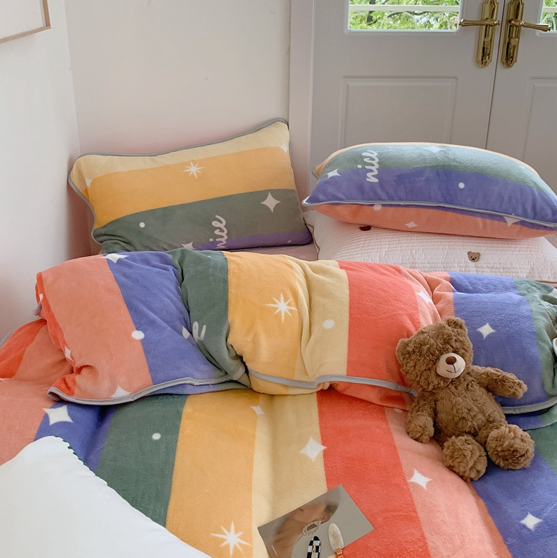 顾里2021新款ins韩国高端保暖牛奶绒四件套 点点彩虹