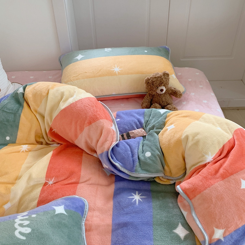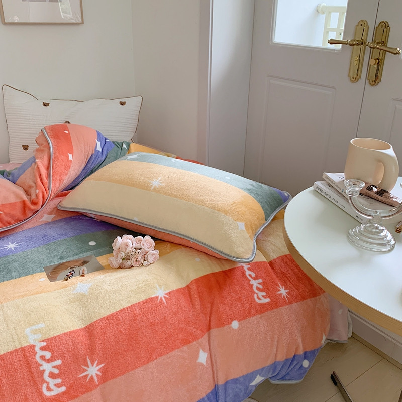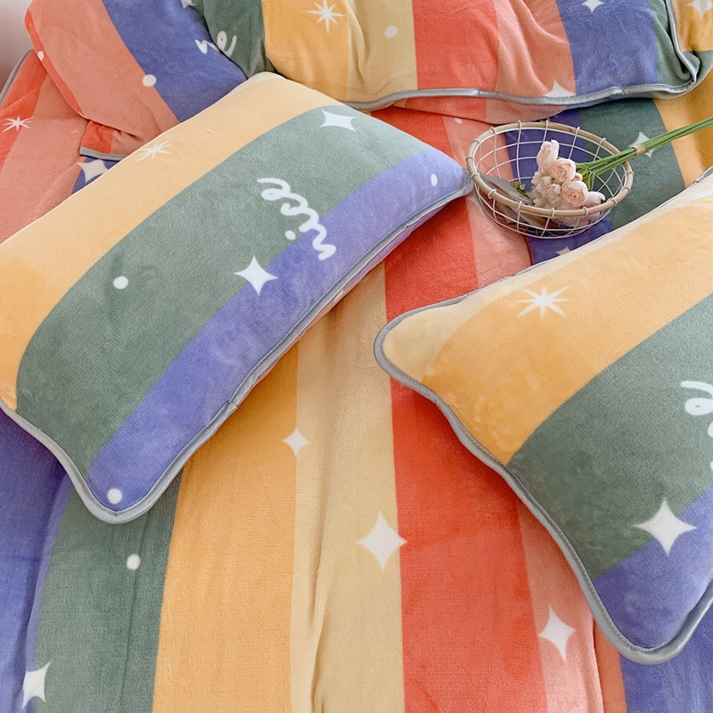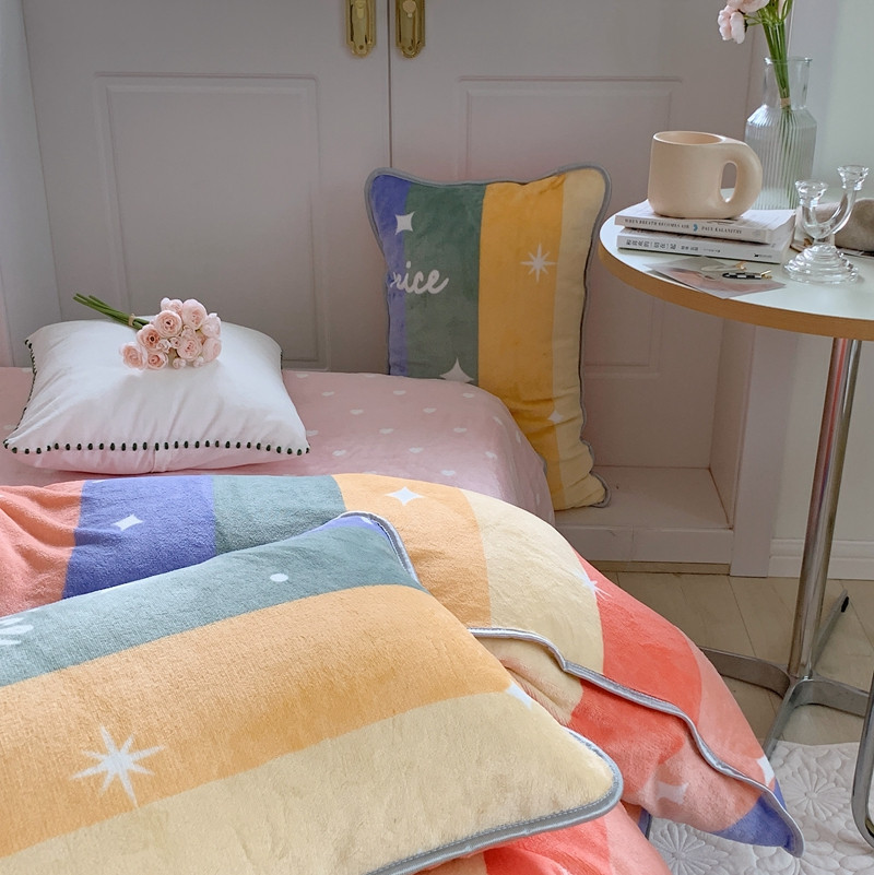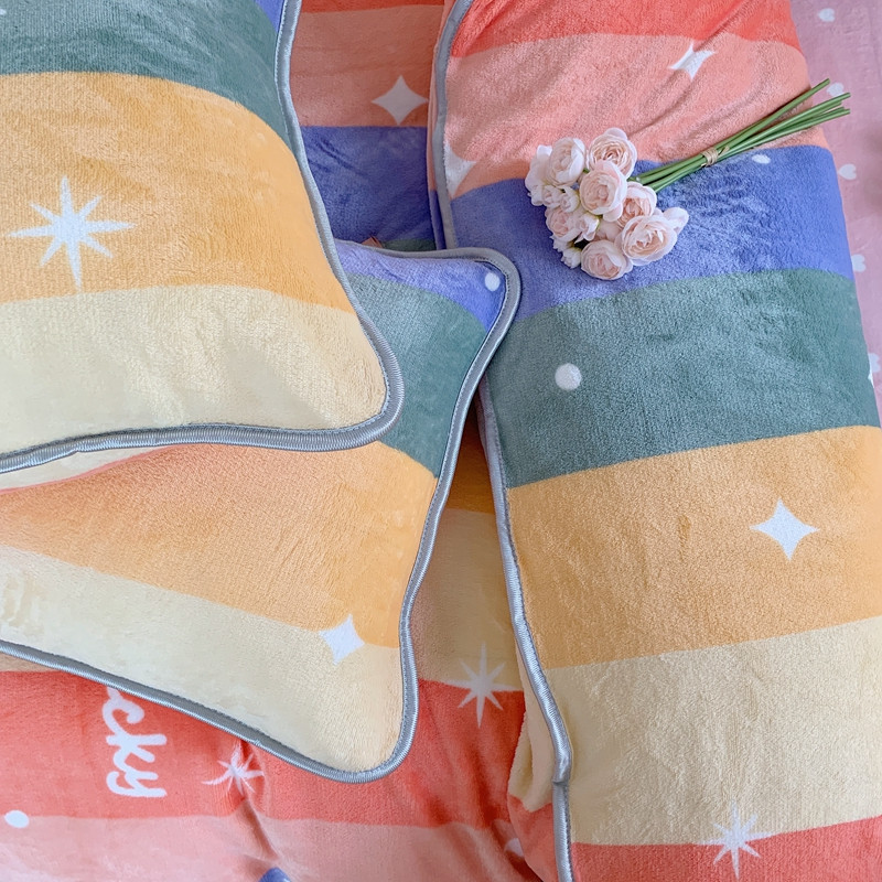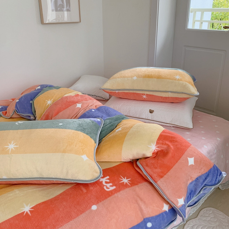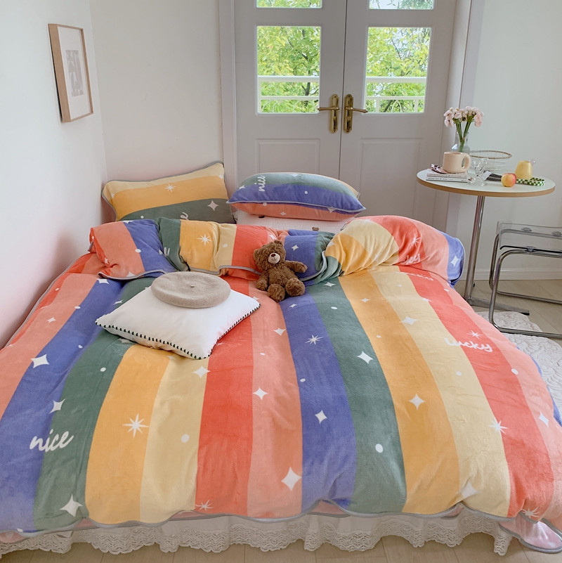 顾里2021新款ins韩国高端保暖牛奶绒四件套 点点彩虹