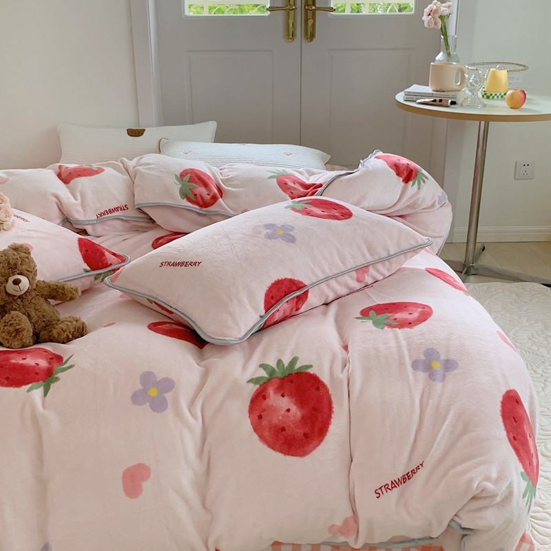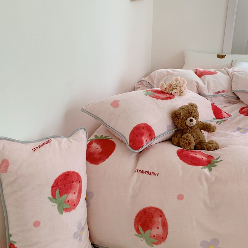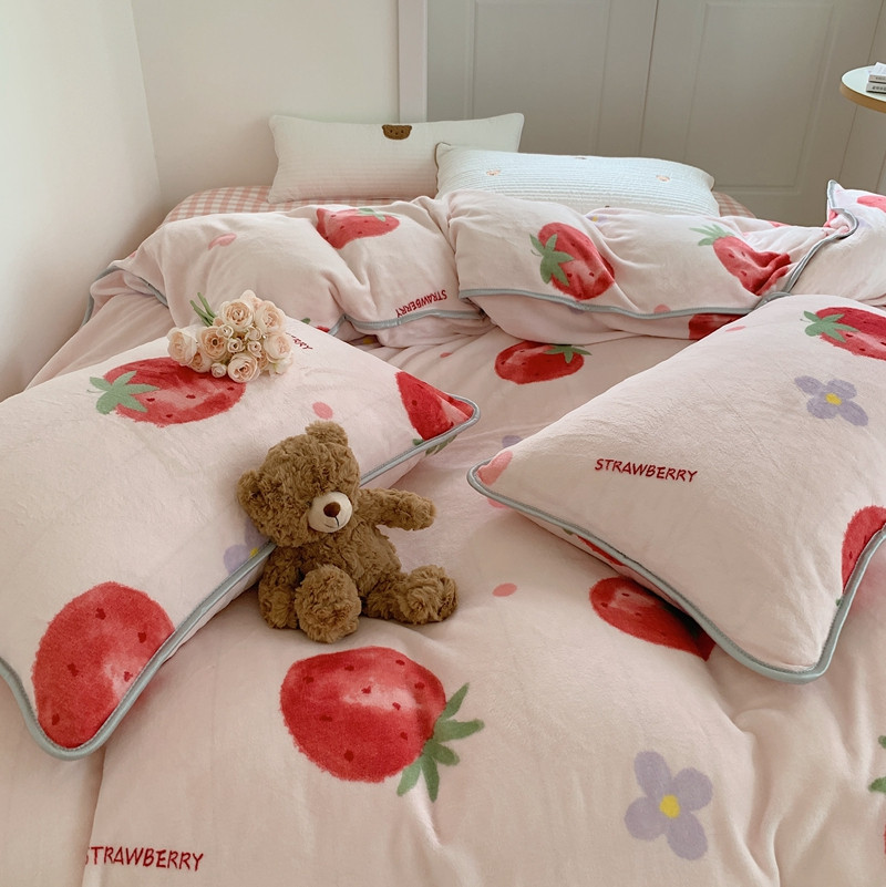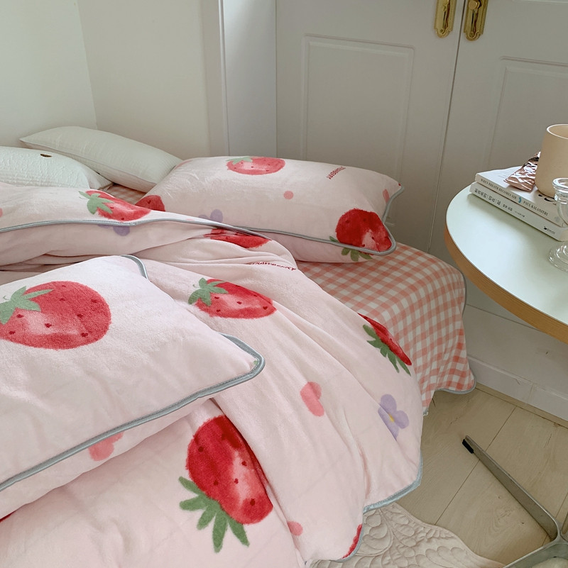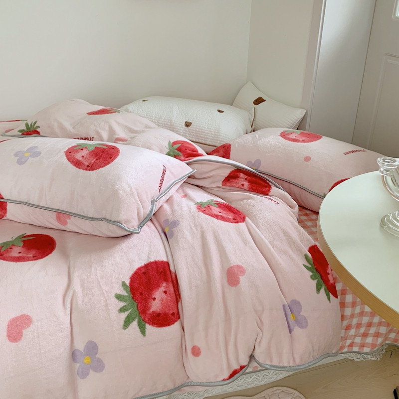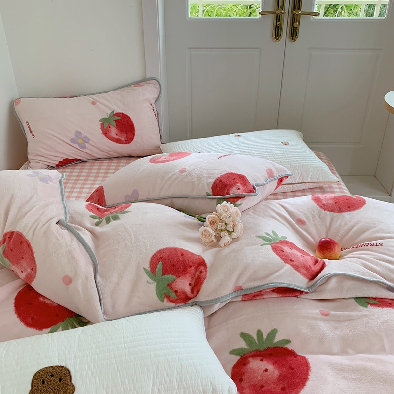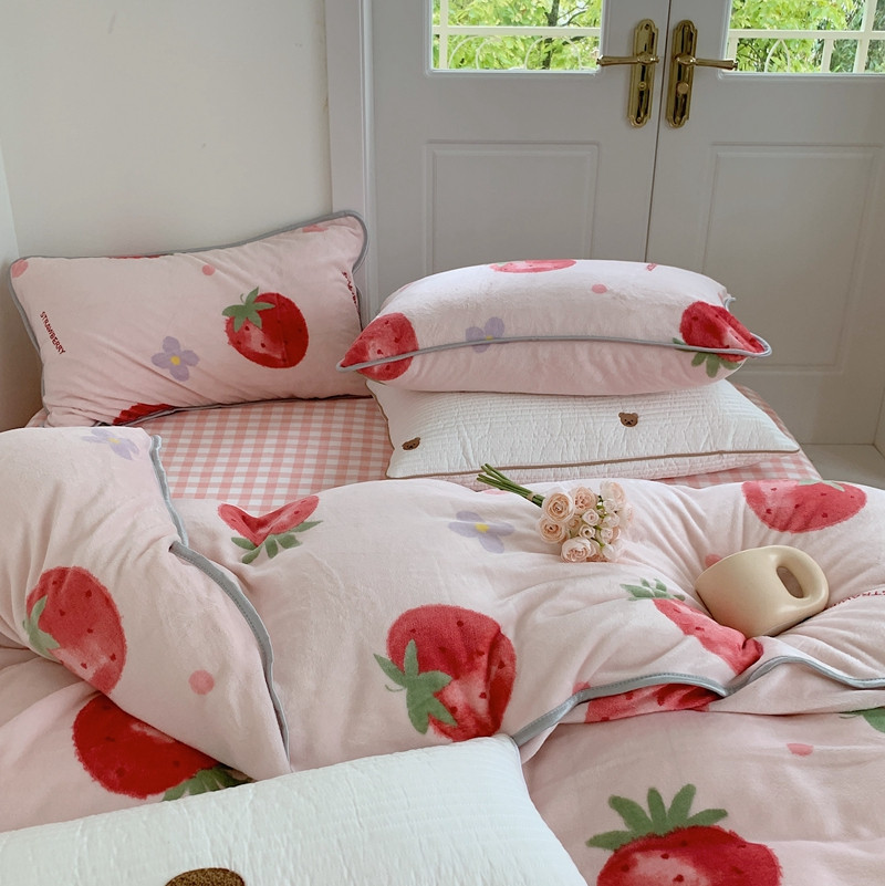 顾里2021新款ins韩国高端保暖牛奶绒四件套 花花草莓