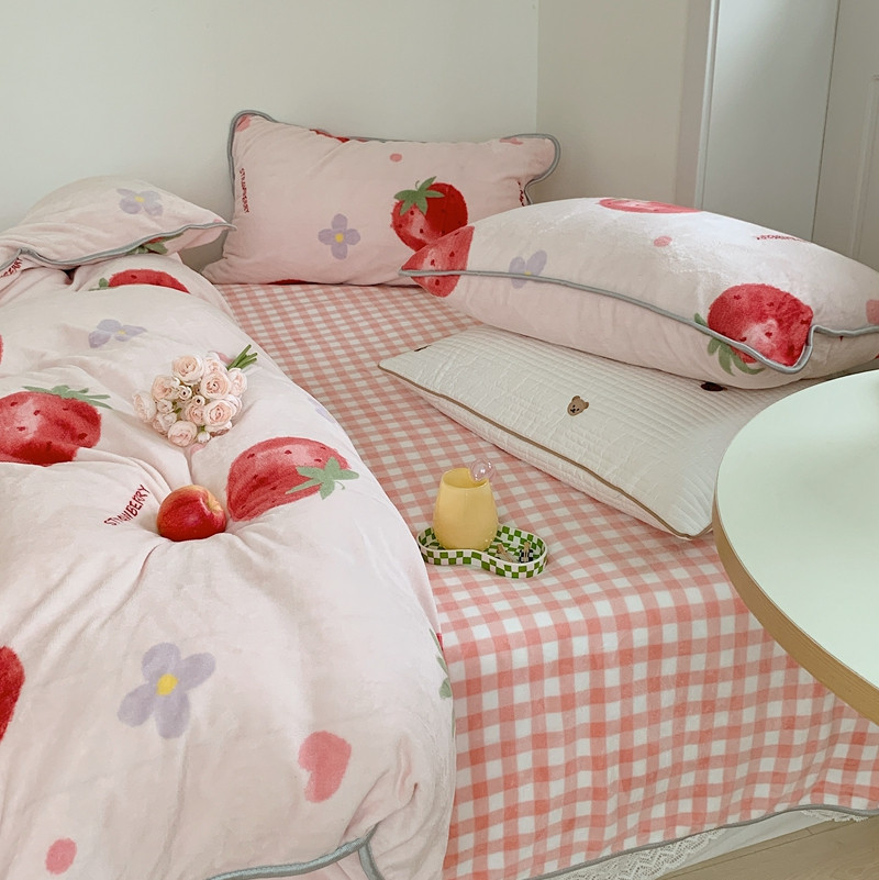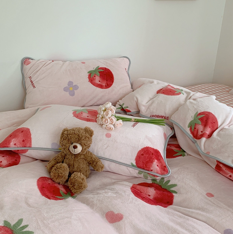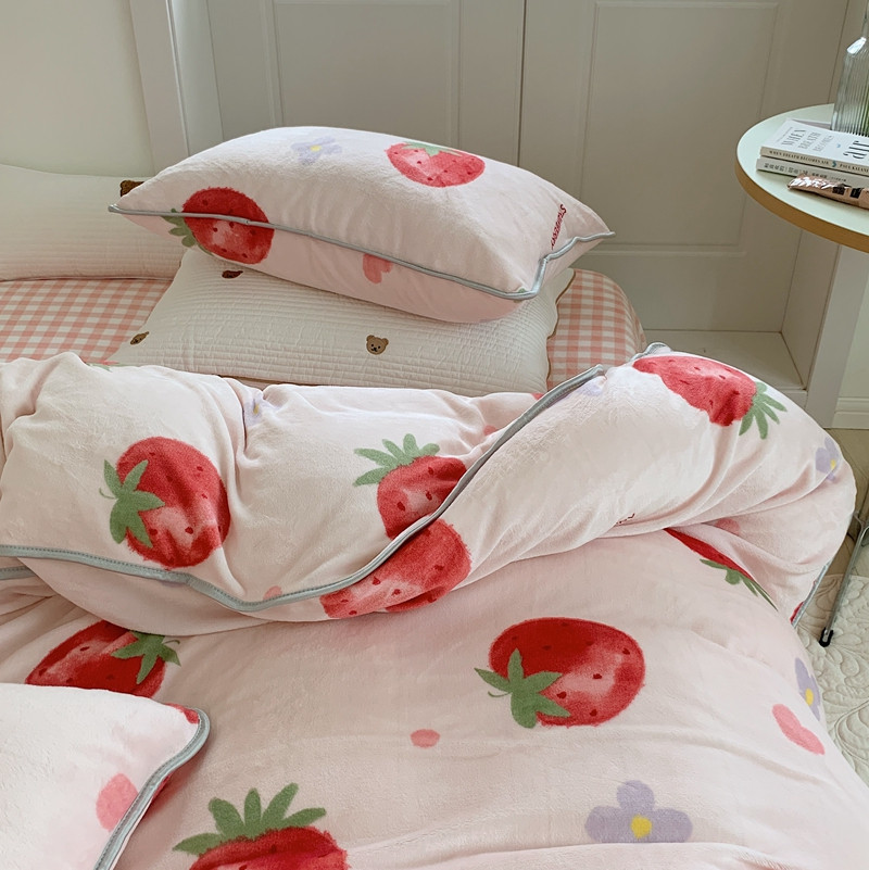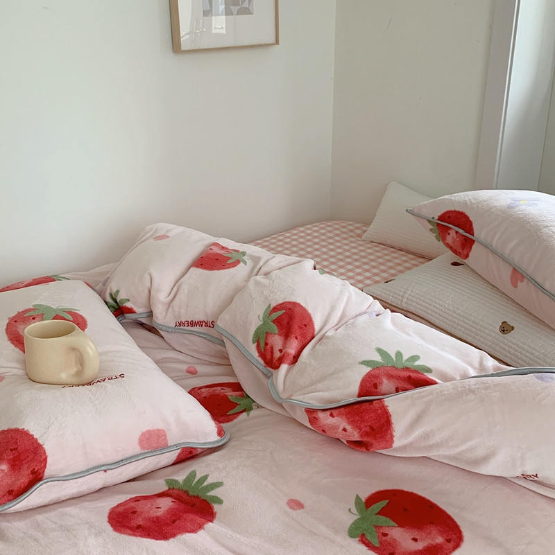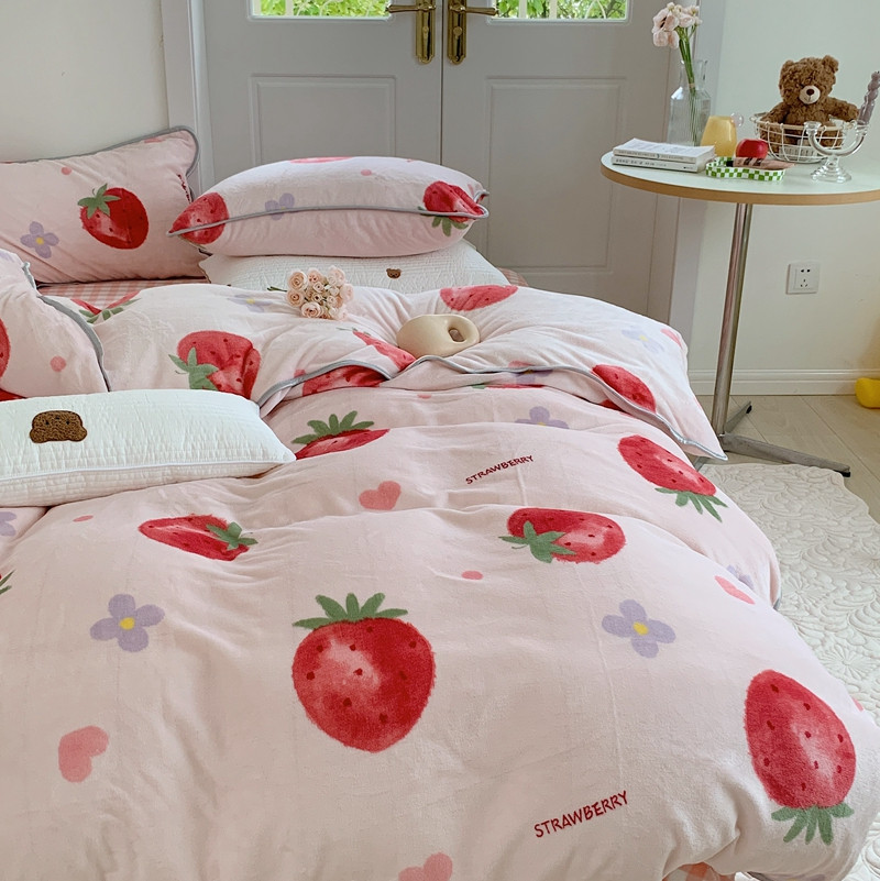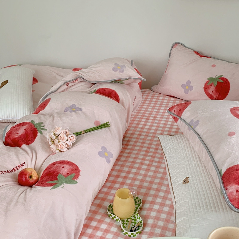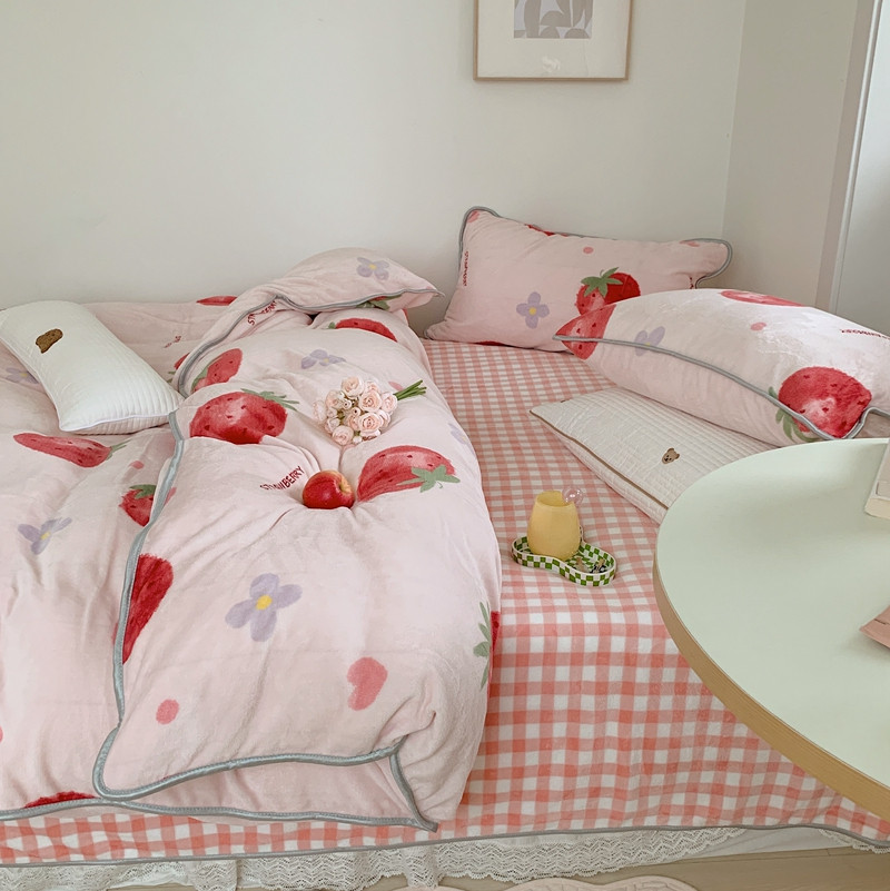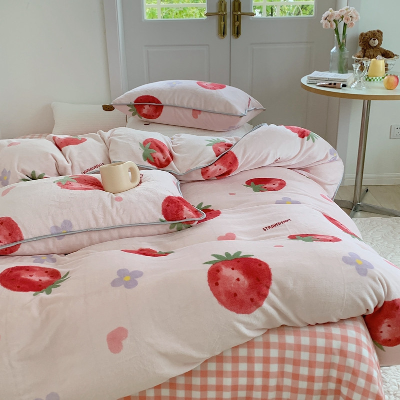 顾里2021新款ins韩国高端保暖牛奶绒四件套 花花草莓