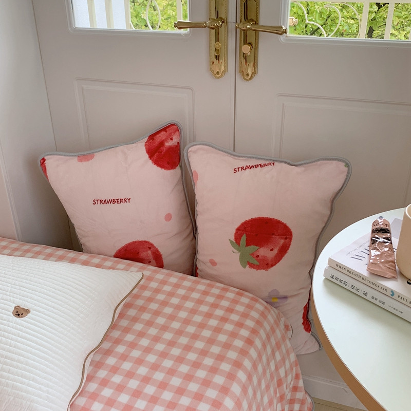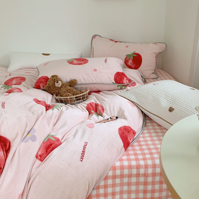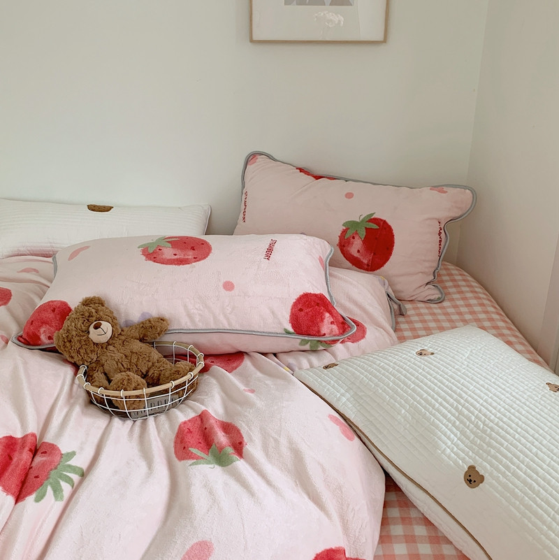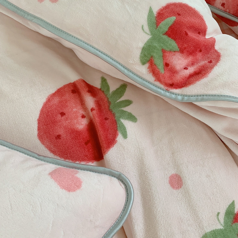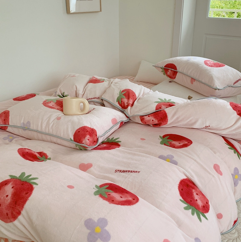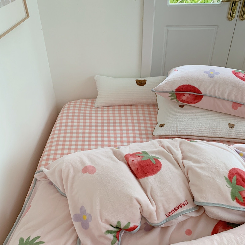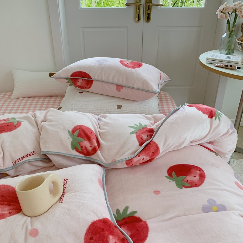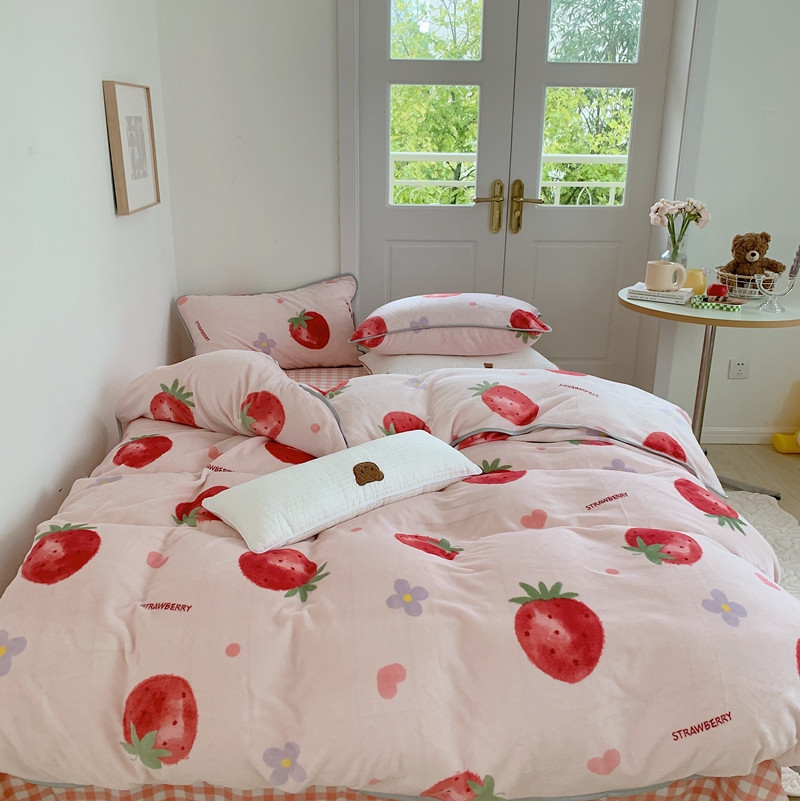 顾里2021新款ins韩国高端保暖牛奶绒四件套 花花草莓