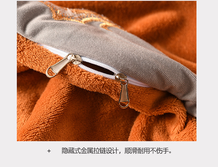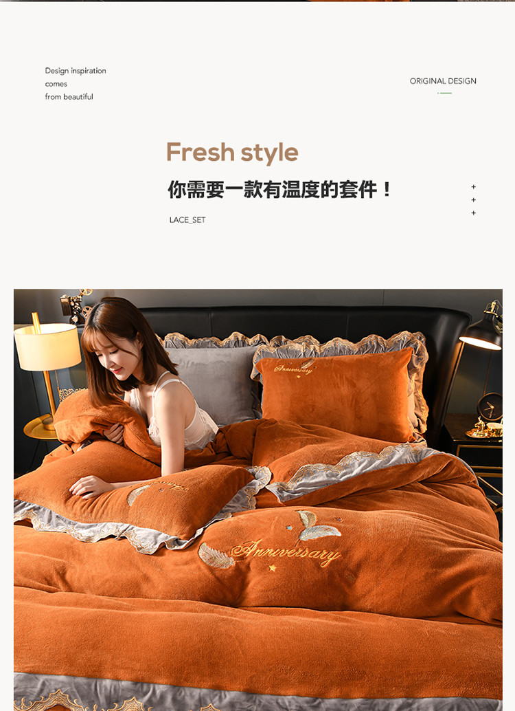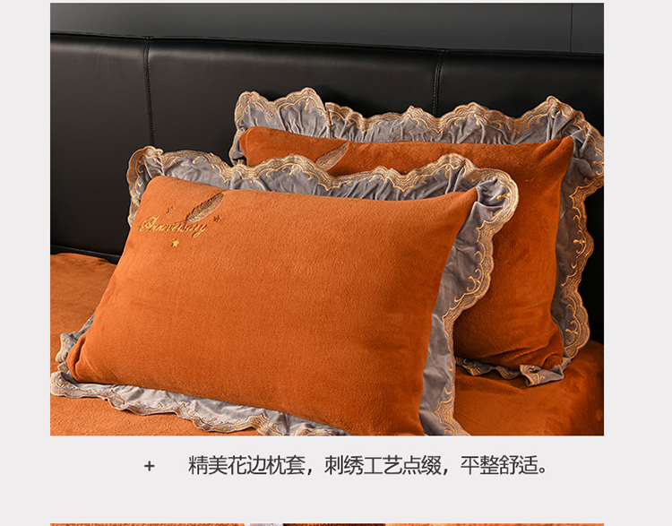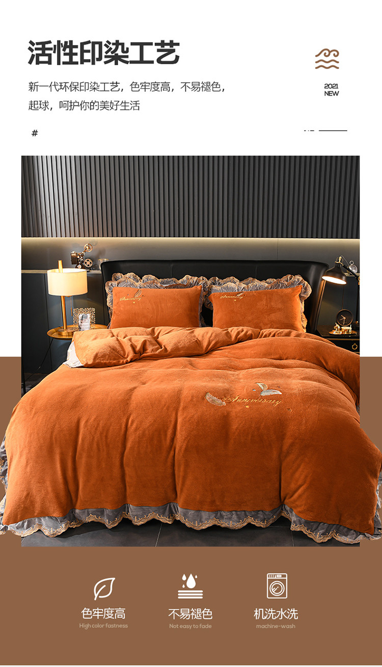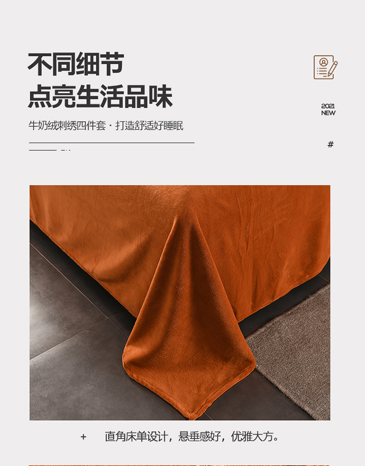 眠帛家居 2021新款秋冬牛奶绒刺绣工艺四件套 羽毛-红棕