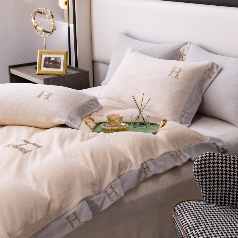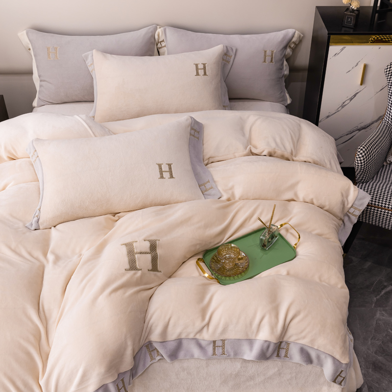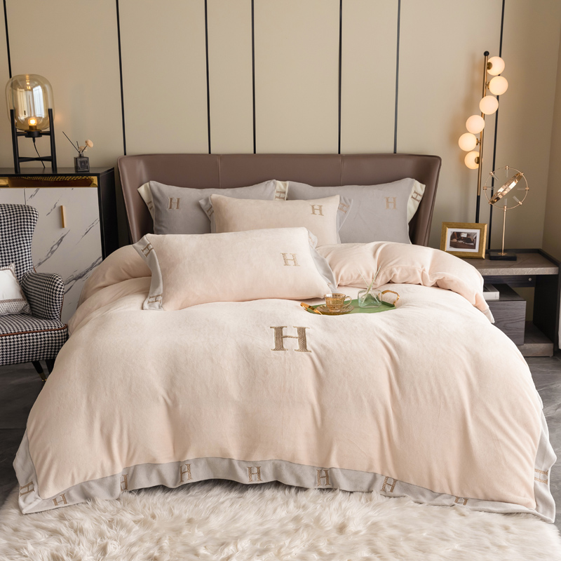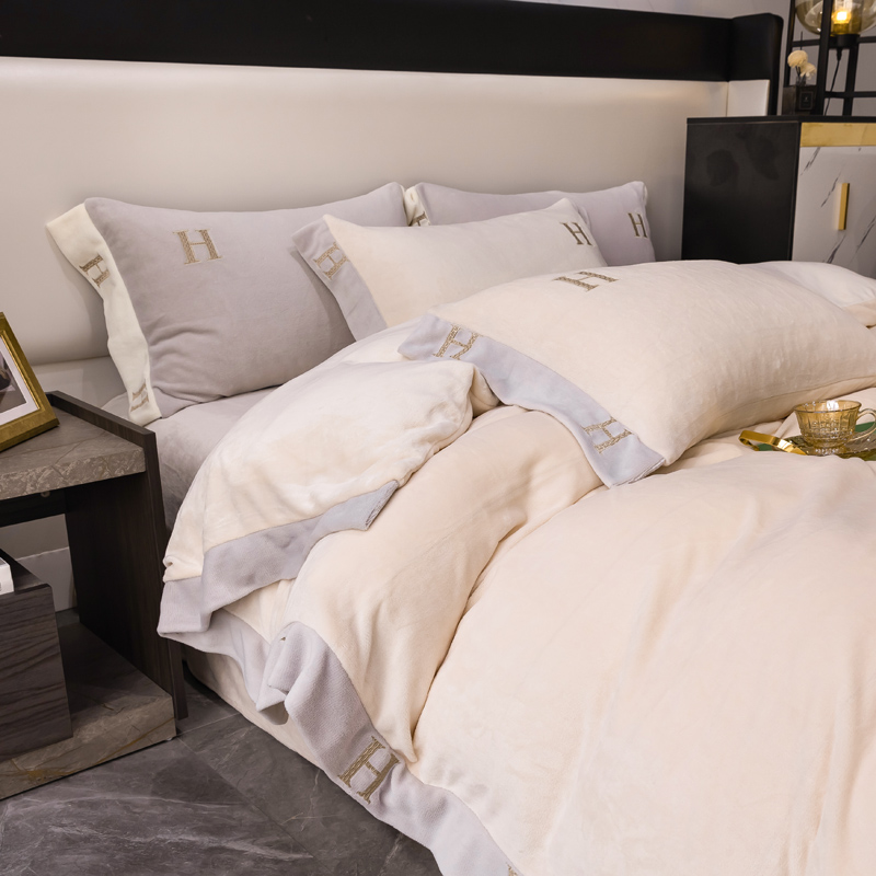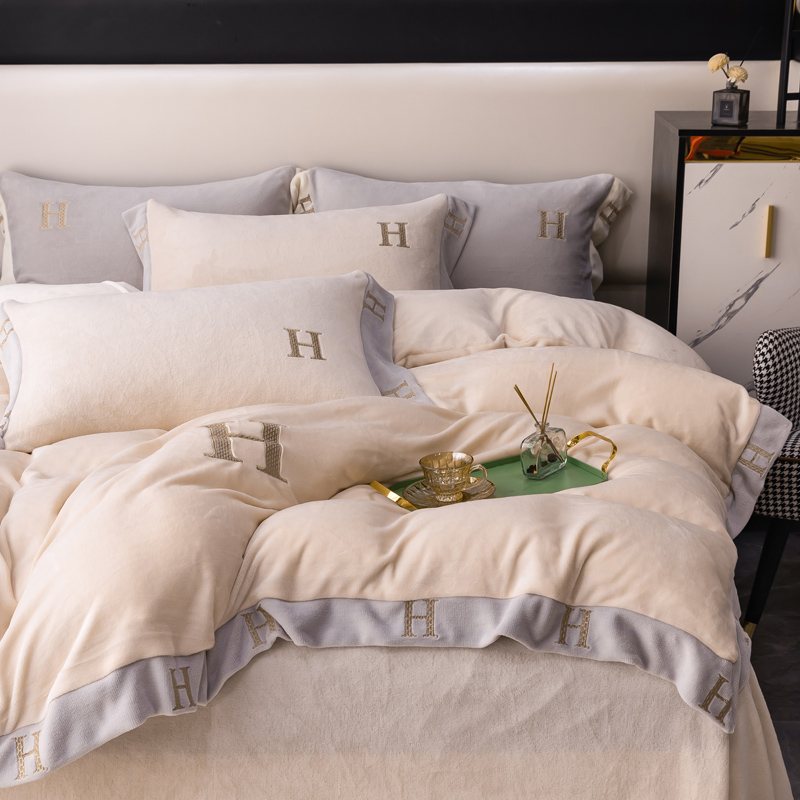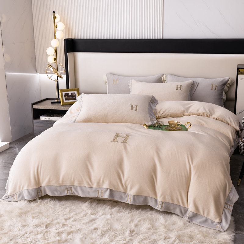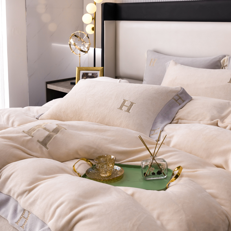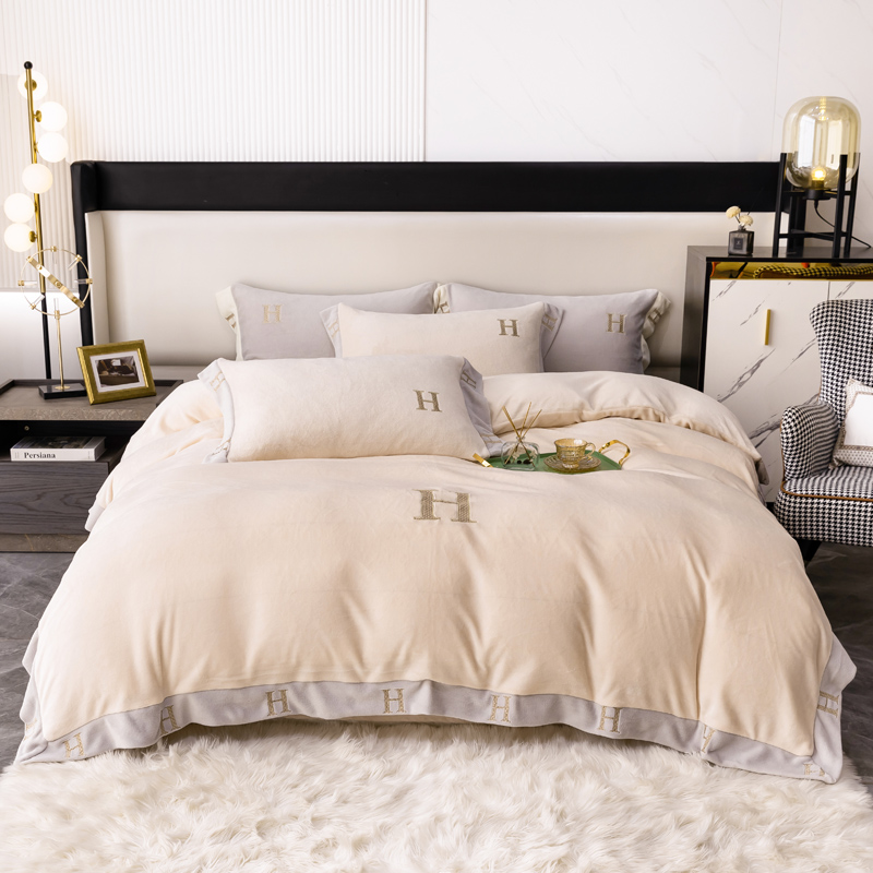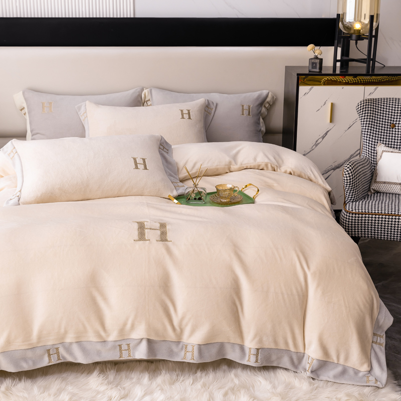 商品名称:芯贝儿 2021新款加厚牛奶绒轻奢宽边刺绣四件套 象牙白