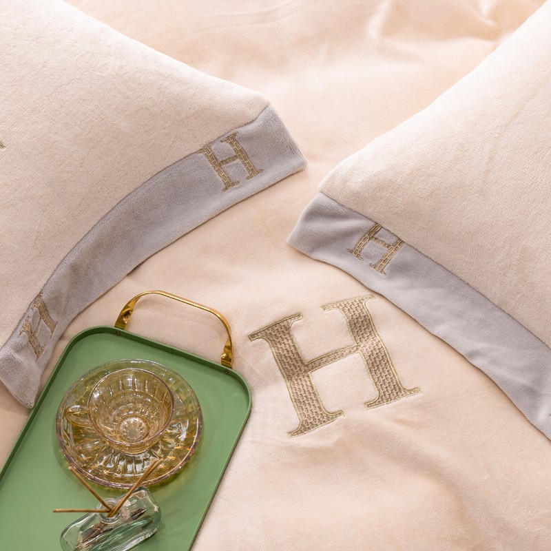 芯贝儿 2021新款加厚牛奶绒轻奢宽边刺绣四件套 象牙白