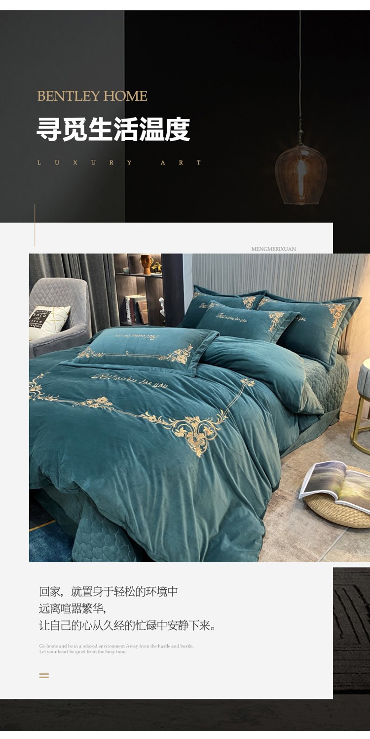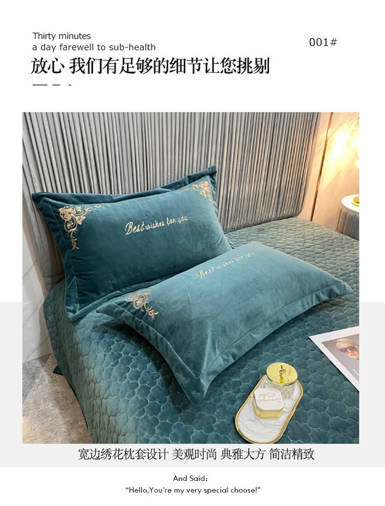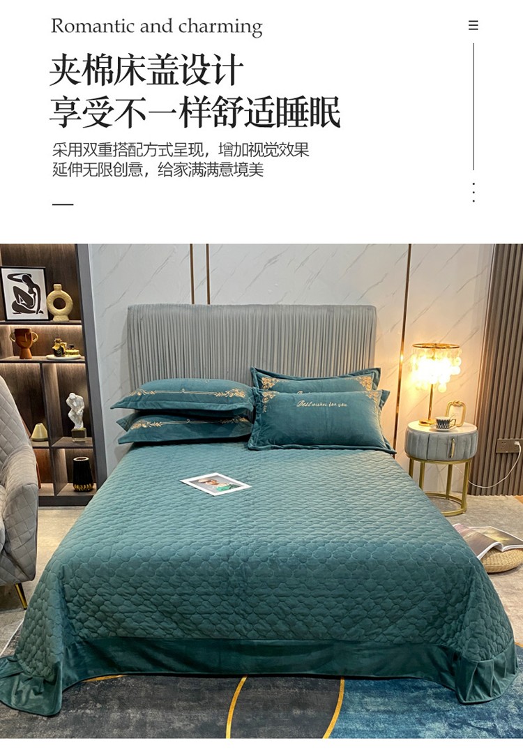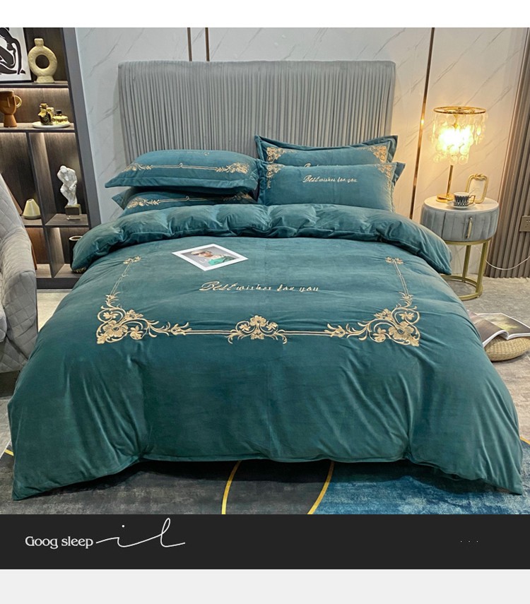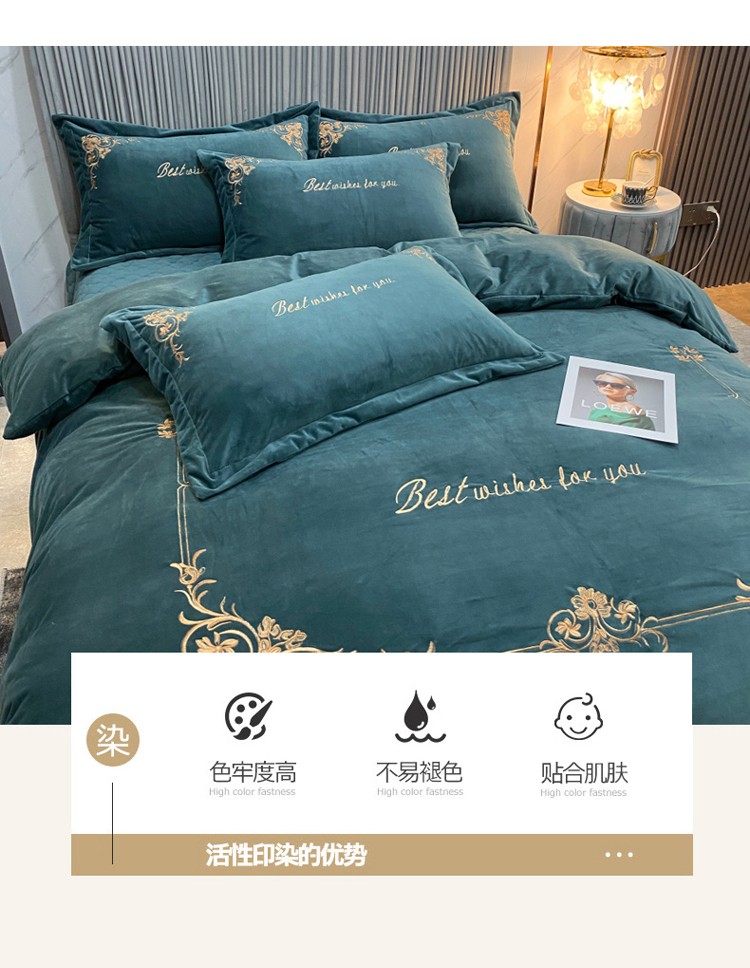 商品名称:星尚2021高品质婴儿绒夹棉床盖绣花四件套牛奶法莱绒 祖母绿