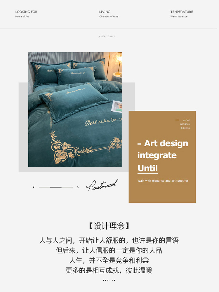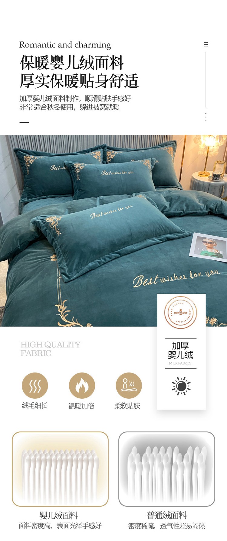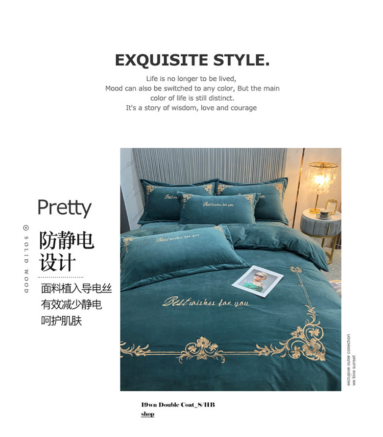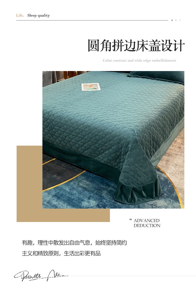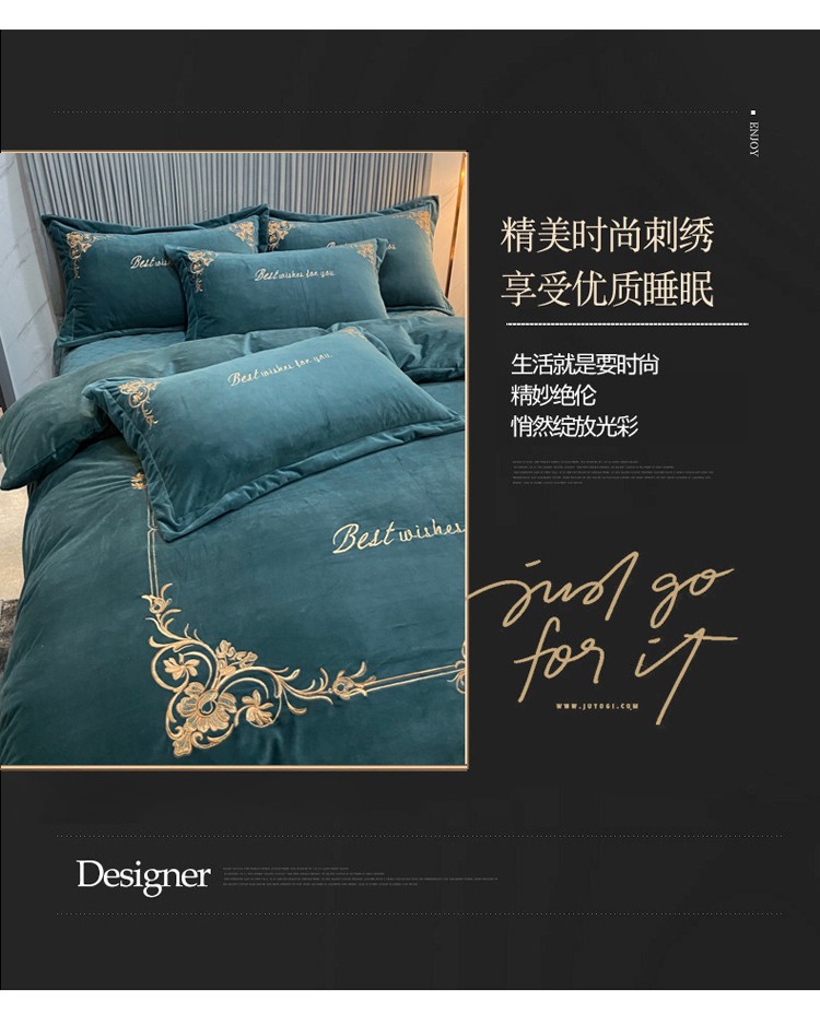 商品名称:星尚2021高品质婴儿绒夹棉床盖绣花四件套牛奶法莱绒 祖母绿