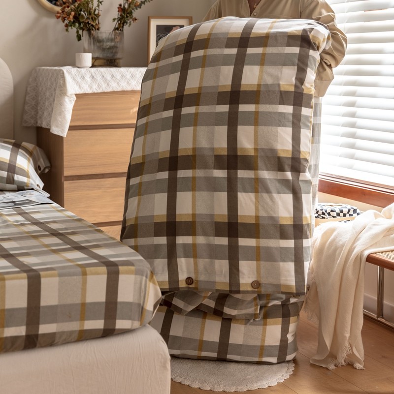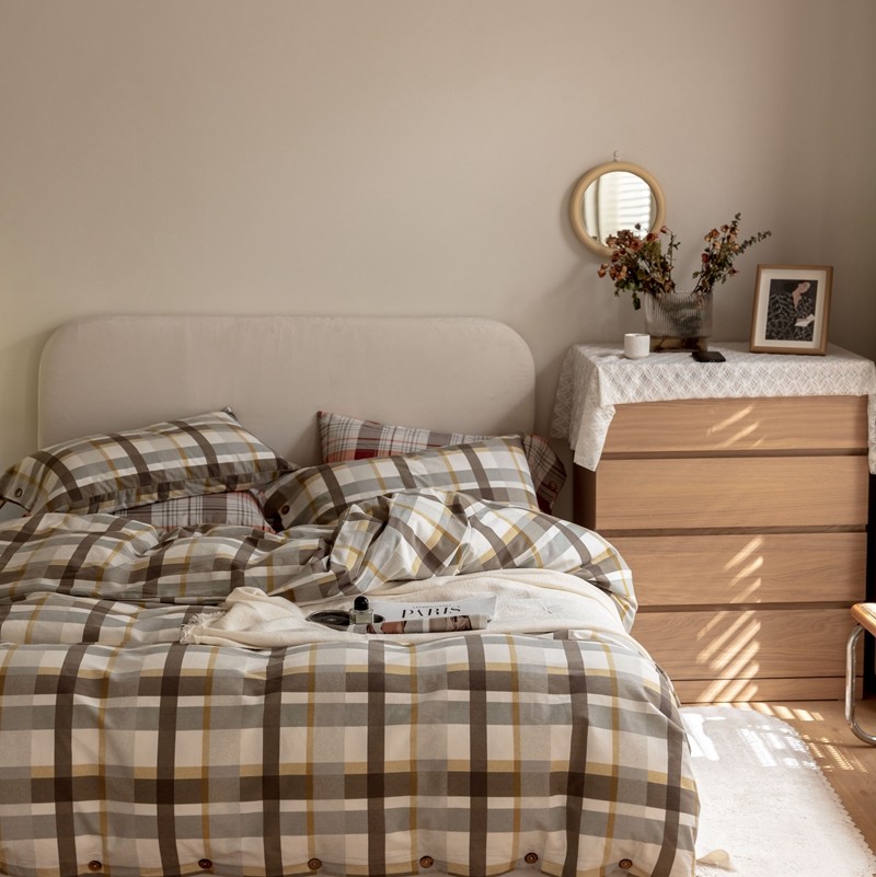 (总)寐眠 2025新款印花牛奶绒三角针贝壳款四件套,红蓝律动,黄绿森语,米韵红痕,墨格独白,暖黄千鸟,桃粉千鸟,雾灰千鸟,棕格时光