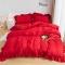 商品名称:乐卧 2026新款纯色荷叶边水洗磨毛四件套 爱相随-中国红