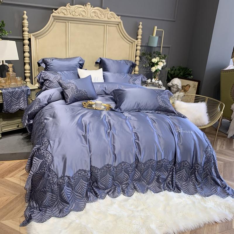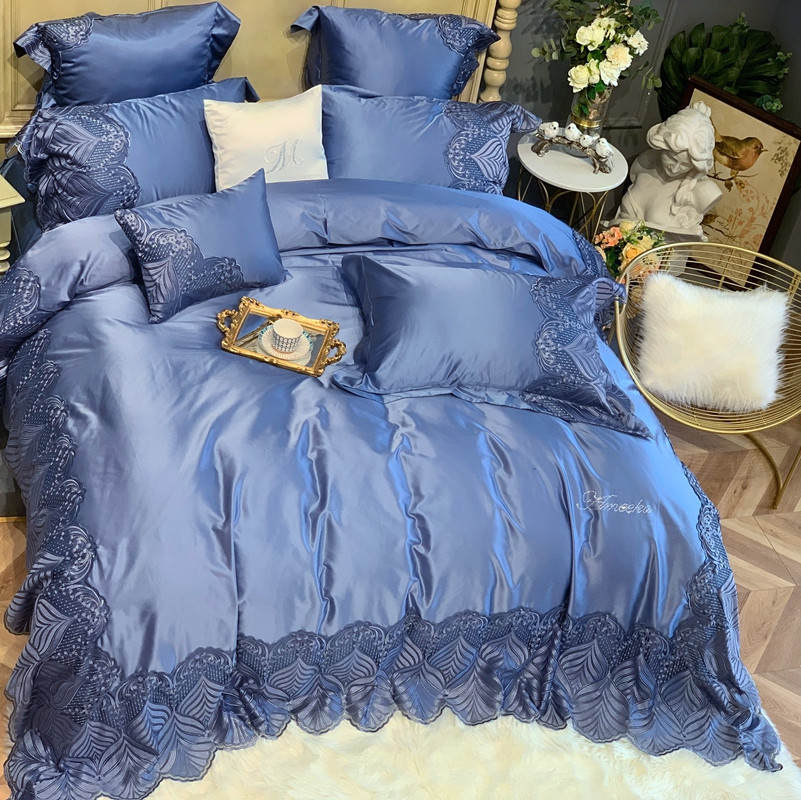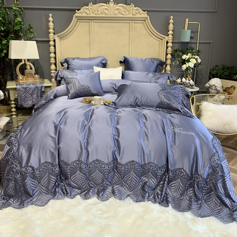 (总)2024新款高端蕾丝重磅真丝棉系列四件套-爱兰朵,爱兰朵豆沙,爱兰朵蓝,爱兰朵香槟,爱兰朵炫彩绿