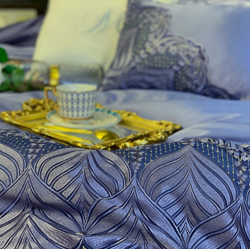 商品名称:缔缦家纺 2022新款重磅真丝棉系列四件套-艾琳娜 紫灰色
