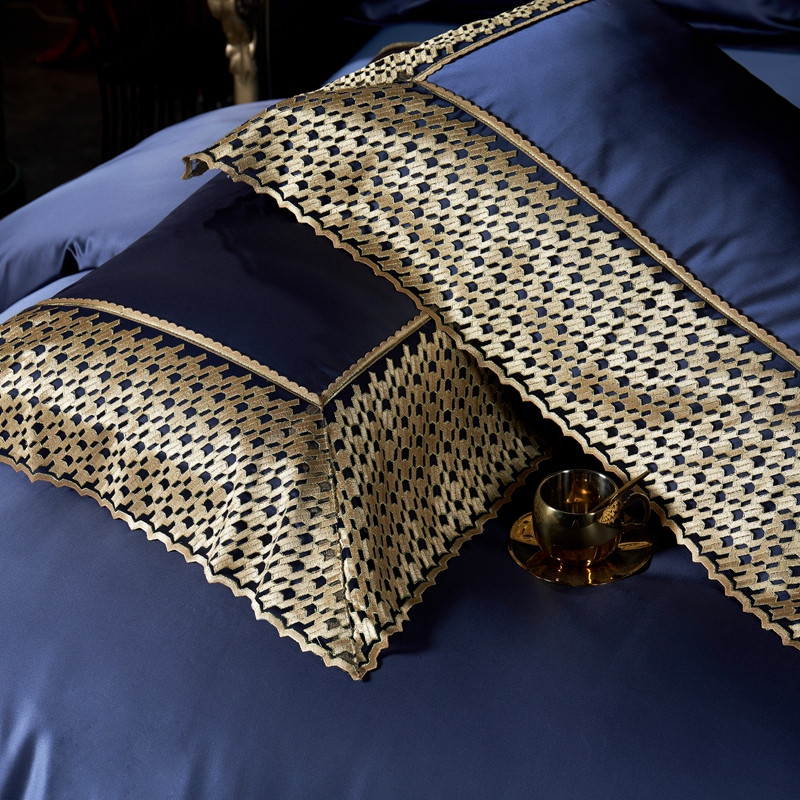 当前位置: 91家纺网 > 商品网购 > 床品套件 > 四件套 > 长绒棉四件套 > 缔缦家纺 2022新款重磅真丝棉系列四件套-幻影 深蓝