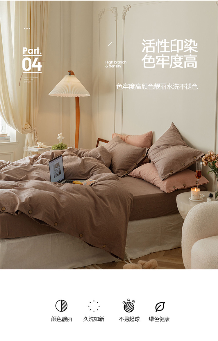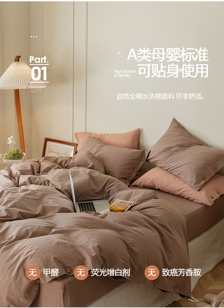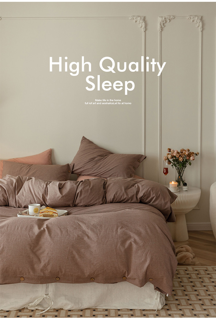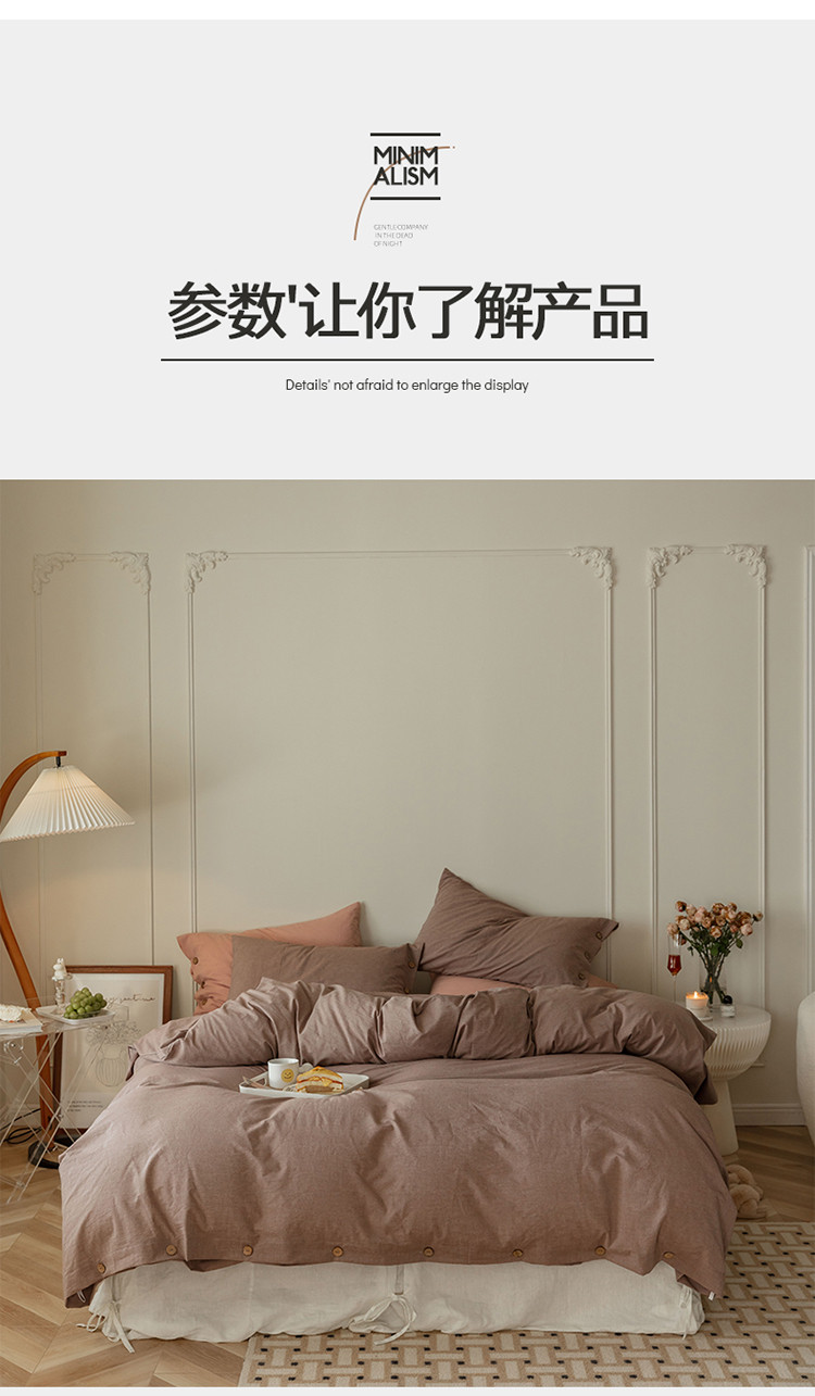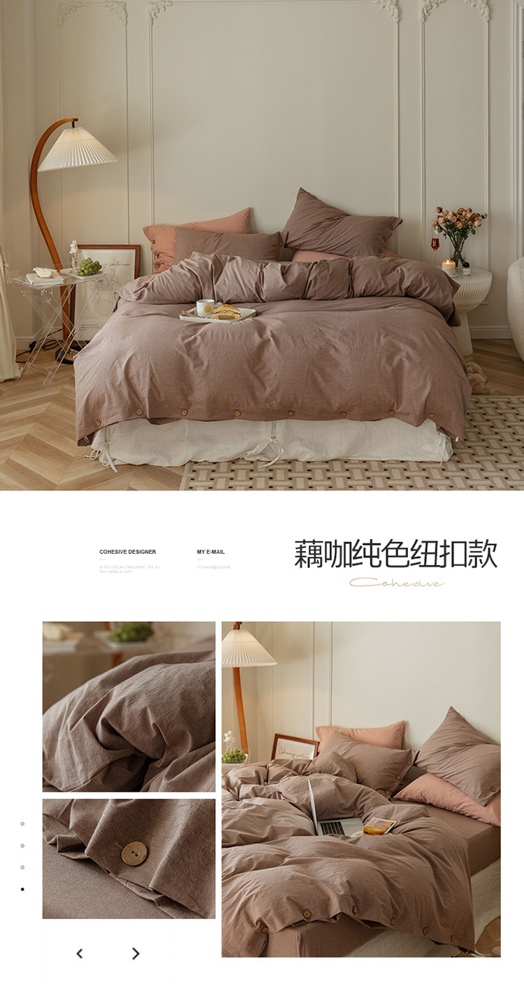 当前位置: 91家纺网 > 商品网购 > 床品套件 > 四件套 > 水洗棉四件套 > 寐眠 22年A类水洗棉全棉纽扣款四件套 藕咖纯色纽扣款