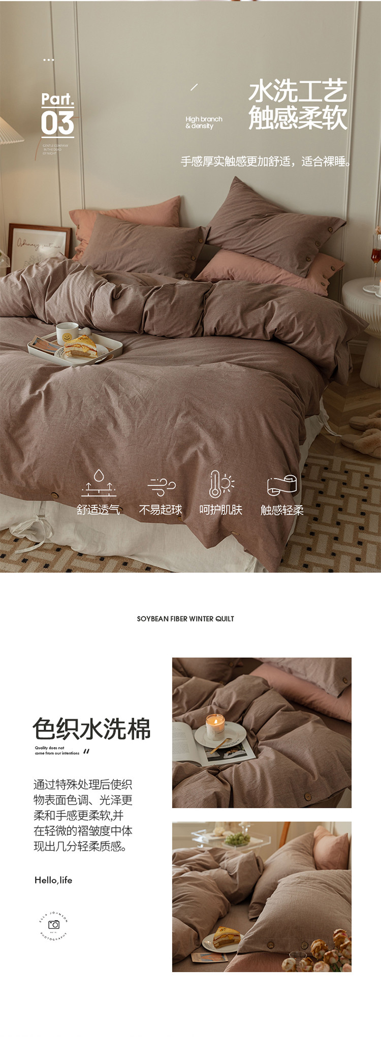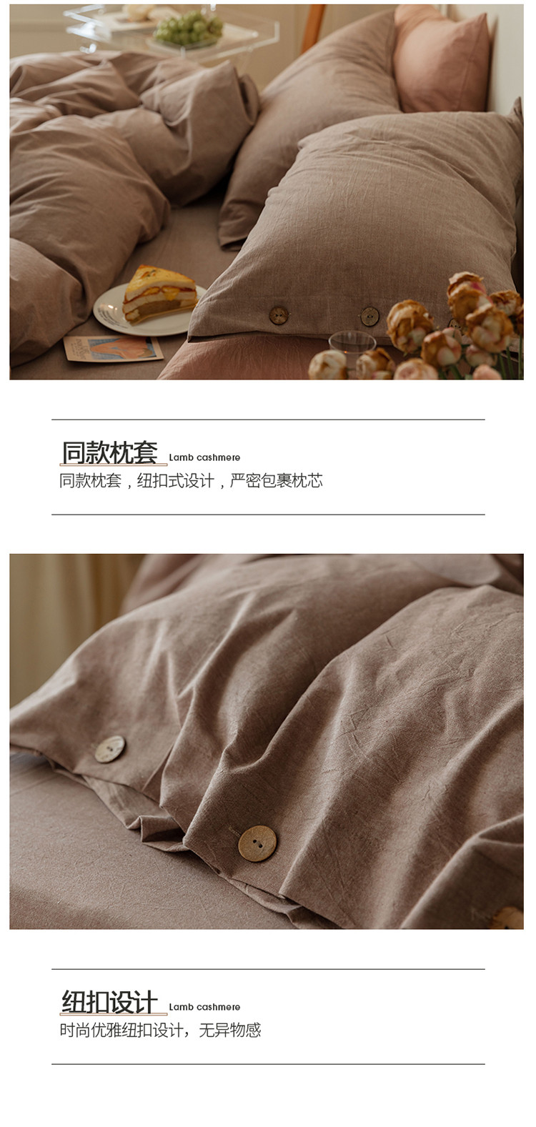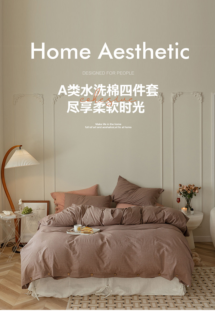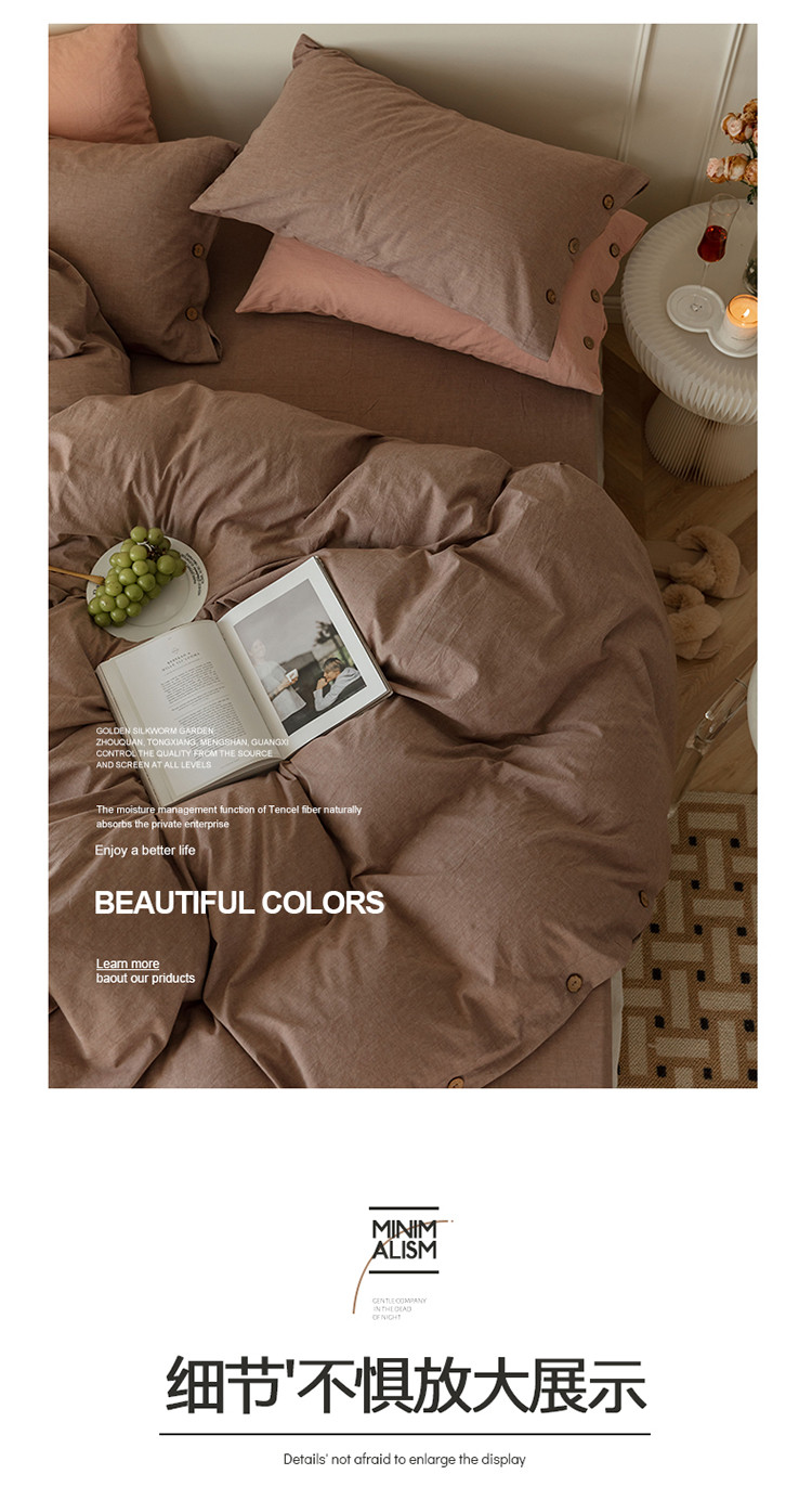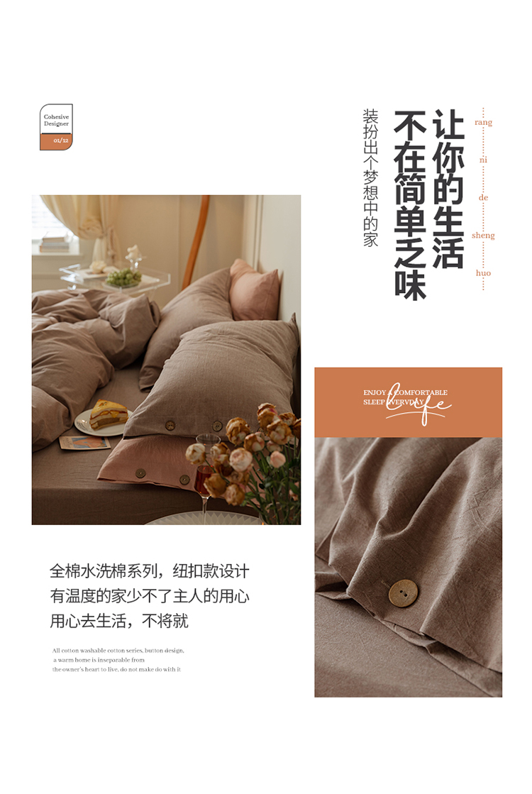 当前位置: 91家纺网 > 商品网购 > 床品套件 > 四件套 > 水洗棉四件套 > 寐眠 22年A类水洗棉全棉纽扣款四件套 藕咖纯色纽扣款