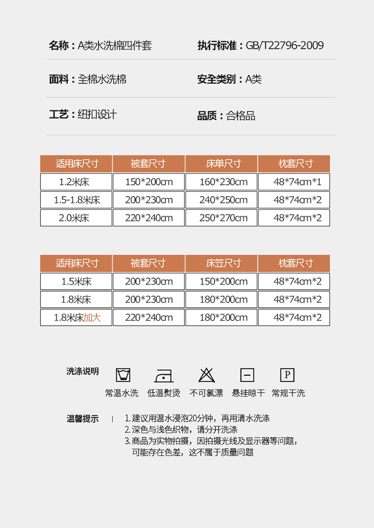 1.8m床单款四件套 | ¥165.00 |