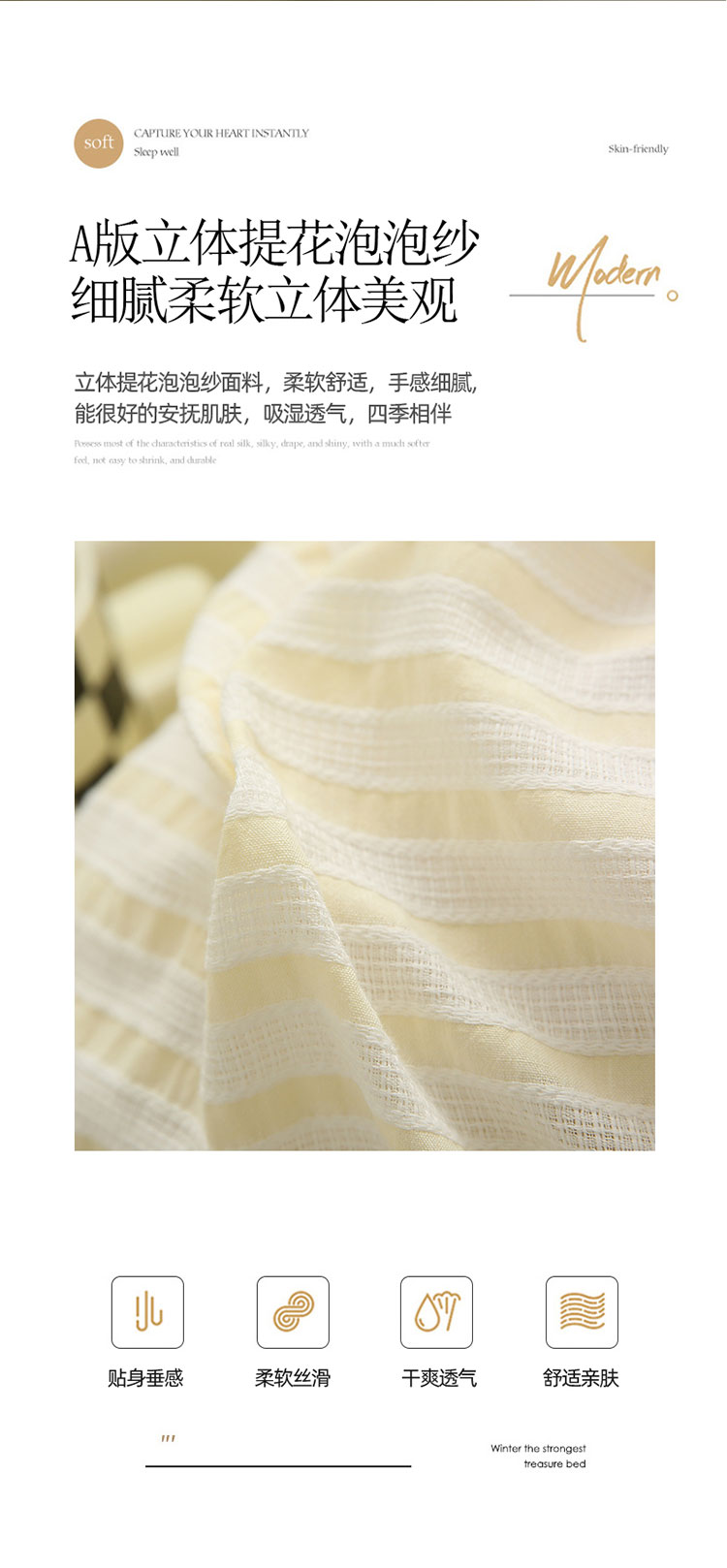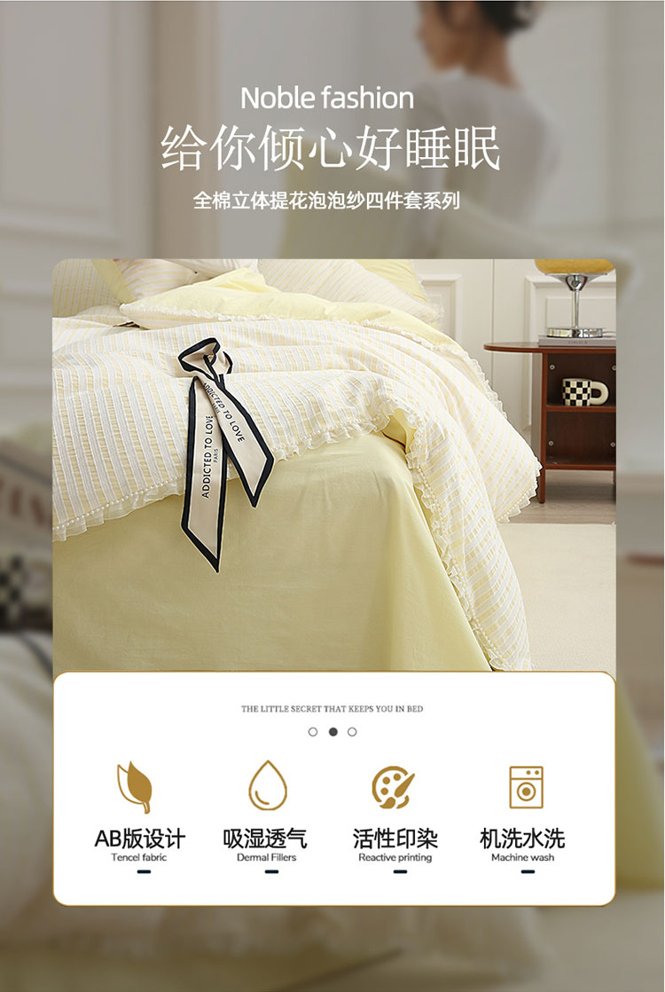 商品名称:玛奇朵2022新款全棉立体提花泡泡纱四件套-艾丽系列艾丽-黄