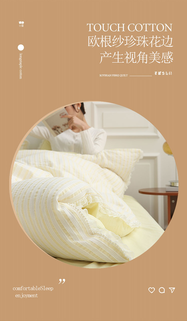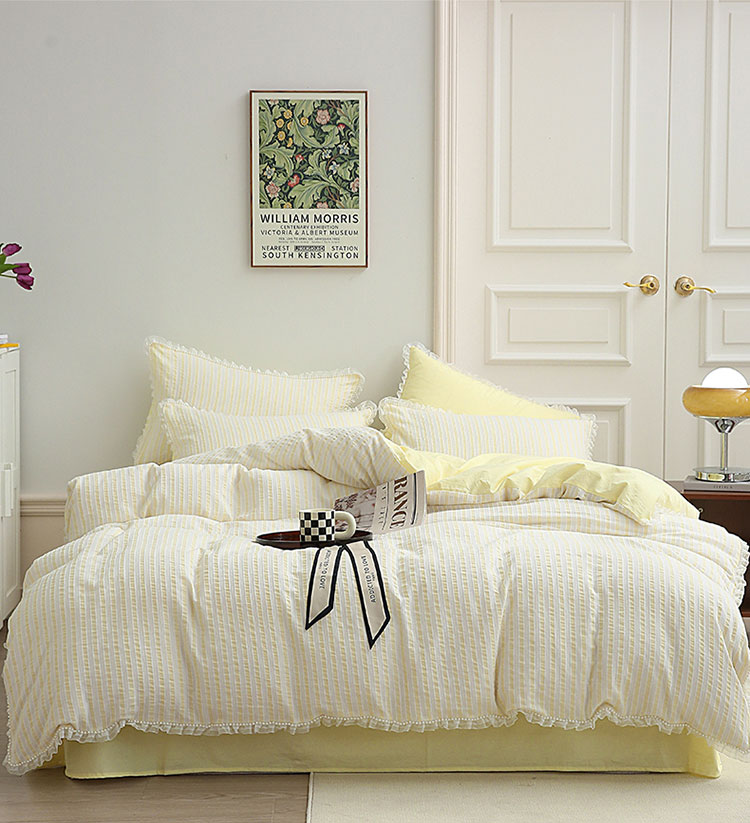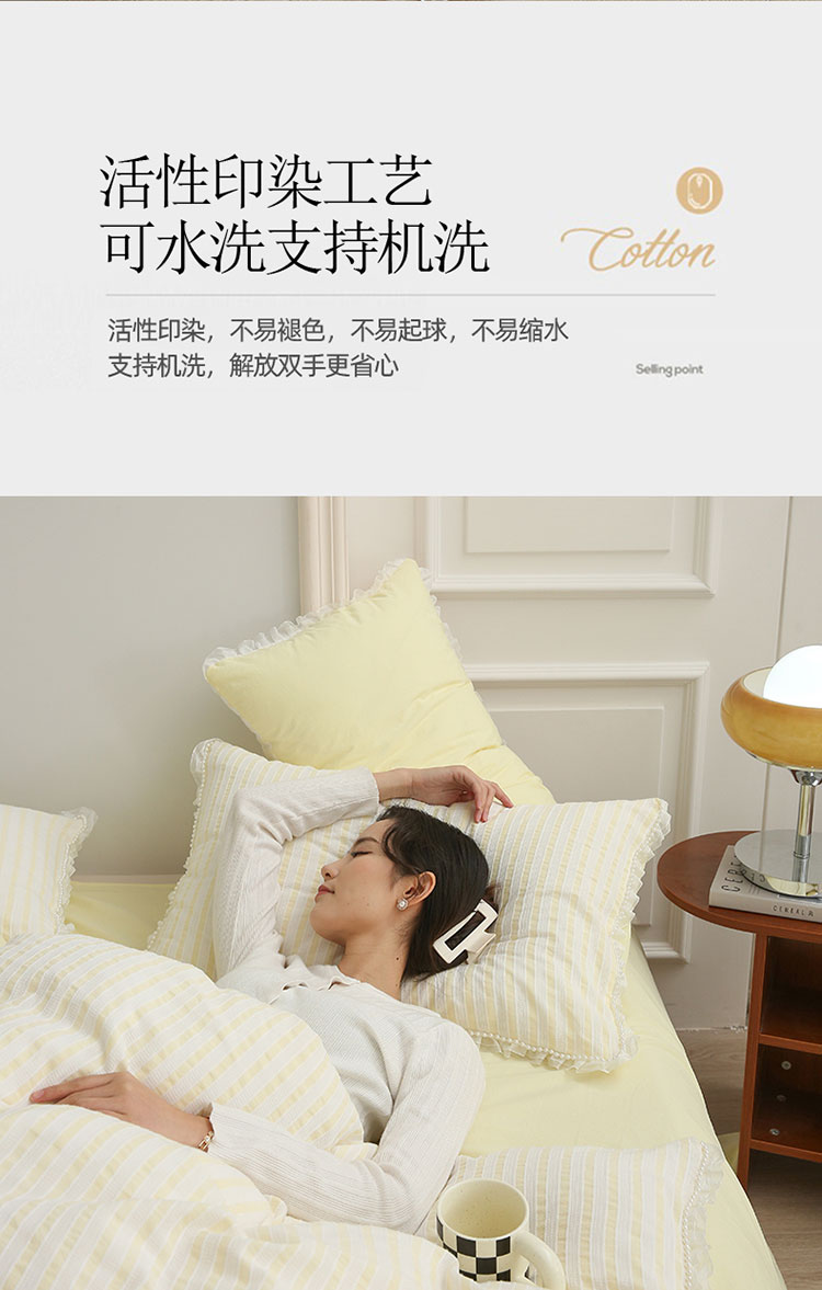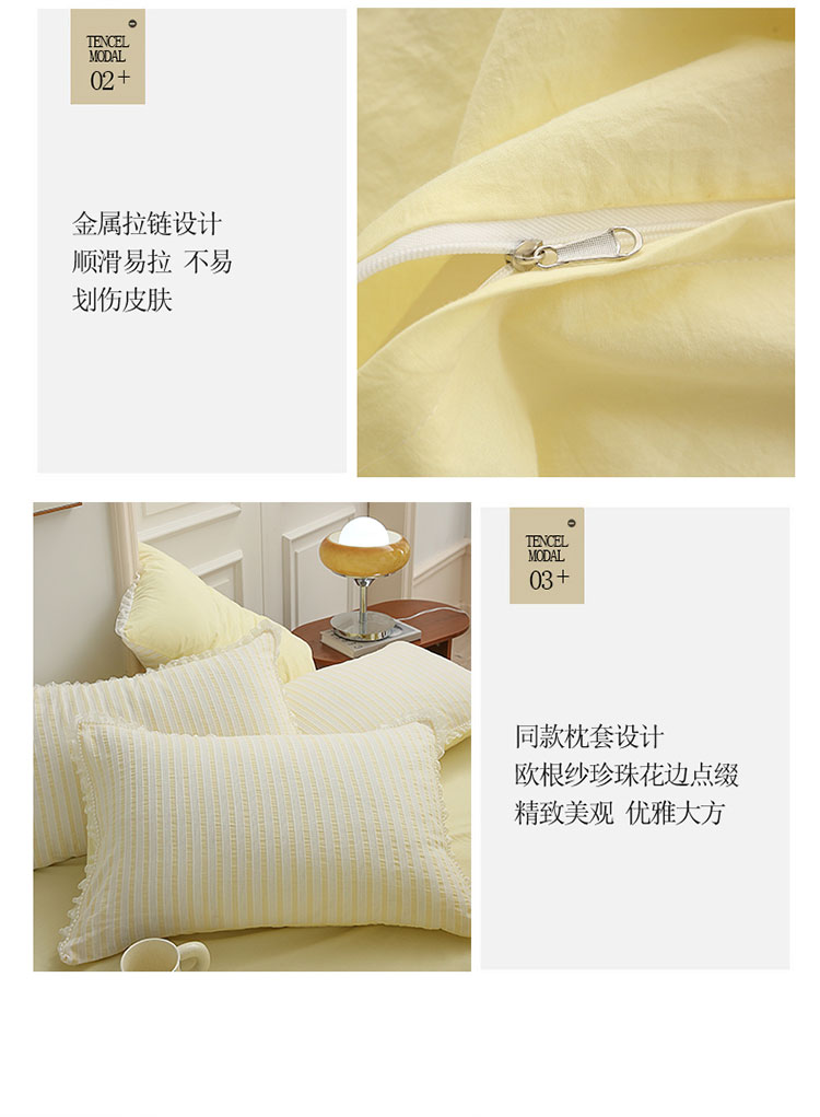 玛奇朵2022新款全棉立体提花泡泡纱四件套-艾丽系列艾丽-黄