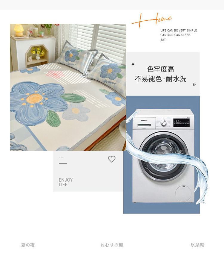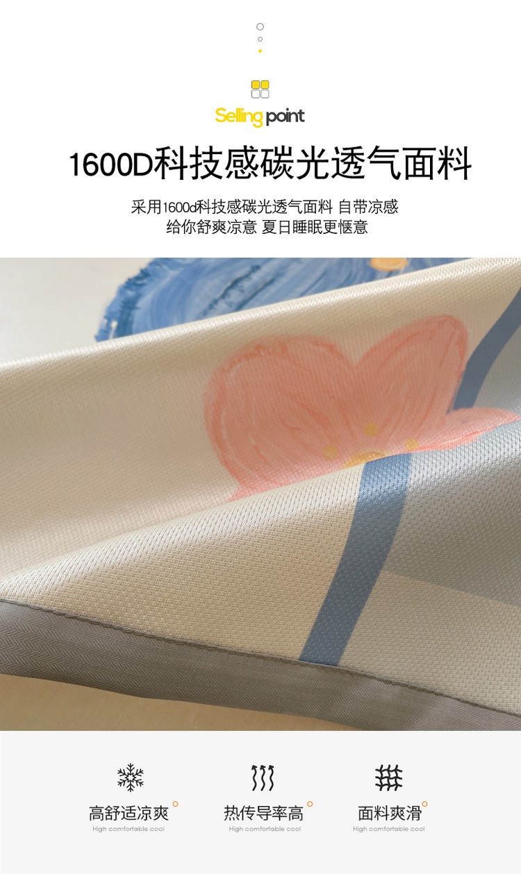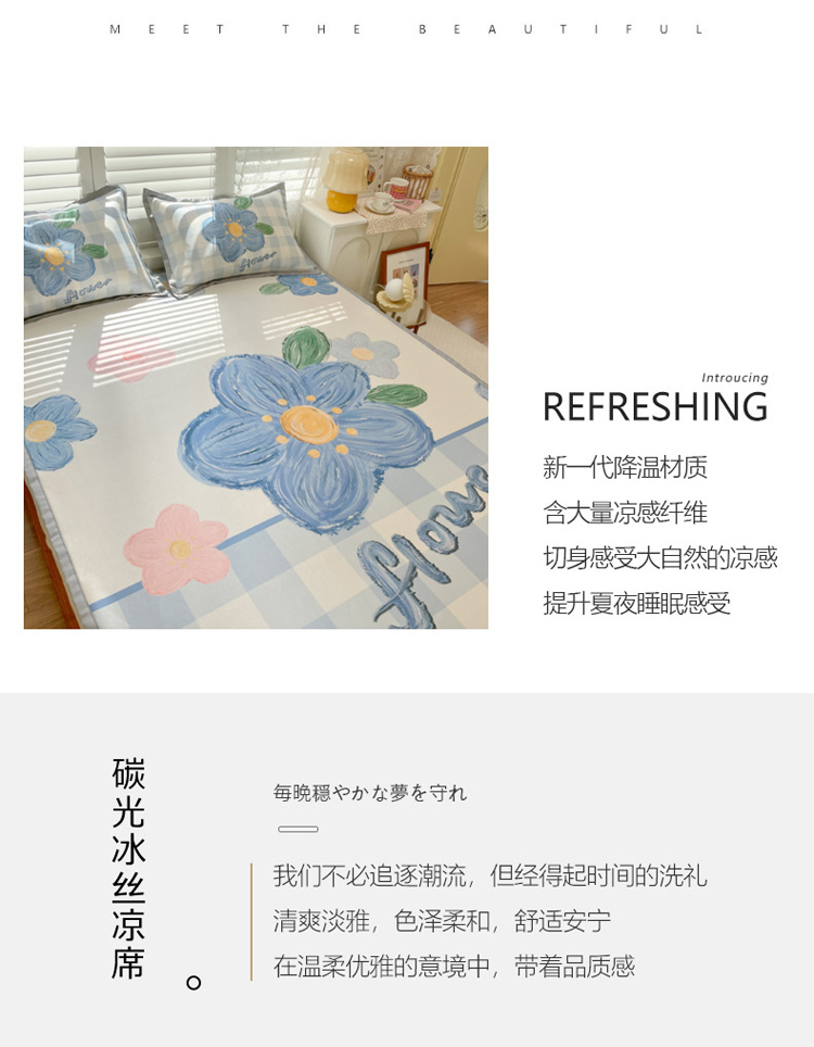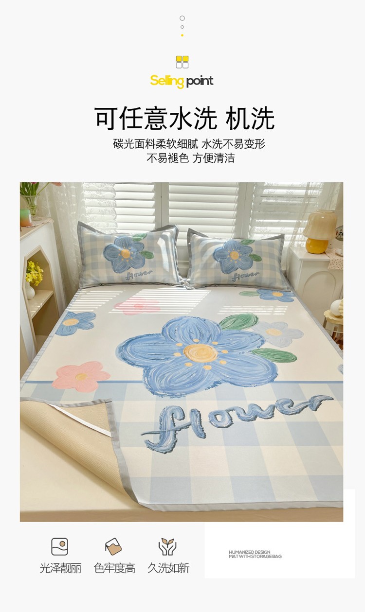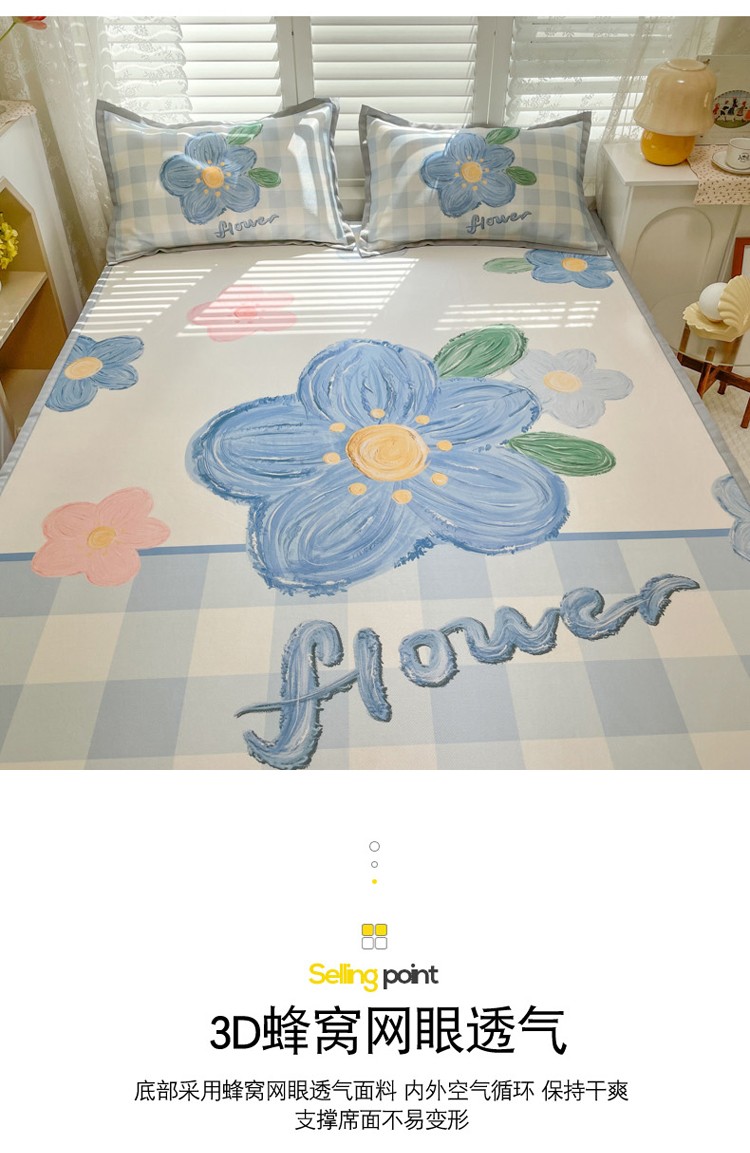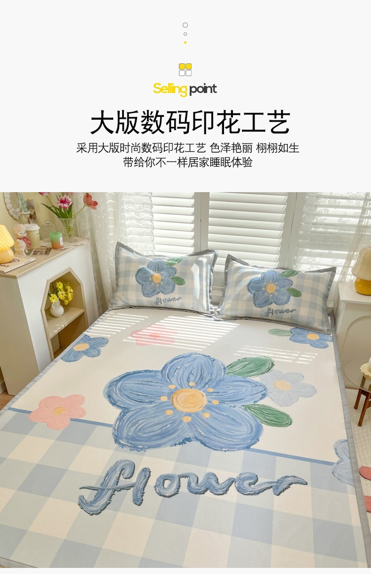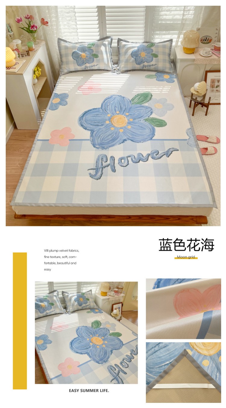 商品名称:柒月家居2022大版碳光冰丝凉席 蓝色花海