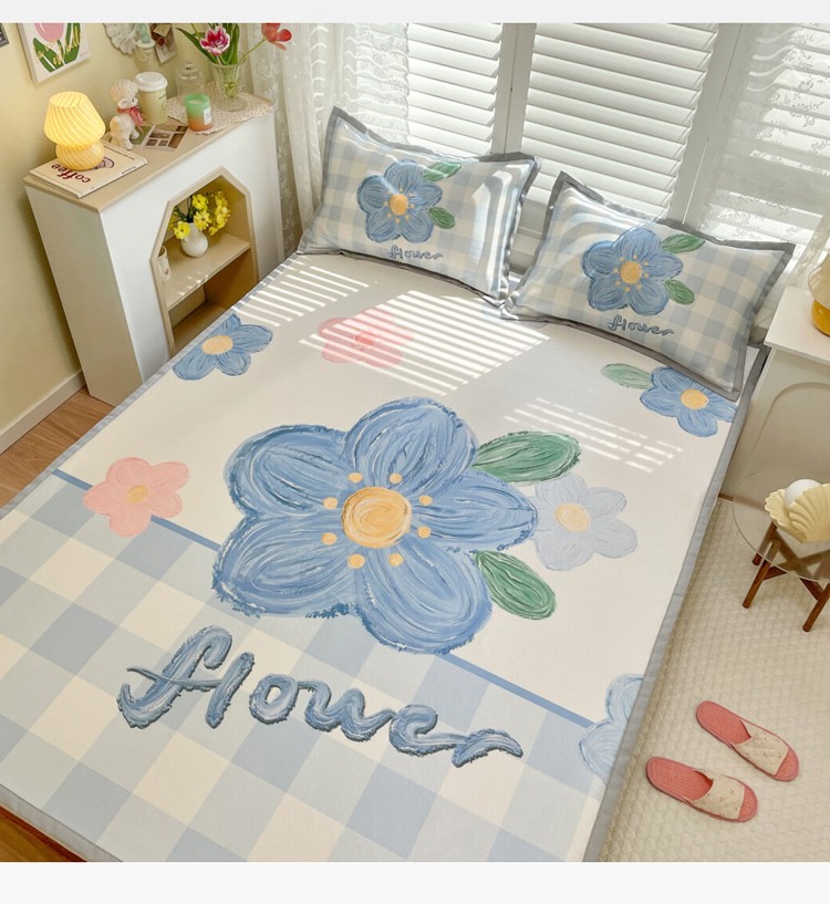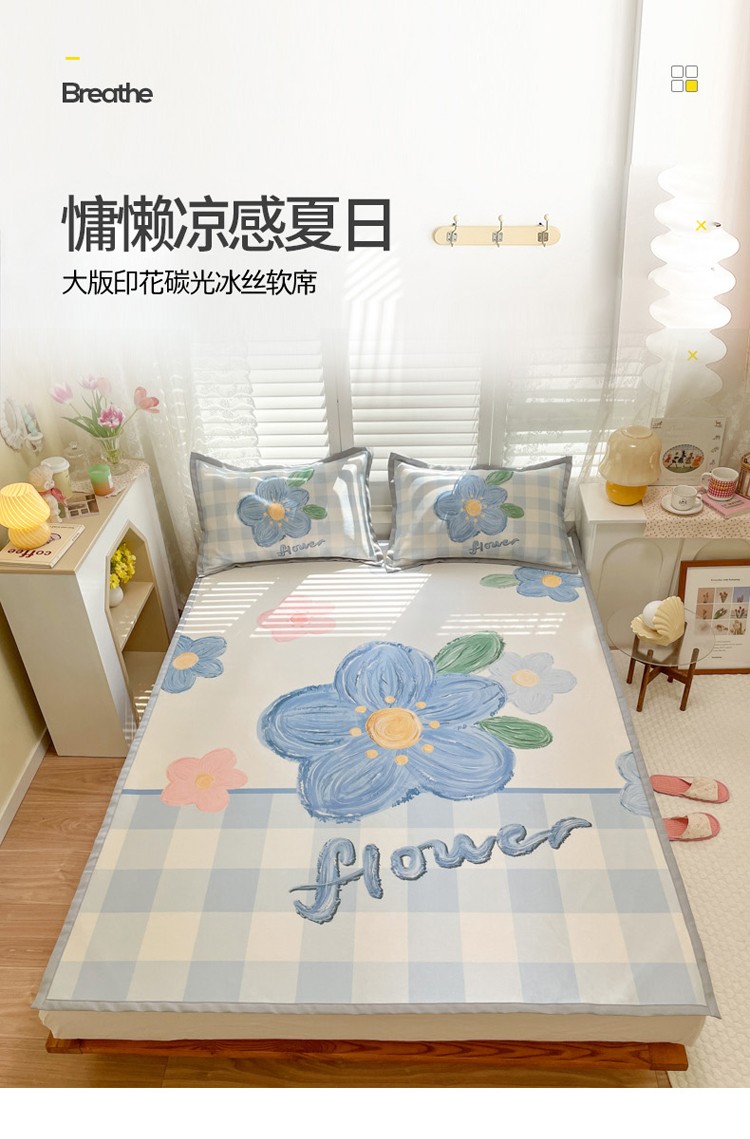 柒月家居2022大版碳光冰丝凉席 蓝色花海