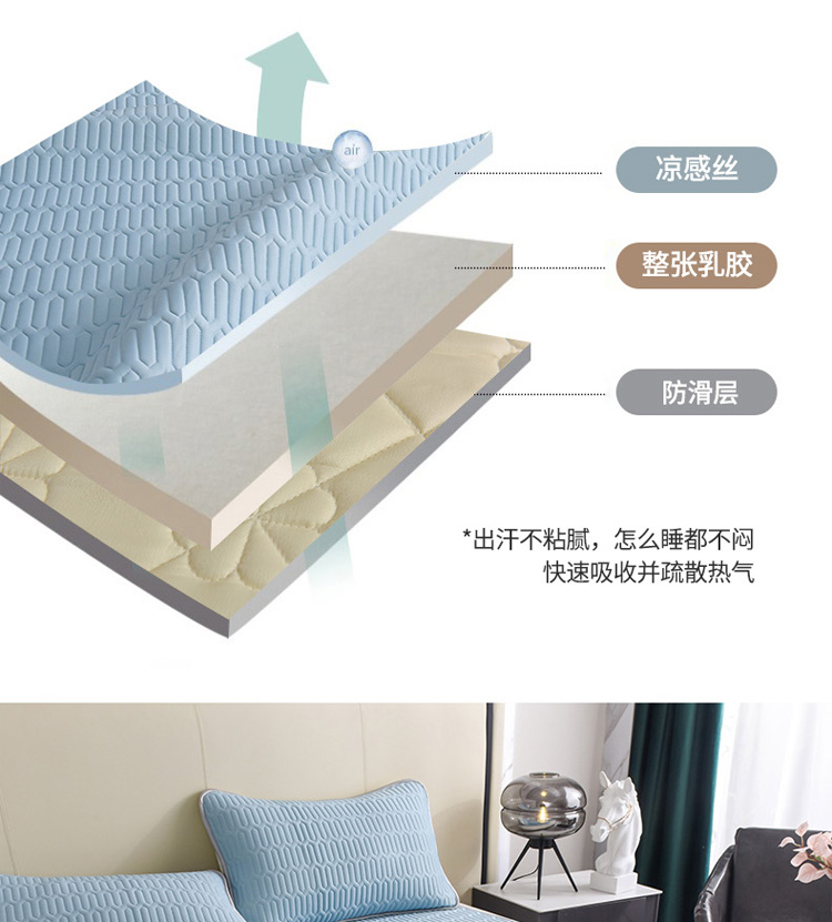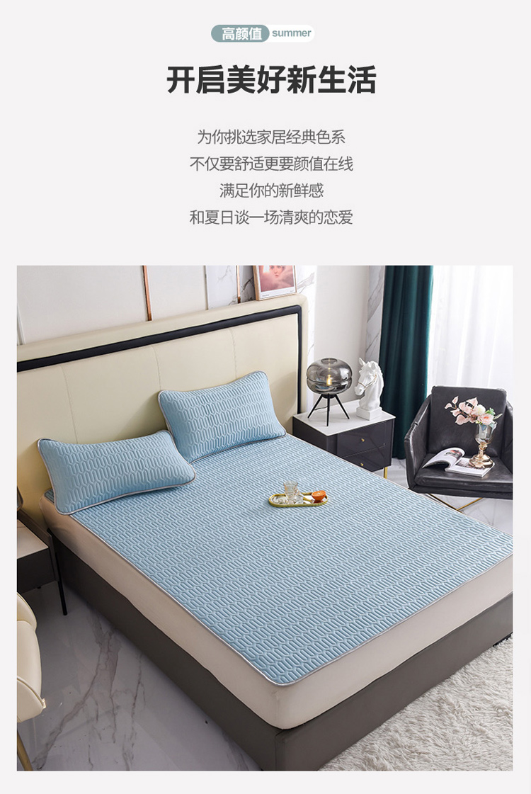 商品名称:寐居 2022新款纯色凉感丝乳胶凉席三件套 天空蓝