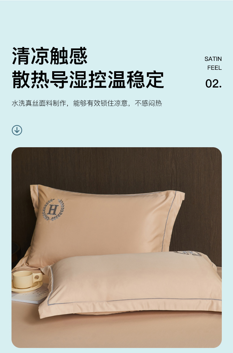 商品名称:水洗真丝枕套单人枕套刺绣加密枕芯学生宿舍家用48x74一对装 夏月-奶茶咖(一只)