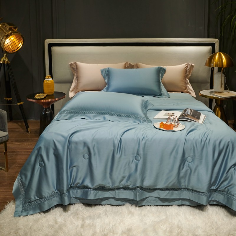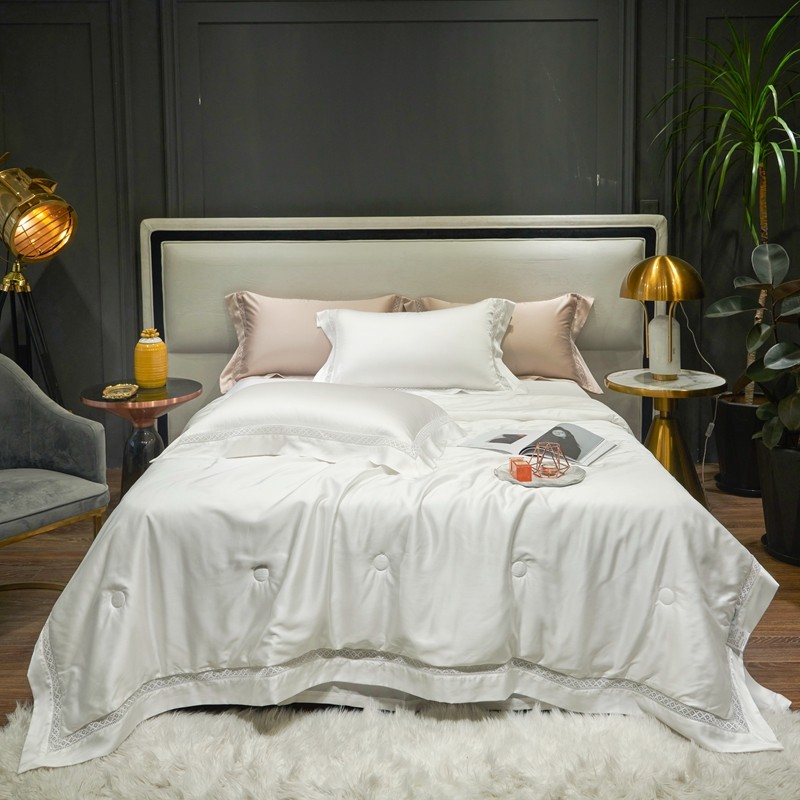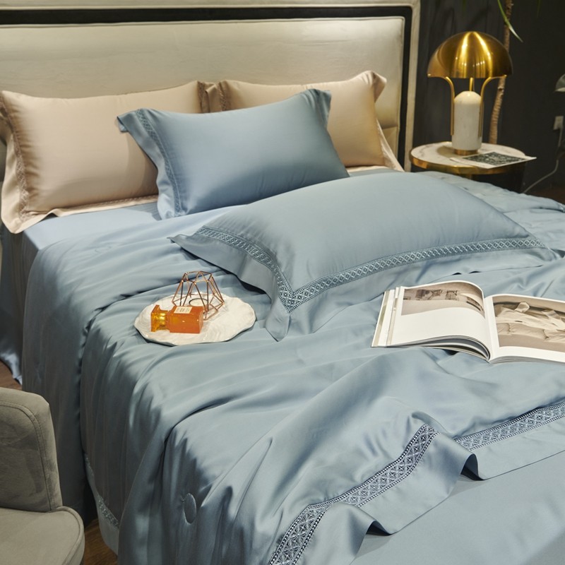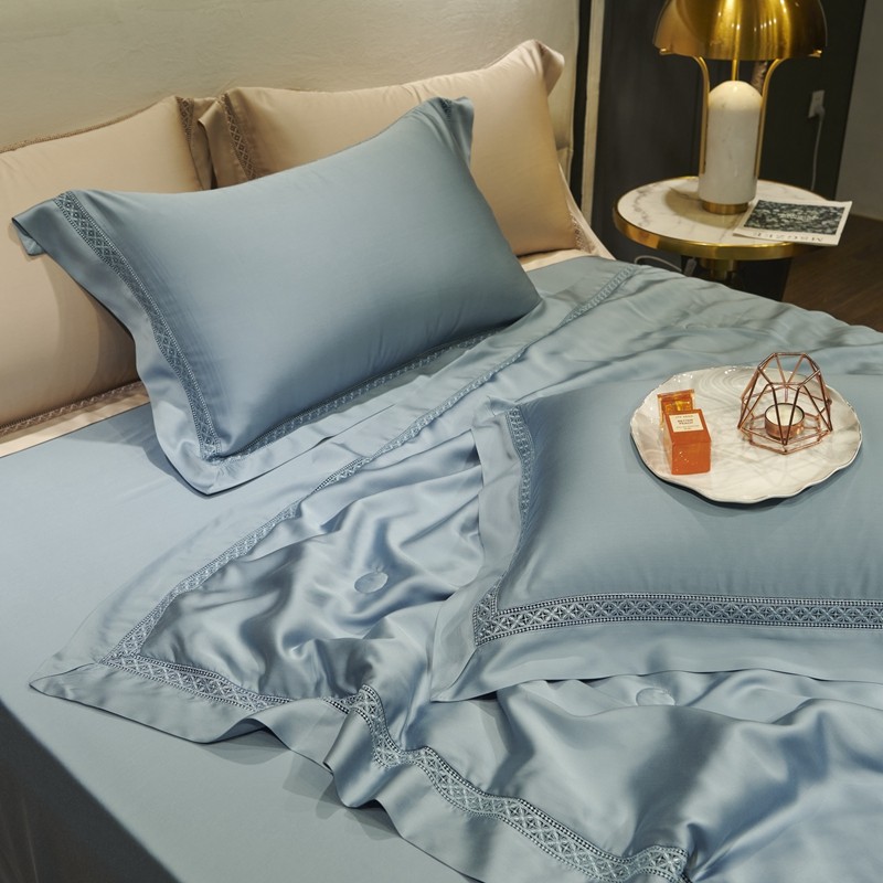 (总)2023 LF60支纯色镂空边大豆纤维天丝夏被四件套