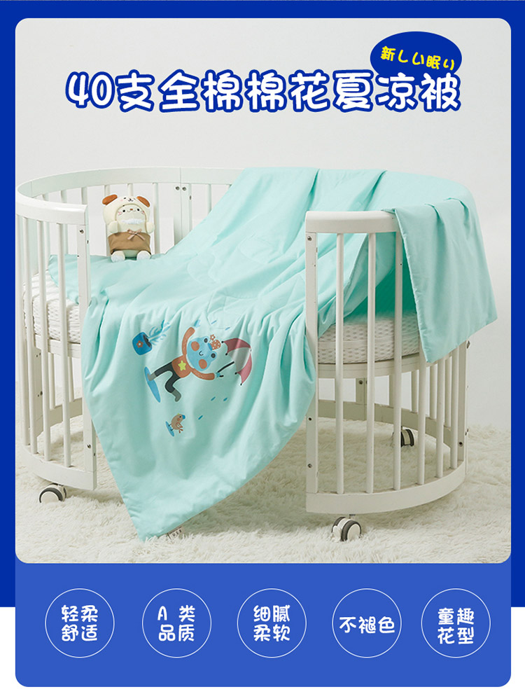 喜多兔 2022新款40支全棉夏被-彩虹 湖蓝色青蛙欢欢