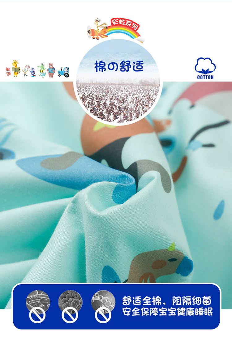 (总)2025新款快乐多巴胺纯棉夏被,粉色彩虹小兔兔,粉色彩虹小猪猪,黄色彩虹小狮子,黄色彩虹小鸭子,蓝色彩虹小狗,蓝色彩虹小象,绿色彩虹小鳄鱼,绿色彩虹小恐龙
