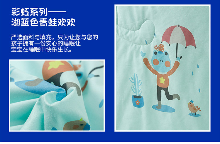 商品名称:喜多兔 2022新款40支全棉夏被-彩虹 湖蓝色青蛙欢欢
