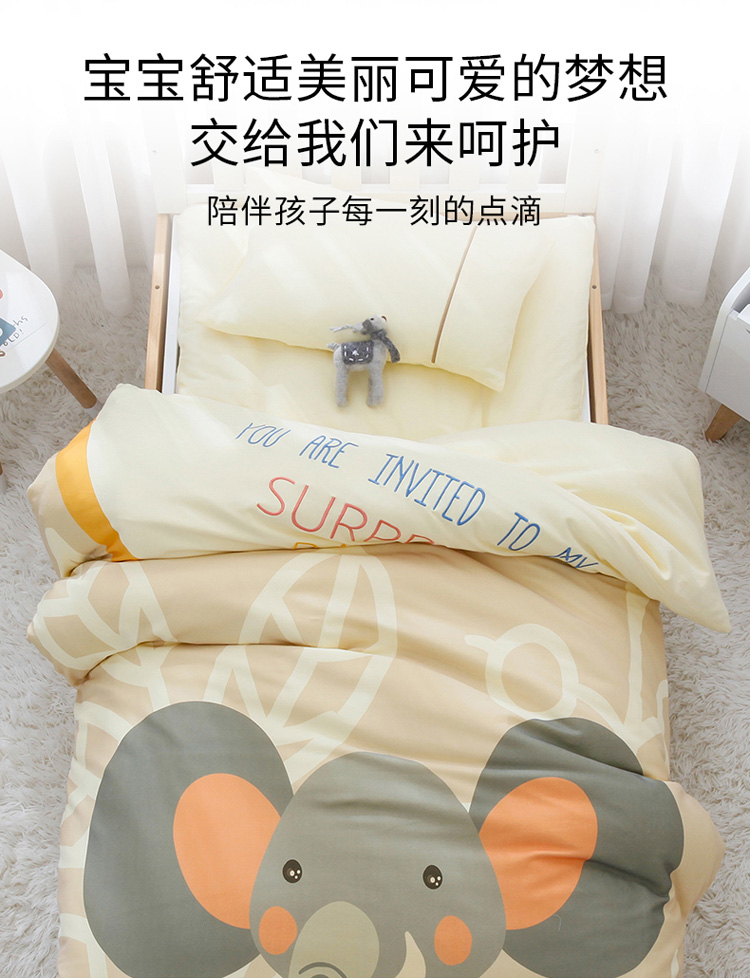 商品名称:喜多兔 2022新款全棉针织三件套床品套件-奇妙动物 黄色小象汤米