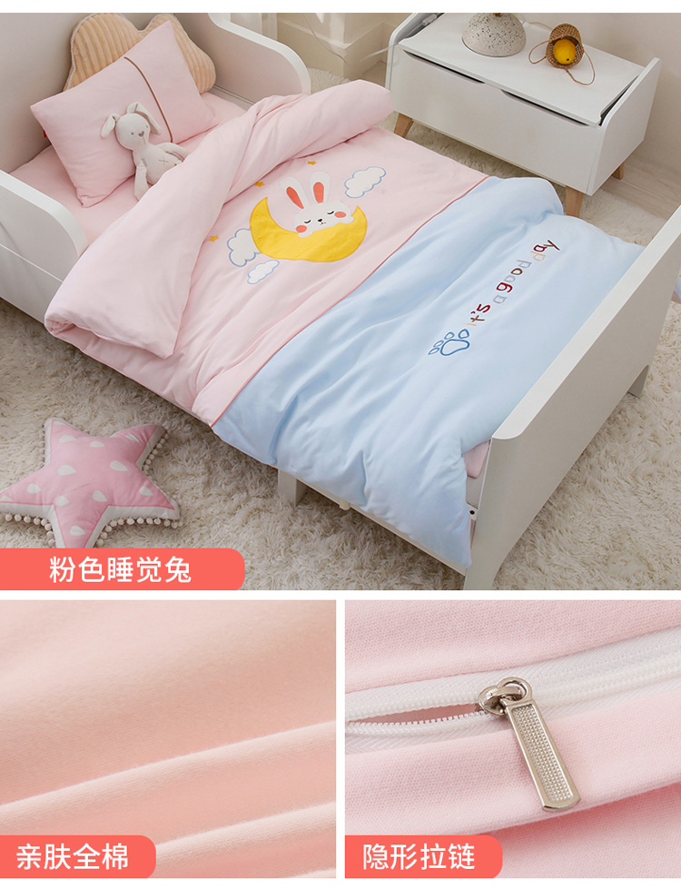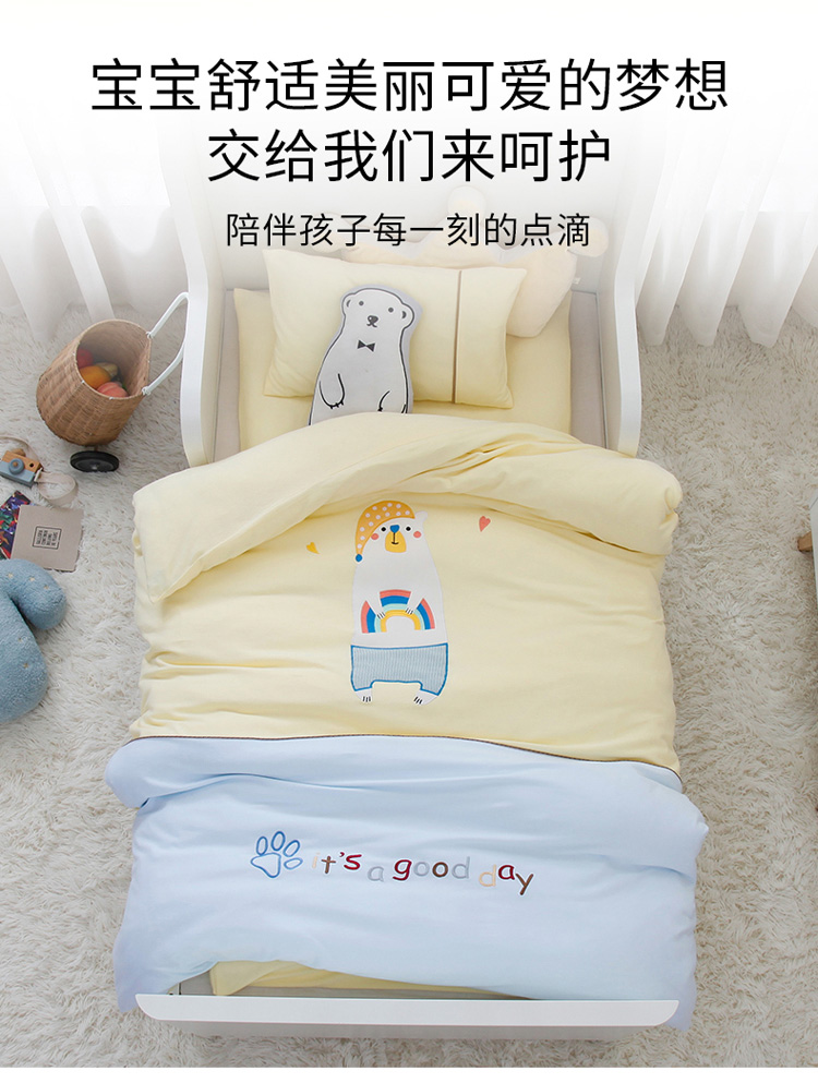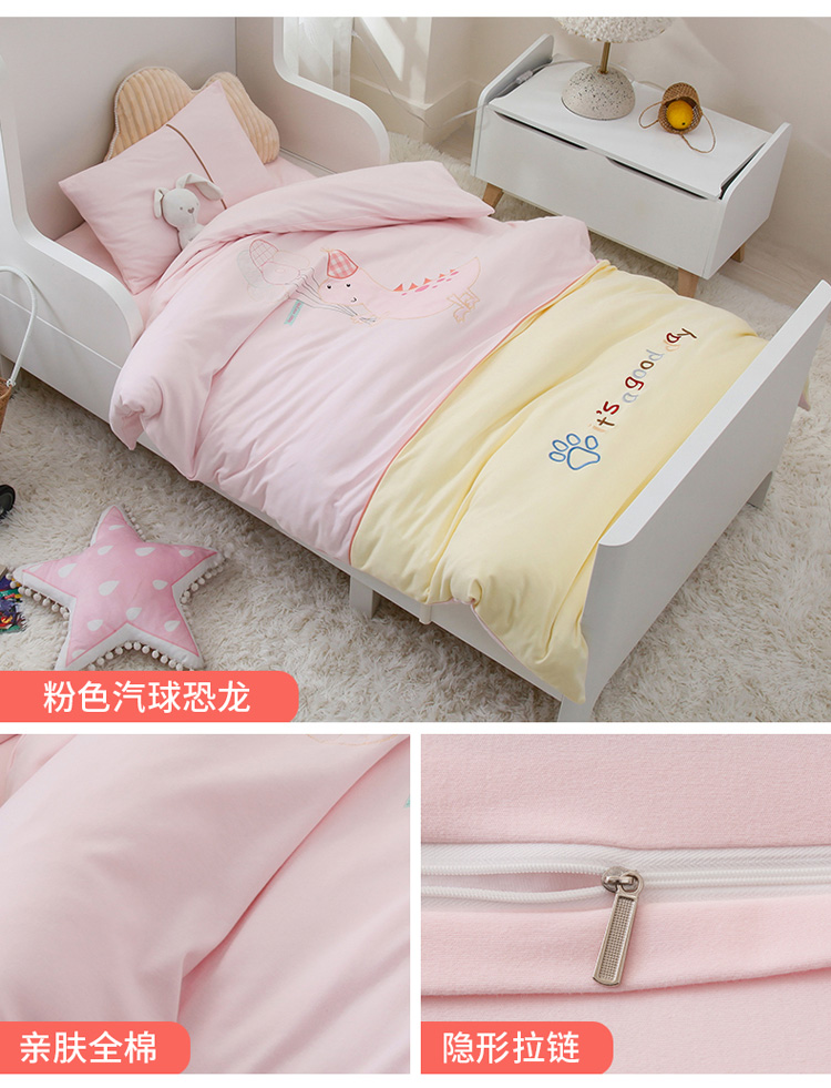 (总)喜多兔儿童家纺 2025新款小梦幻纯棉针织棉紧密纺绣花幼儿园被子三件套,组合图仅供展示,粉色梦幻小狗狗,粉色梦幻小兔,黄色梦幻小熊猫,黄色梦幻小鸭子,蓝色梦幻小狮子,蓝色梦幻小熊,绿色梦幻魔法小猫咪,绿色梦幻小恐龙