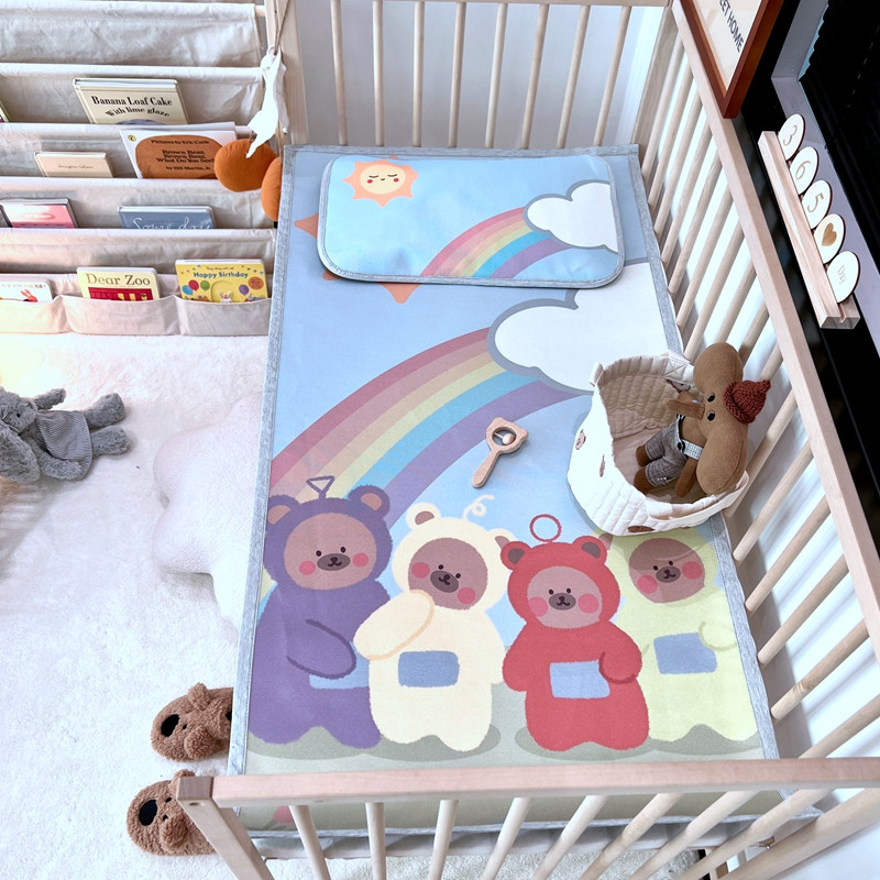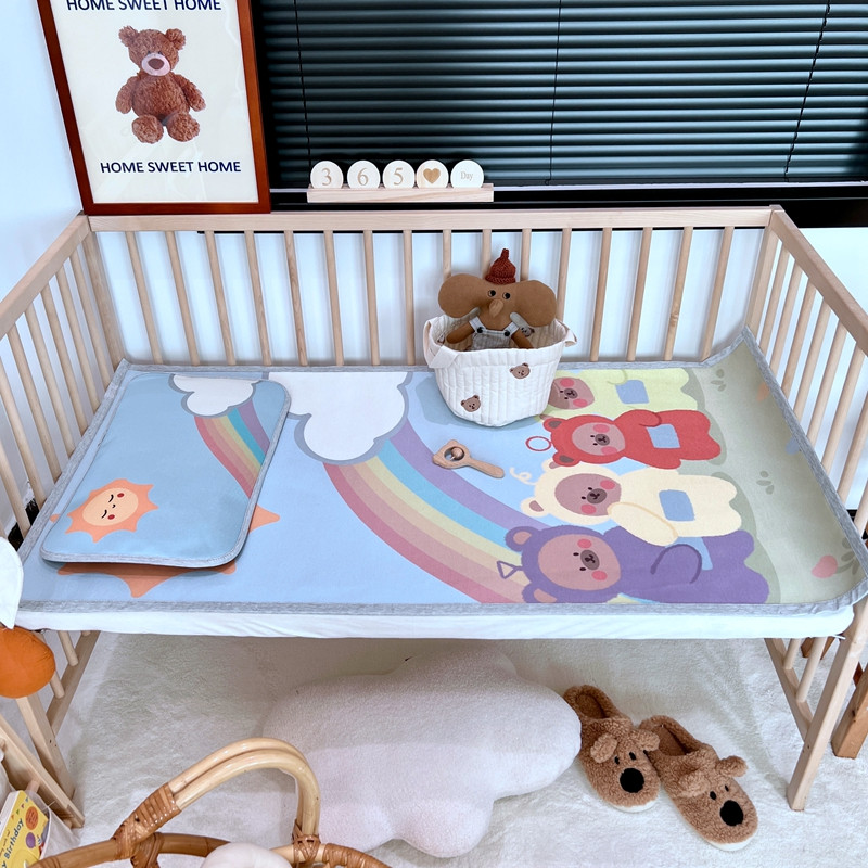 (总)橘滋 2025夏日新款高端A类原创设计婴儿童趣卡通数码印花冰丝席凉席-床席床笠,大眼熊仔,叠叠乐园,蝴蝶结兔兔,欢乐曲奇,木马小熊,太空冒险,熊猫胖达