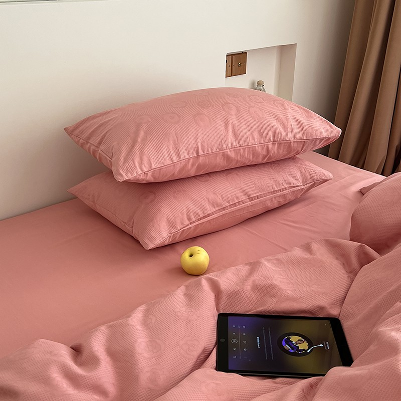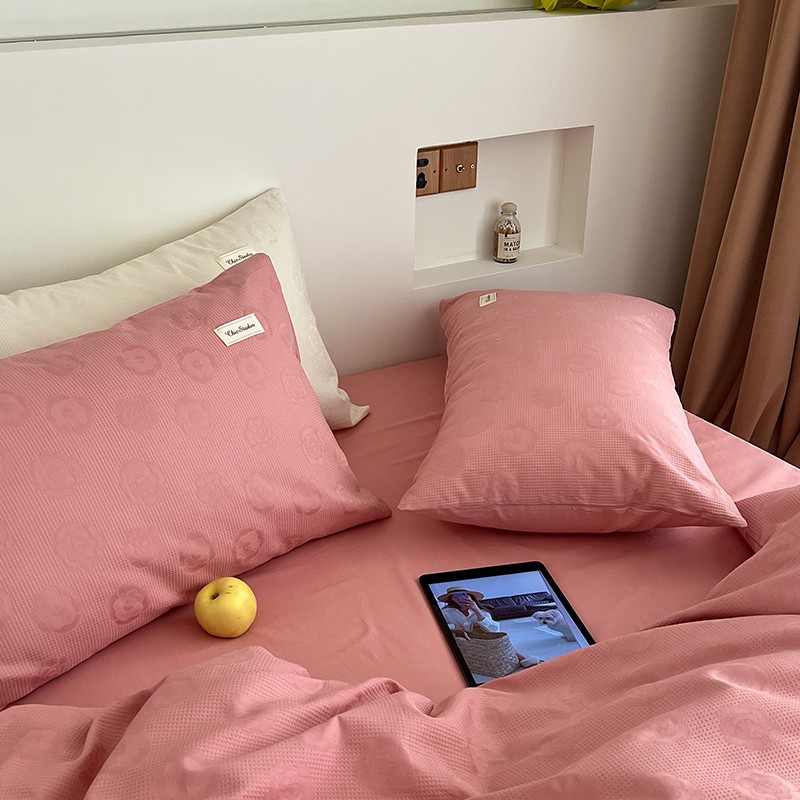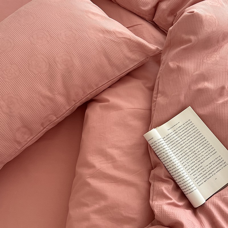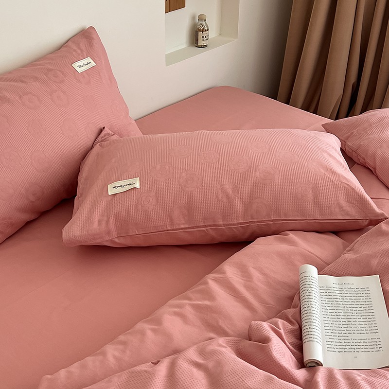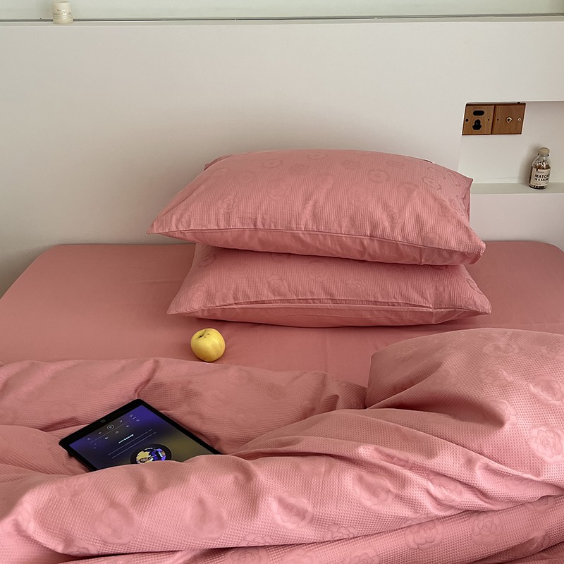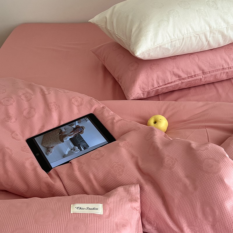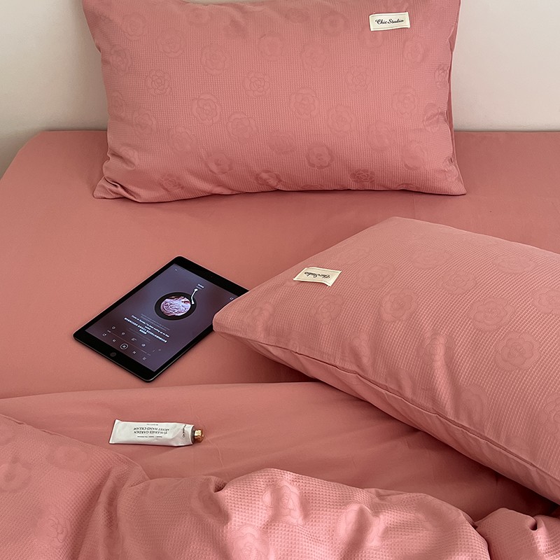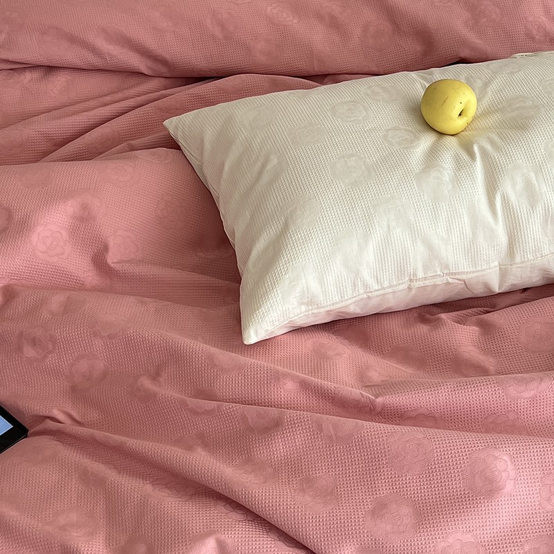 昔可 2022新款60支水洗棉华夫格提花四件套拍法二 山茶粉