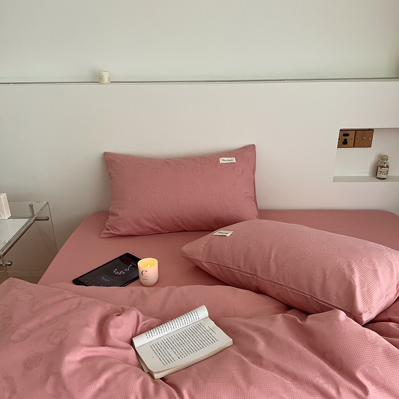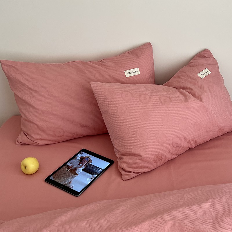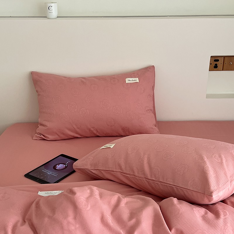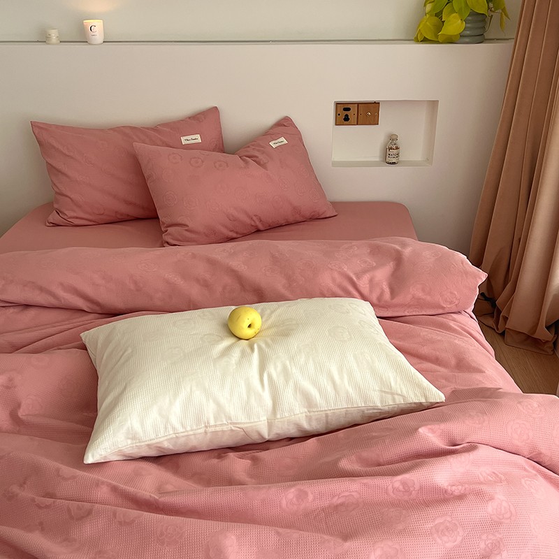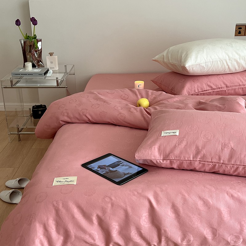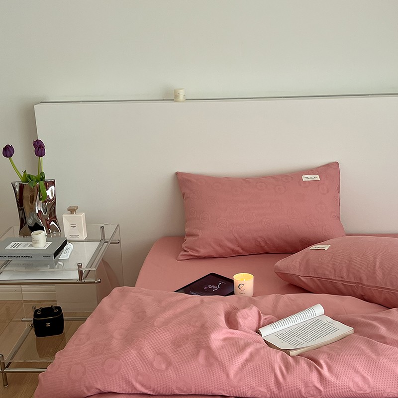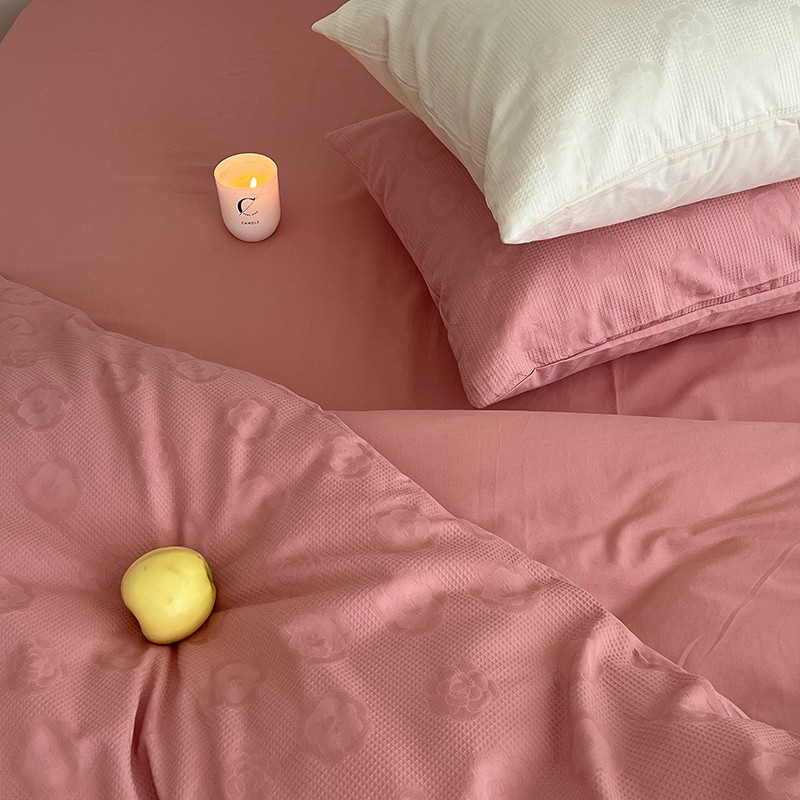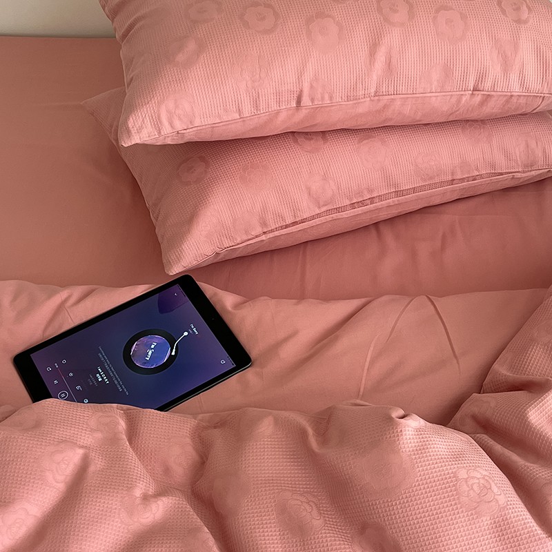 昔可 2022新款60支水洗棉华夫格提花四件套拍法二 山茶粉