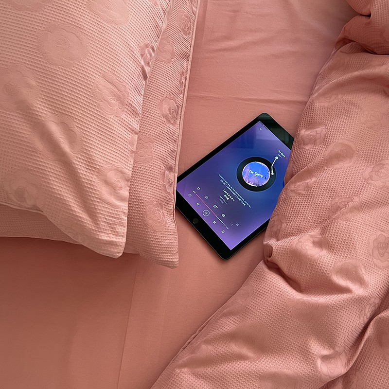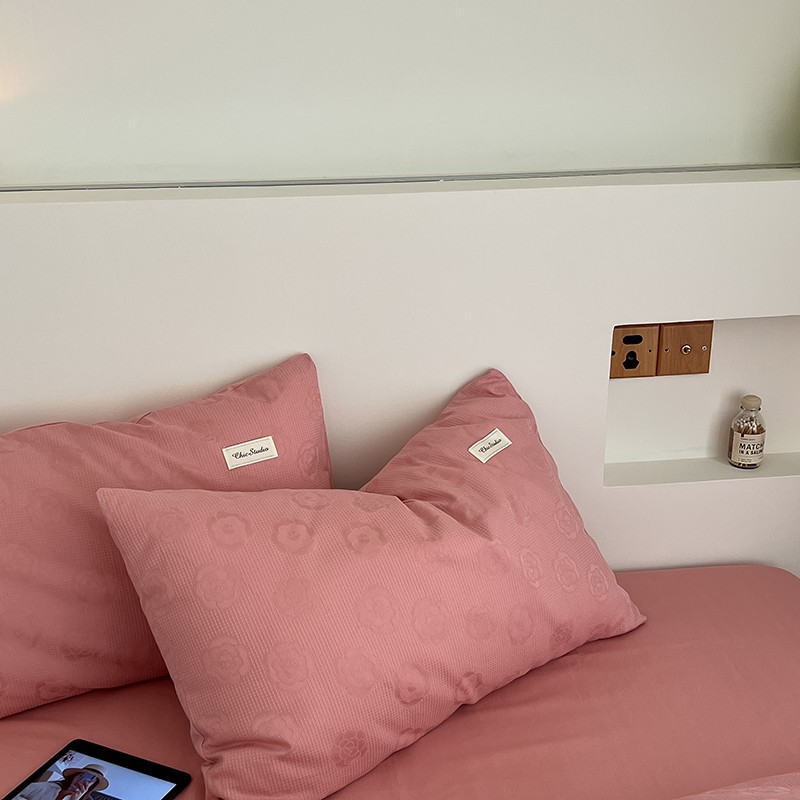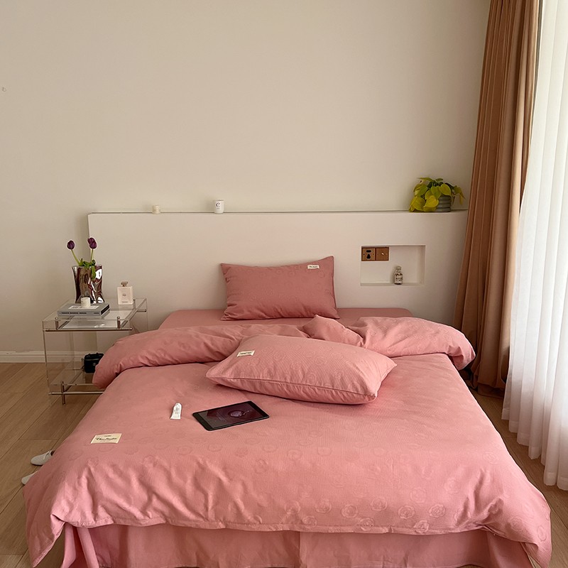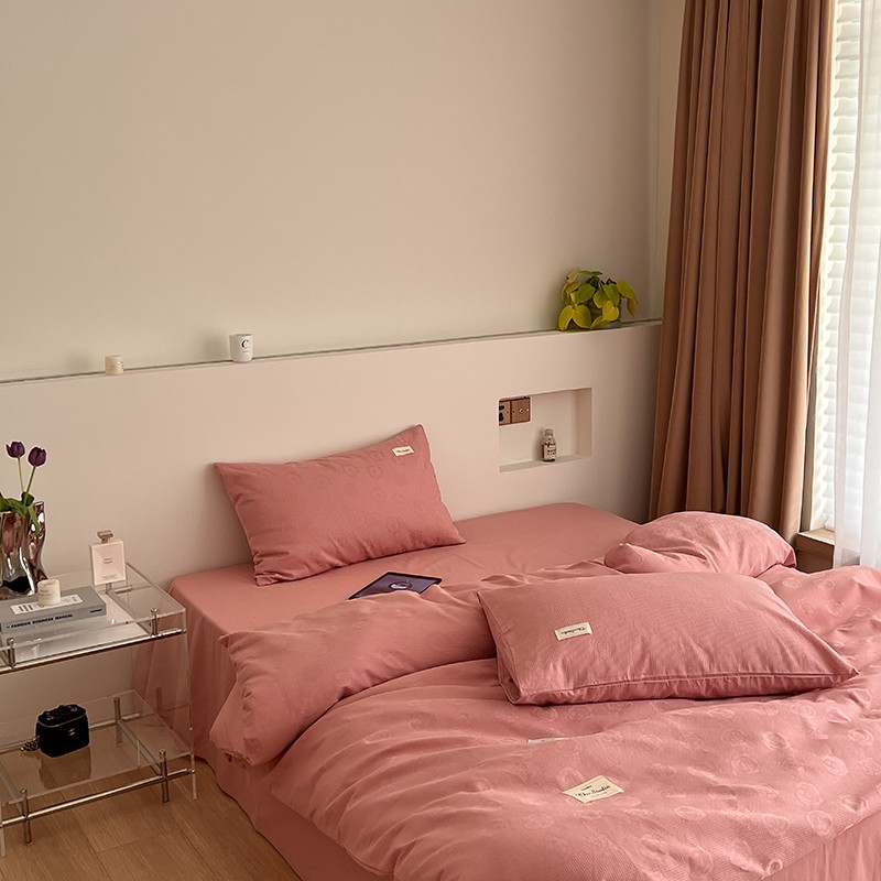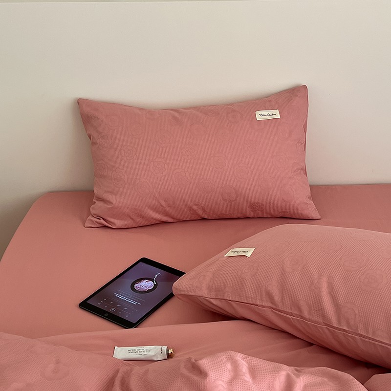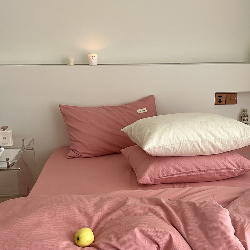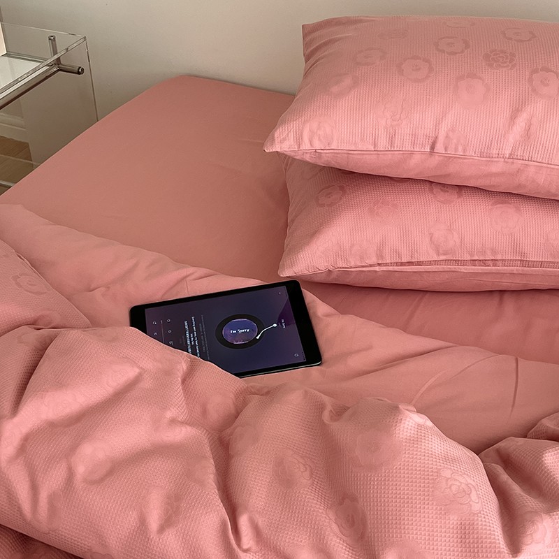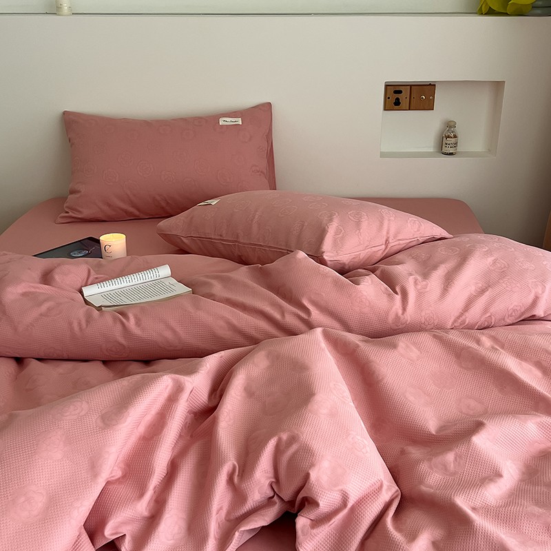 昔可 2022新款60支水洗棉华夫格提花四件套拍法二 山茶粉