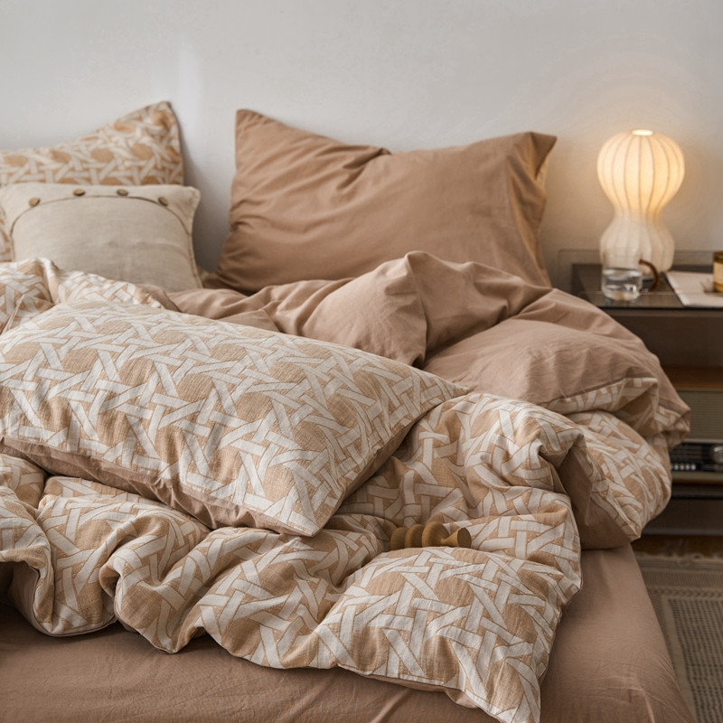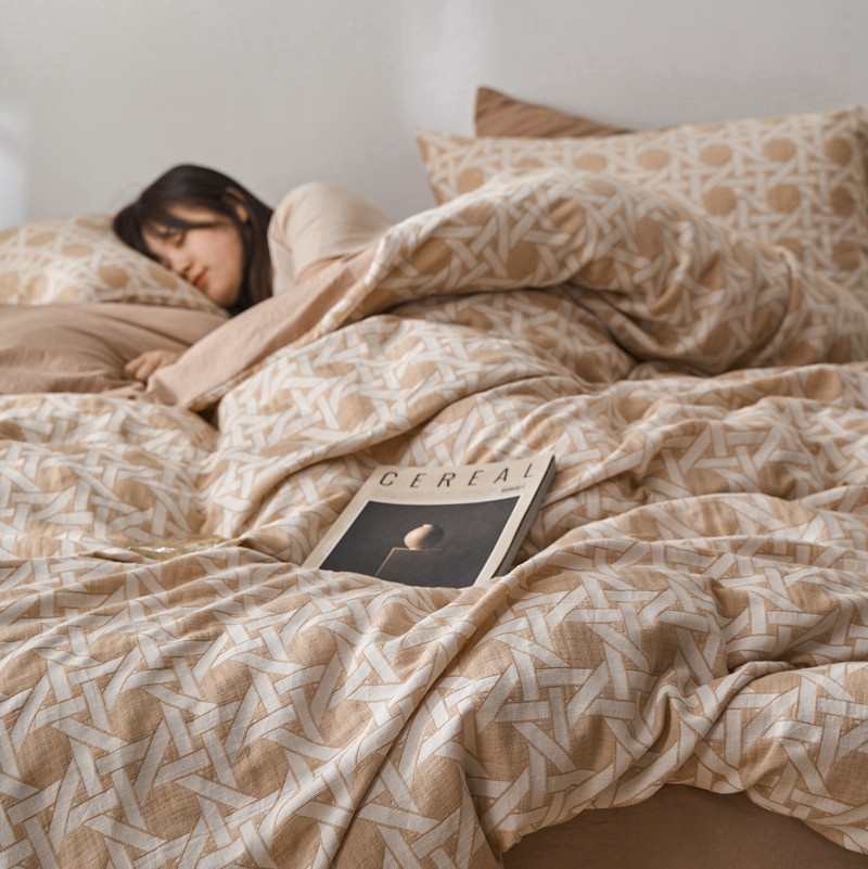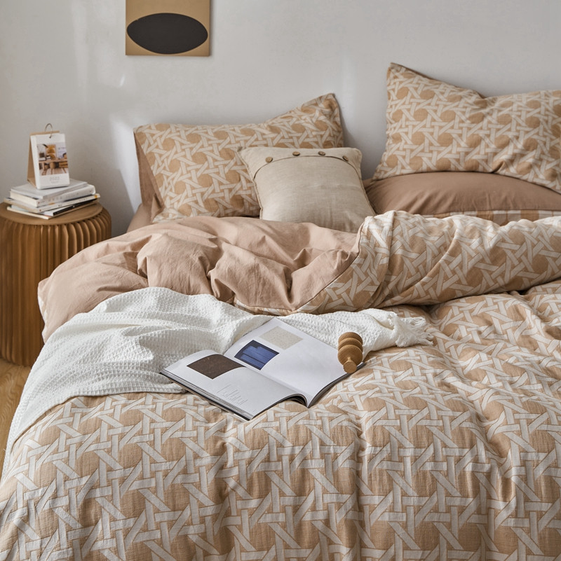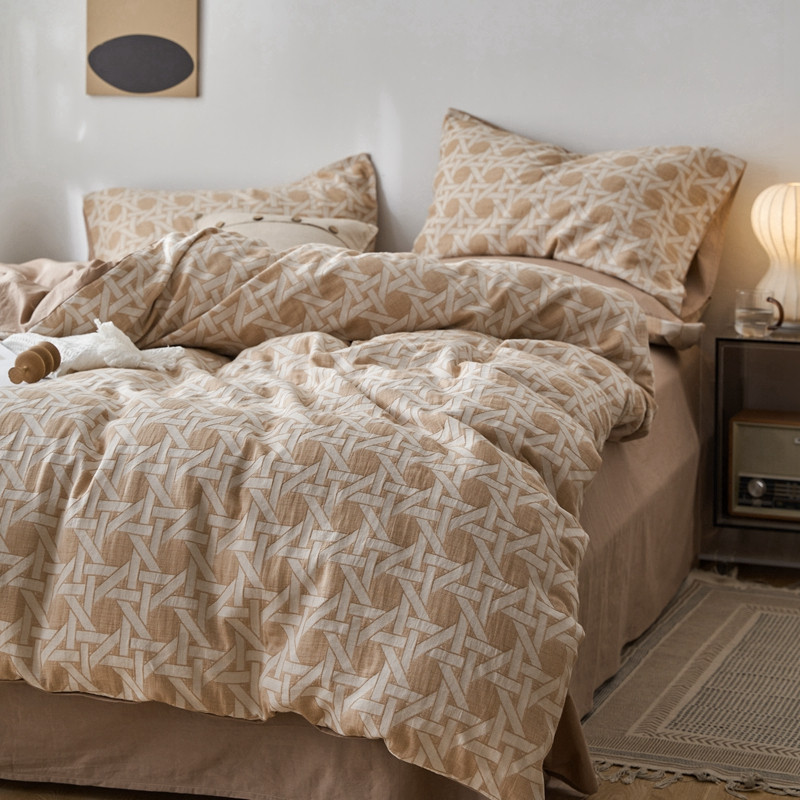 (总)简家居 2025新款60支色织空气棉四件套-敦煌喜梦,敦煌喜梦