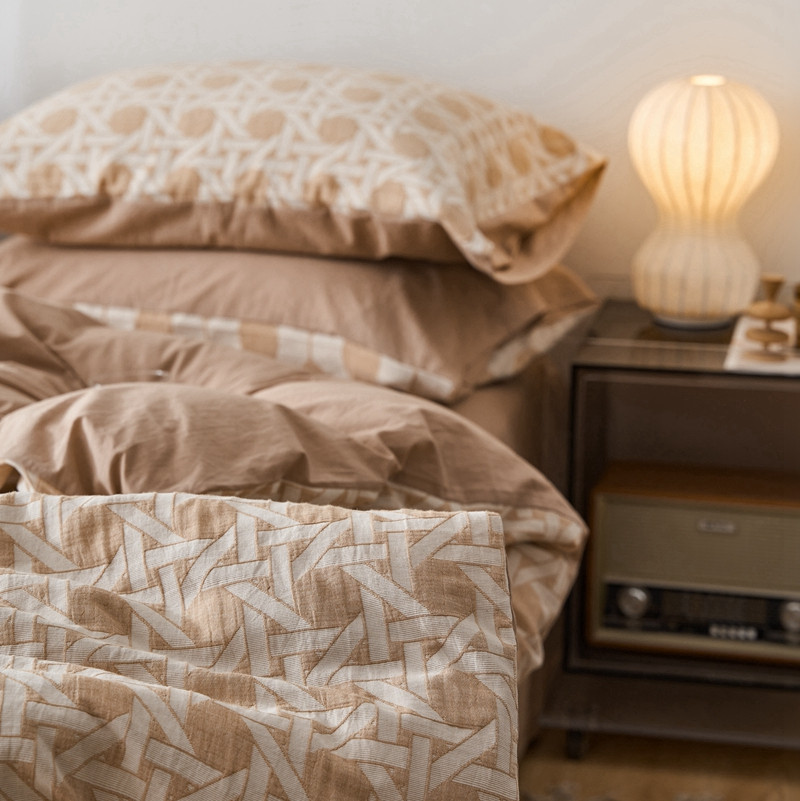 (总)简家居2025新款40支全棉色织空气棉四件套-鎏金喜韵,鎏金喜韵