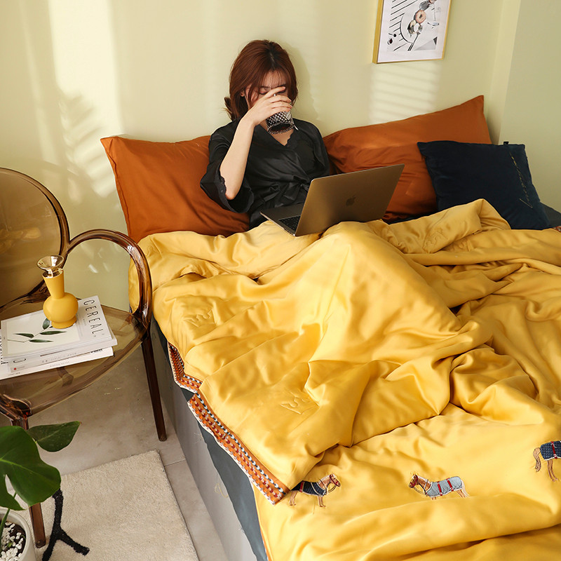 商品名称:汇庭 2020新款马德里天丝夏被-模特棚拍 黄色
