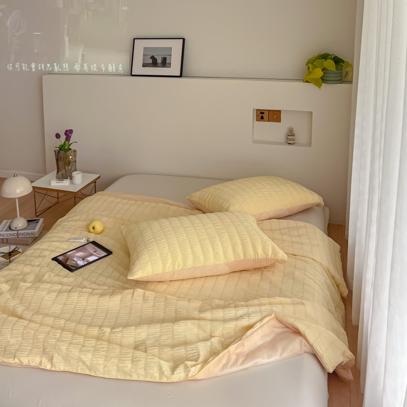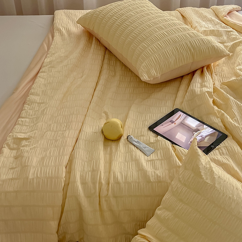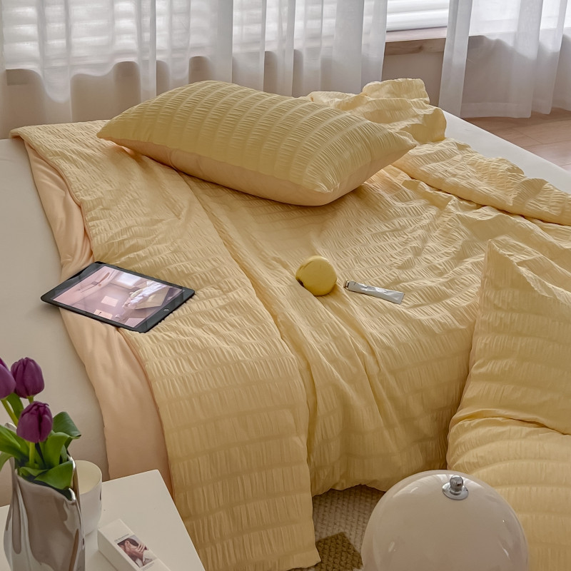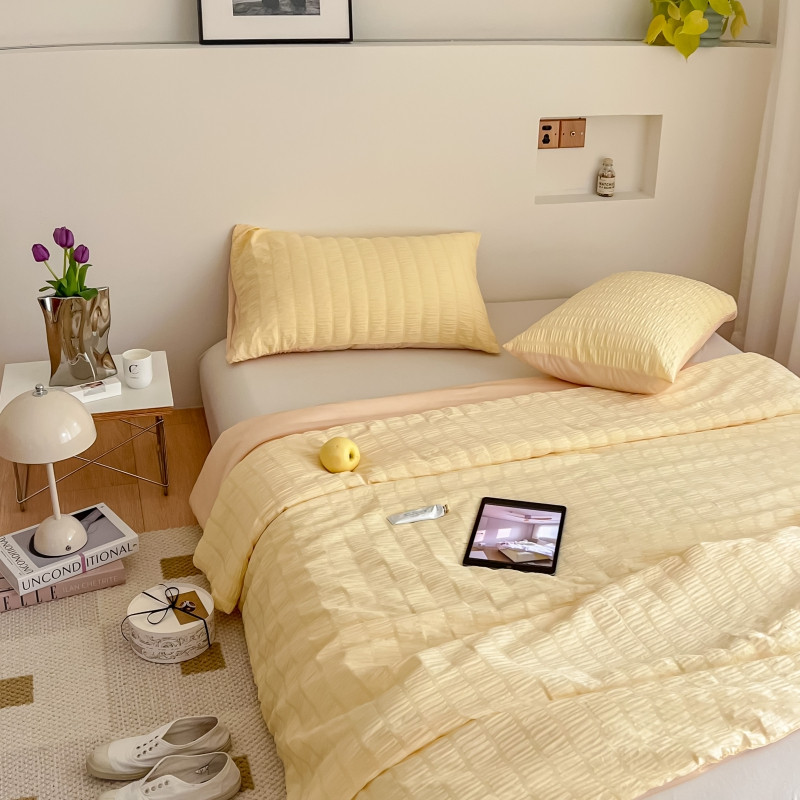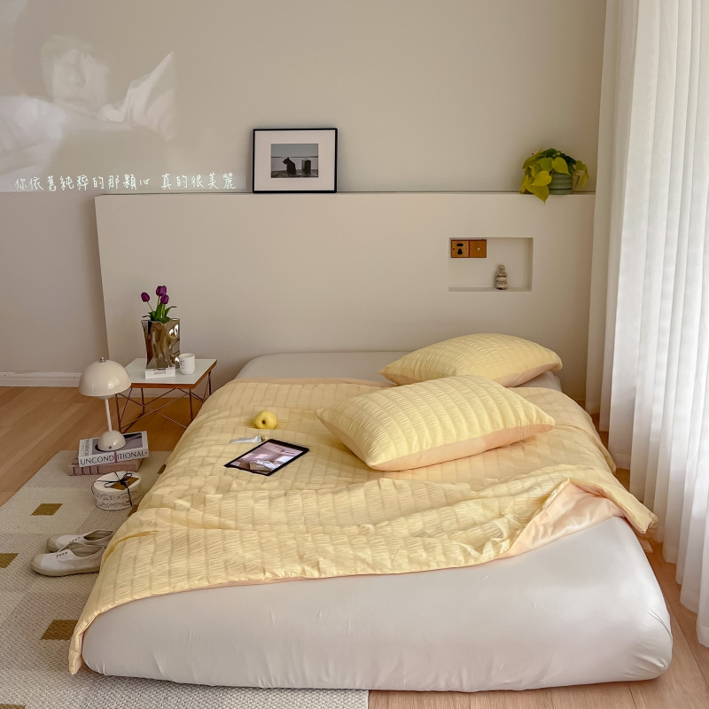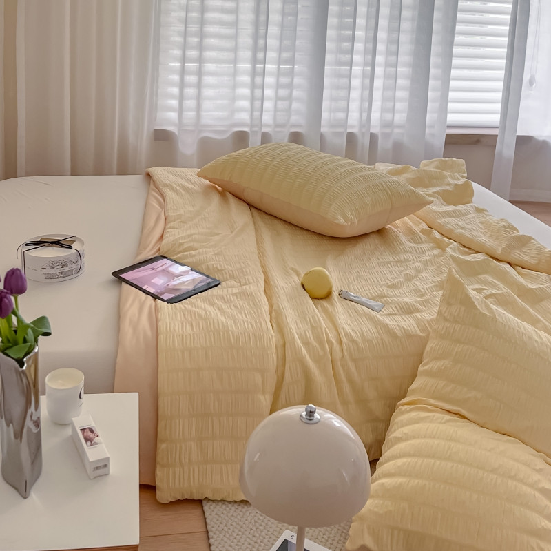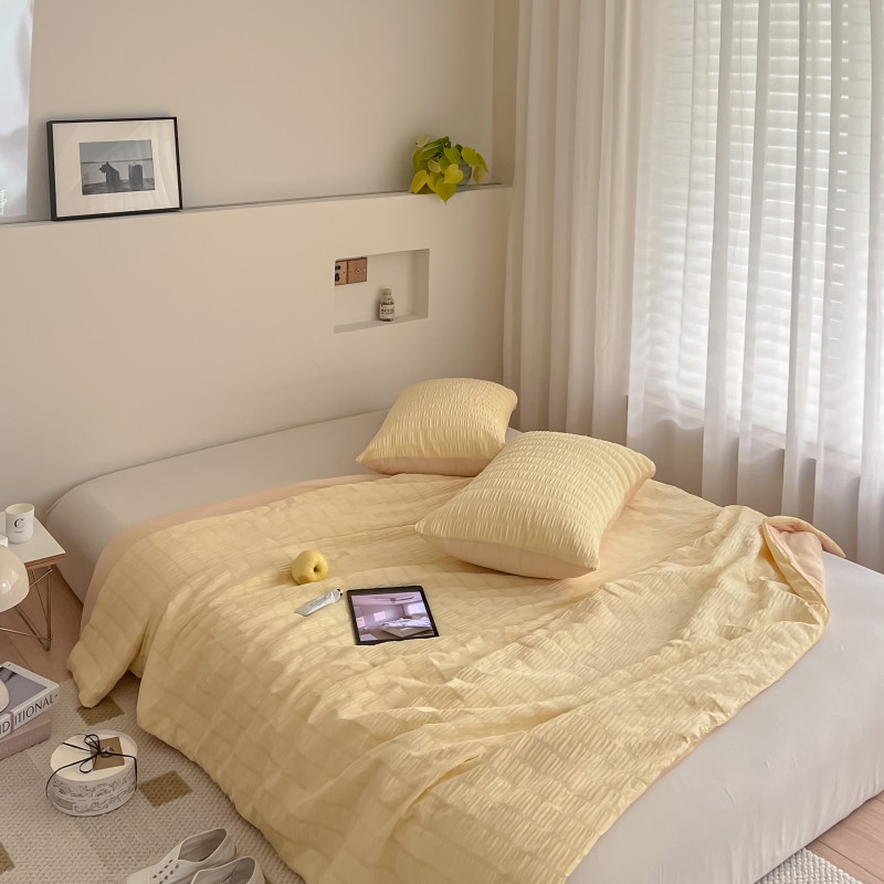 商品名称:顾里 2022新款ins韩系仙女泡泡纱夏被子被芯 奶酪黄