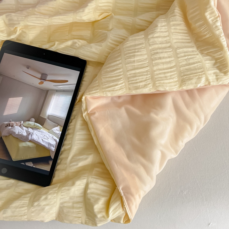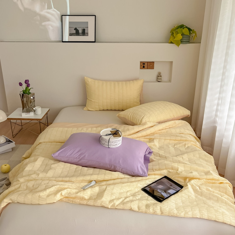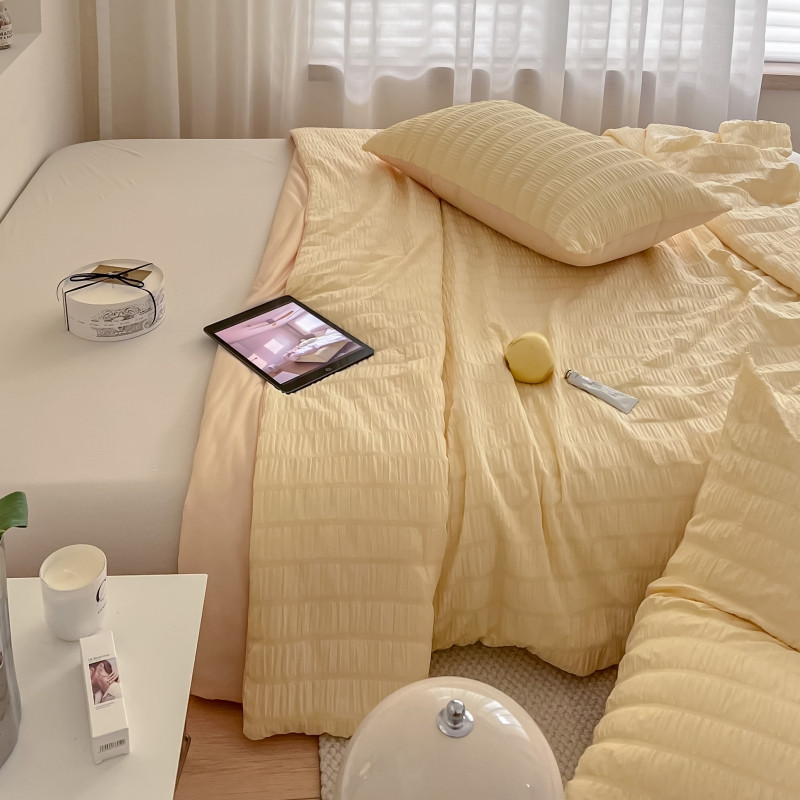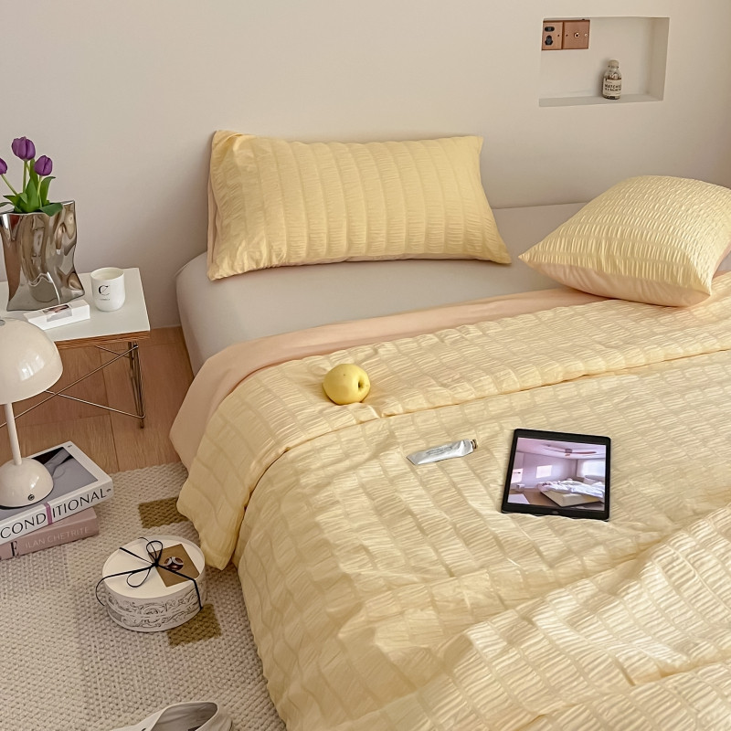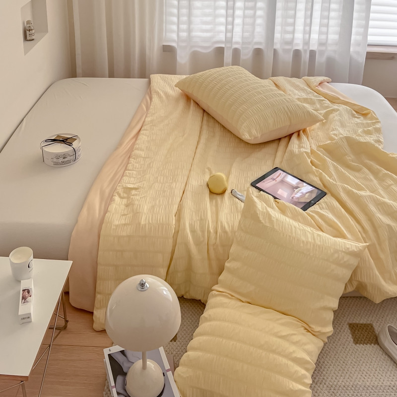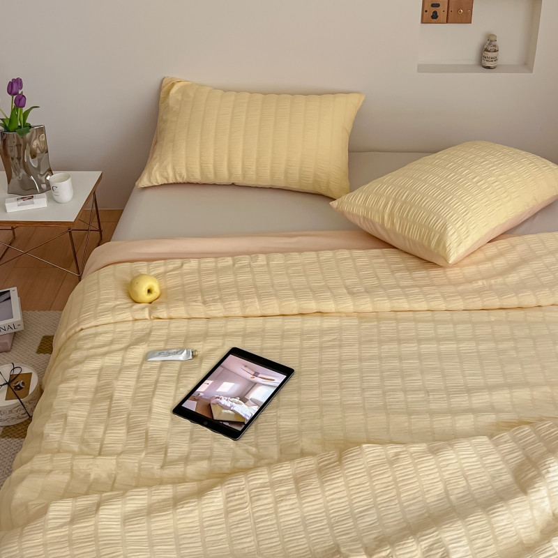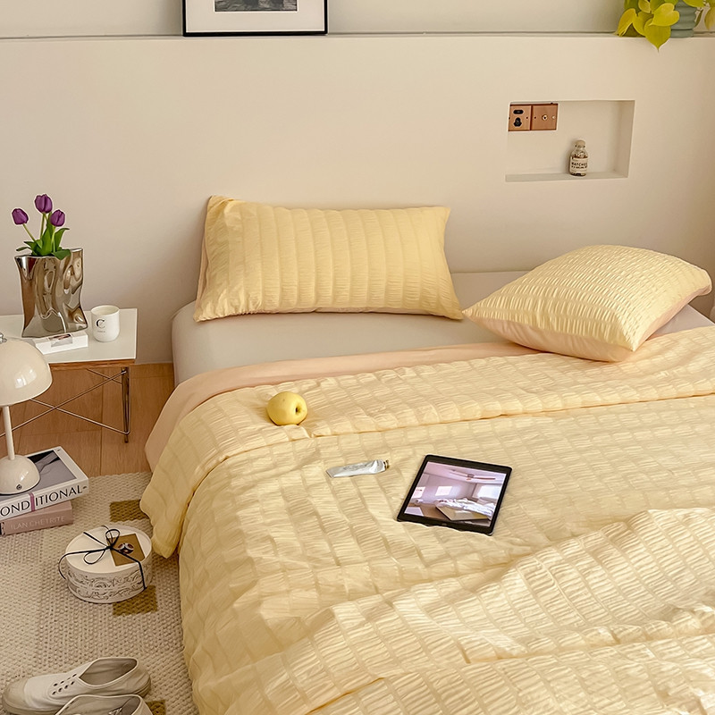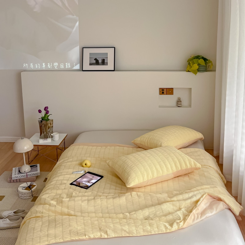 商品名称:顾里 2022新款ins韩系仙女泡泡纱夏被子被芯 奶酪黄