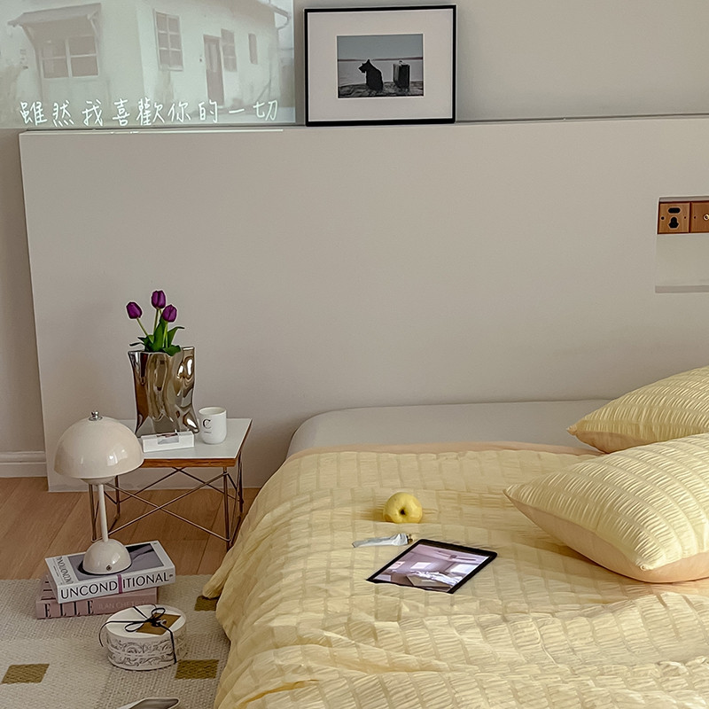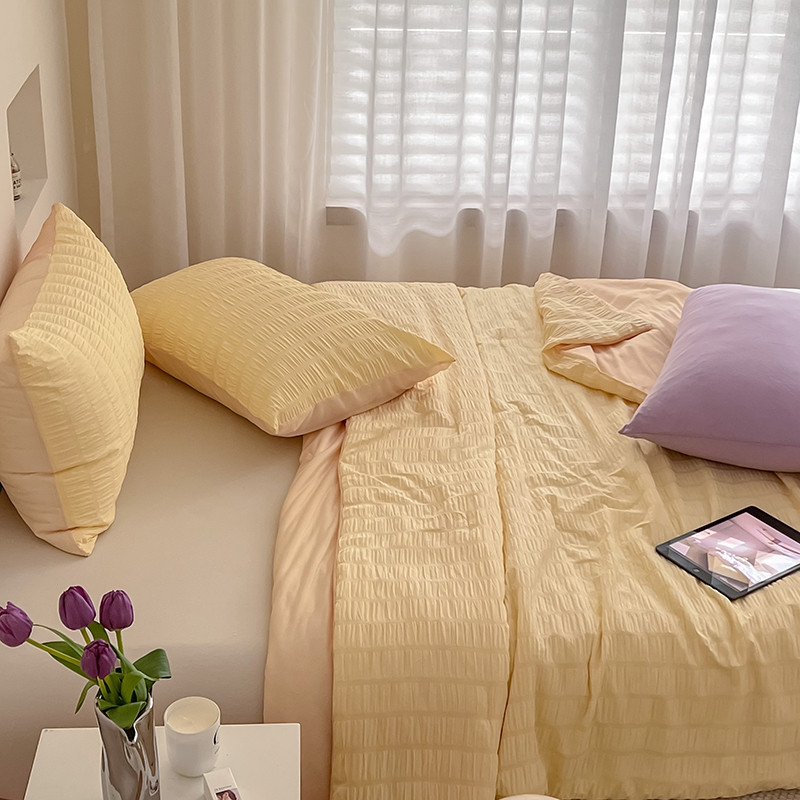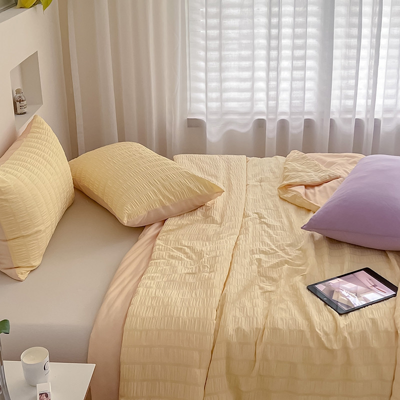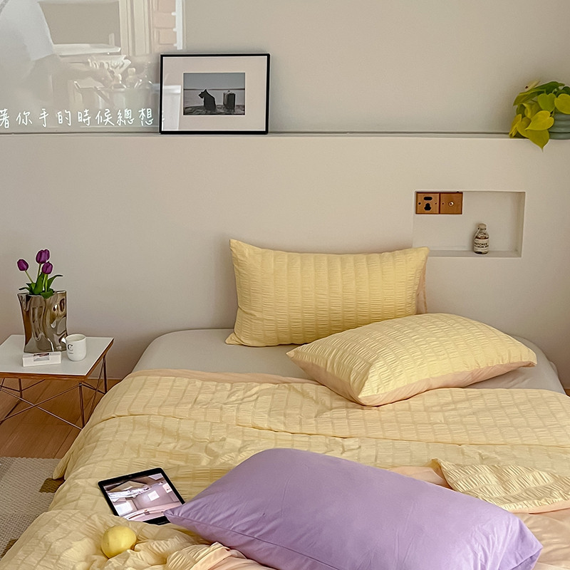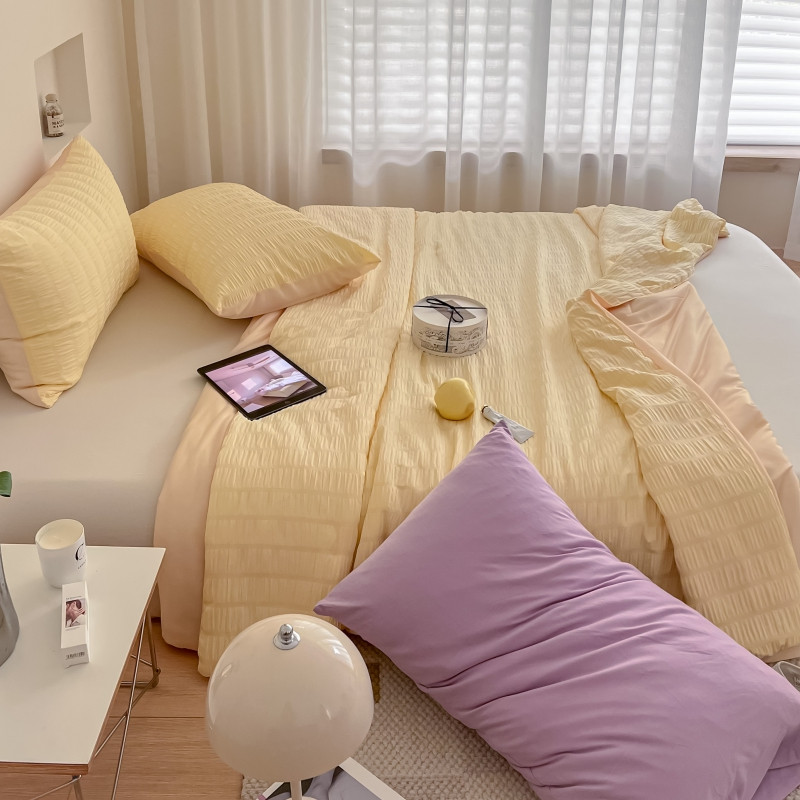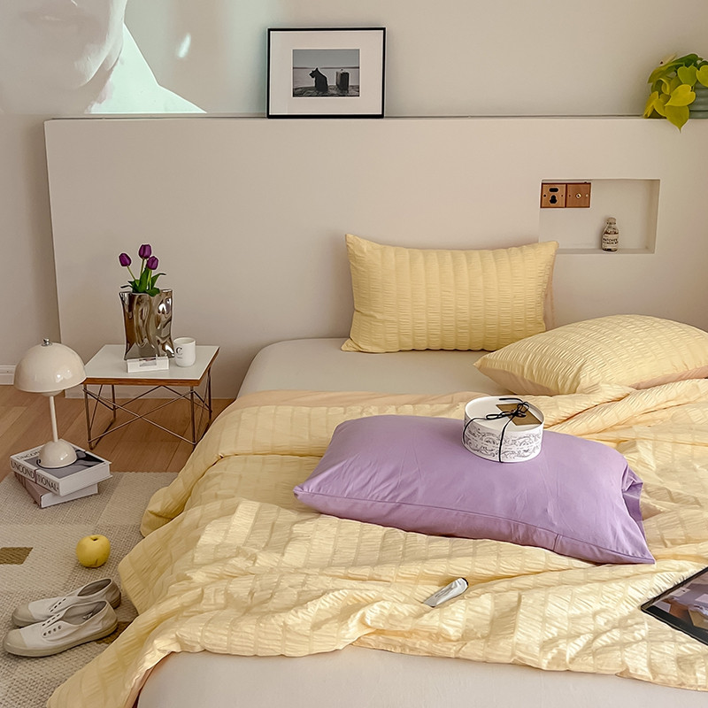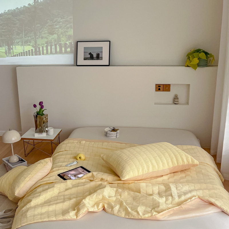 商品名称:顾里 2022新款ins韩系仙女泡泡纱夏被子被芯 奶酪黄